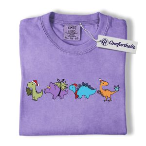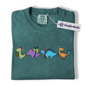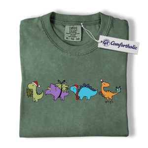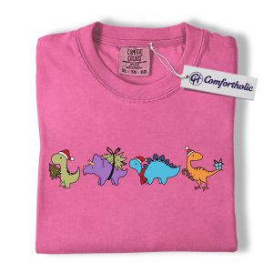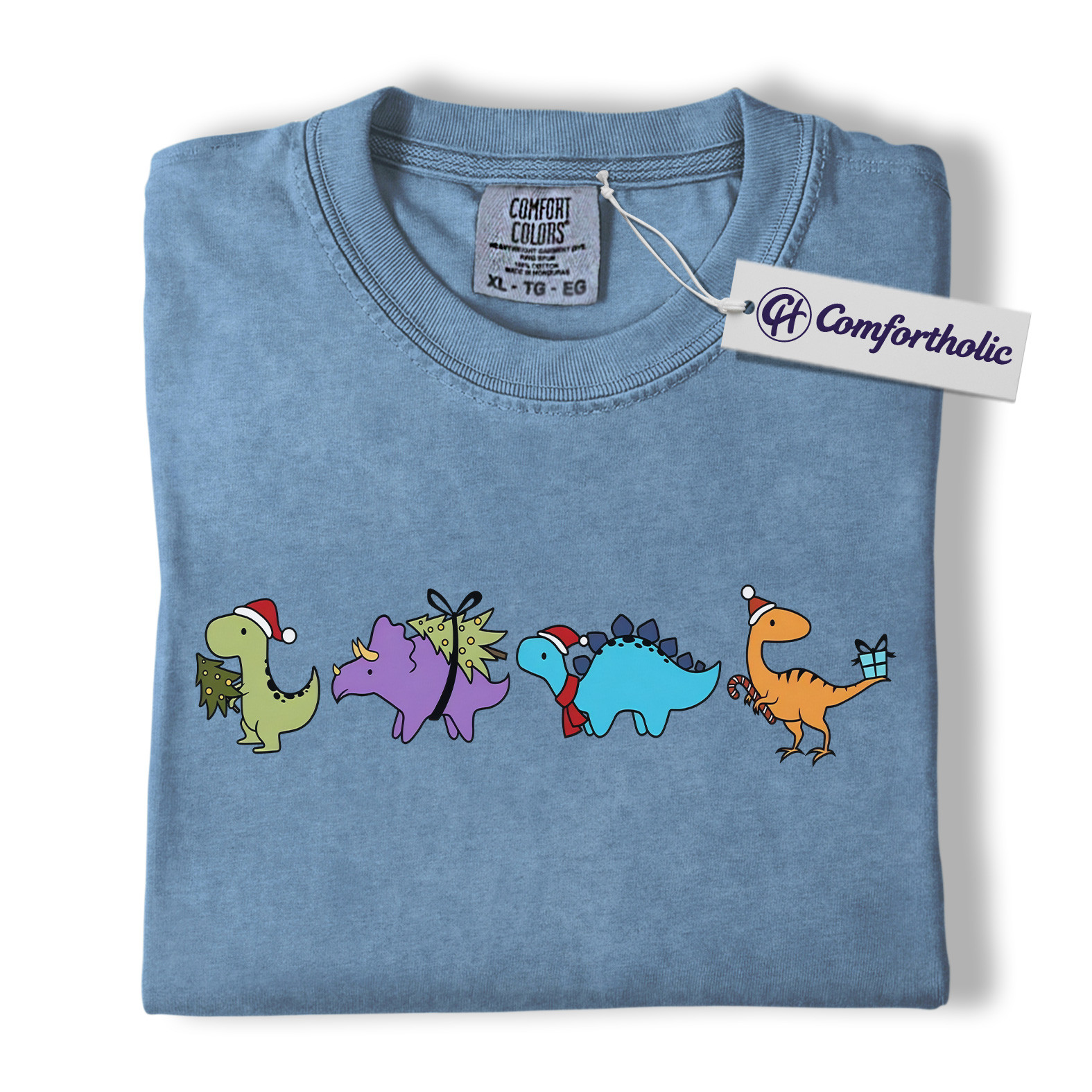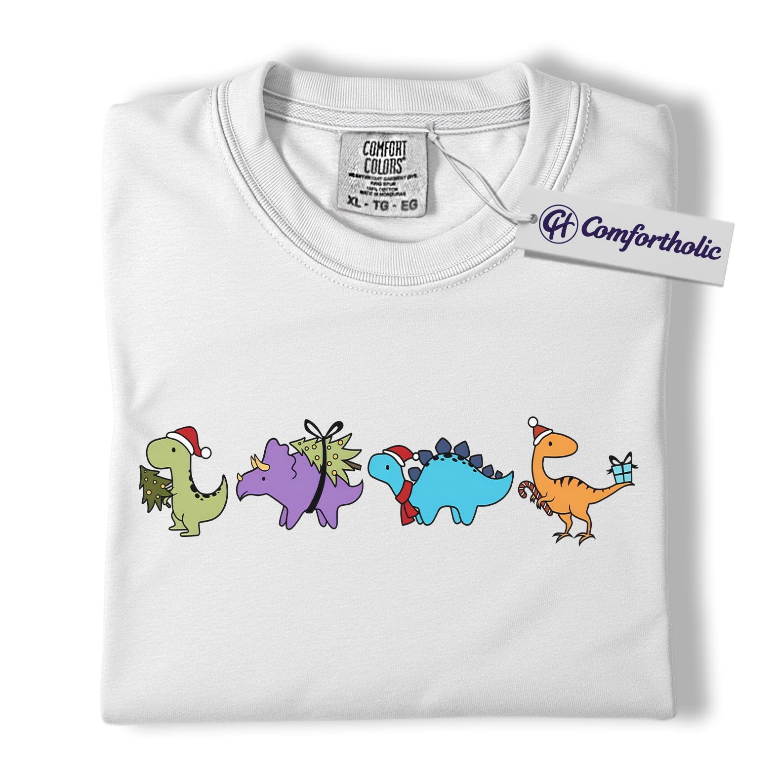 Cute Dinosaur Christmas Shirt, Funny Holiday Dino T-Shirt, Cartoon Jurassic Gift for Kids and Adults, Festive Prehistoric Graphic Tee, Comfort Colors Shirt
