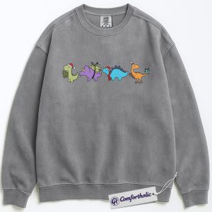 Cute Dinosaur Christmas Sweatshirt, Funny Holiday Dino Pullover, Cartoon Jurassic Gift for Kids and Adults, Festive Prehistoric Graphic Sweatshirt, Comfort Colors Sweatshirt