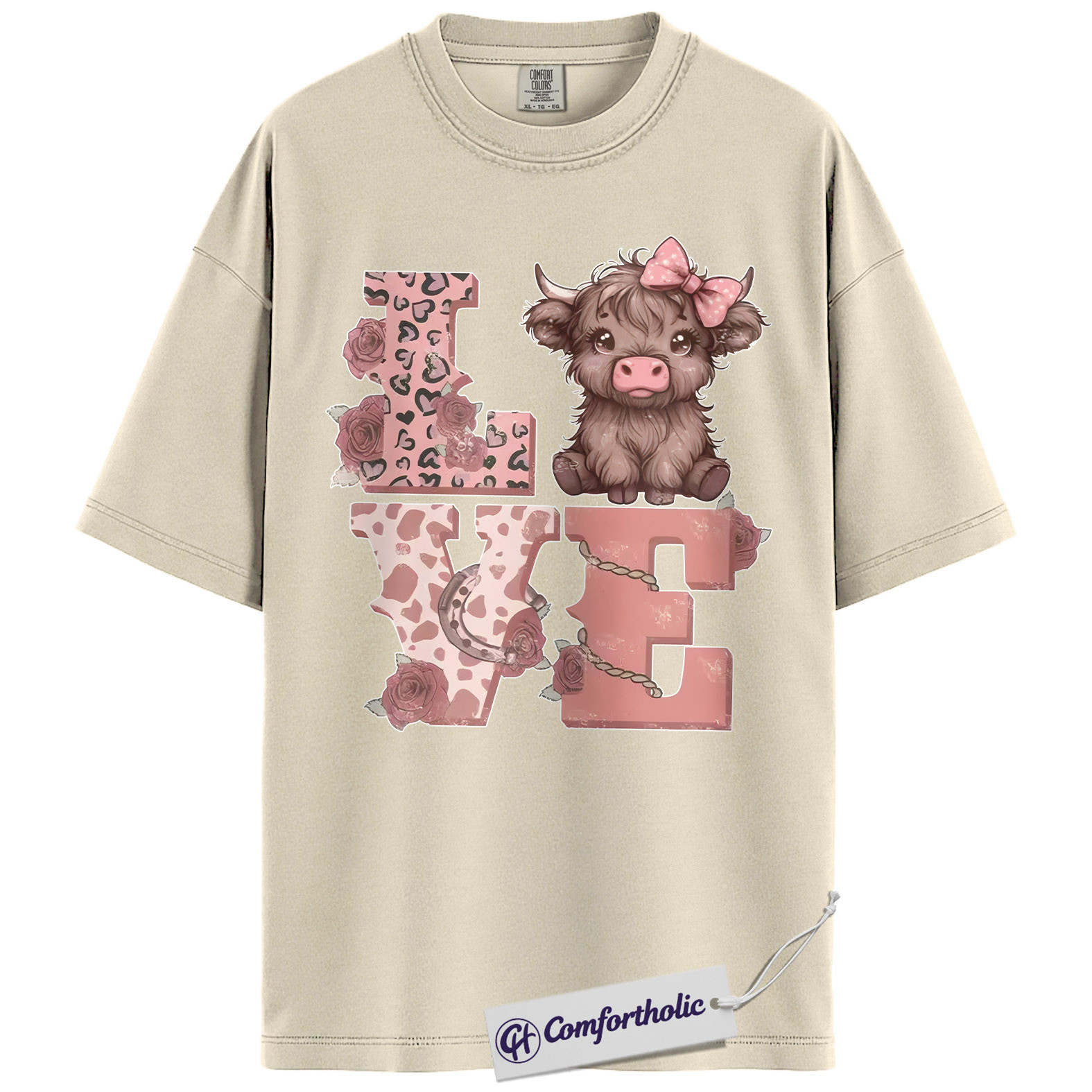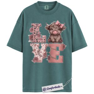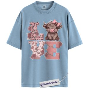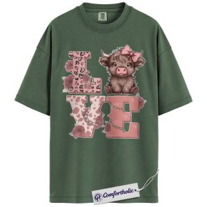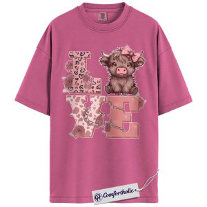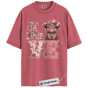 Cute Highland Cow Love Shirt, Pink Western Valentine Graphic Tee, Cow Lover Farm Animal T-Shirt, Valentine’s Day Gift for Women & Cowgirls, Comfort Colors Shirt