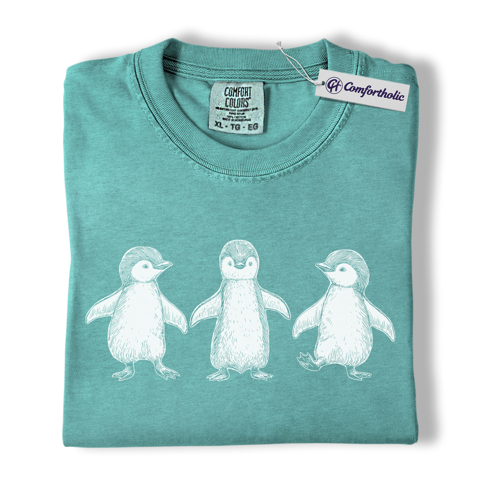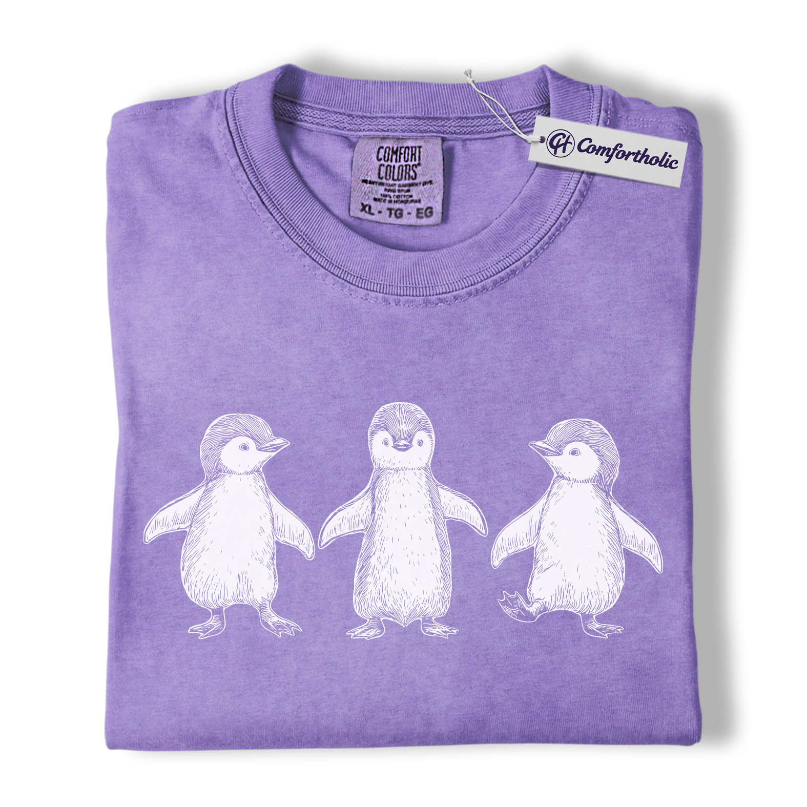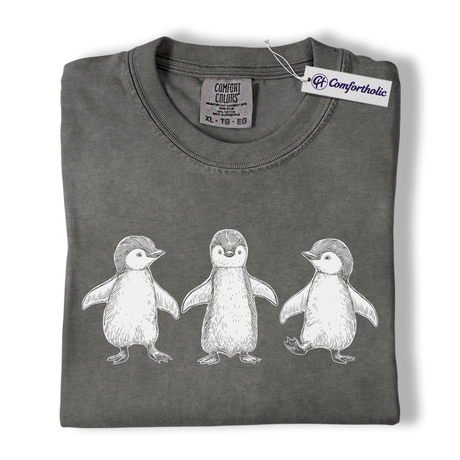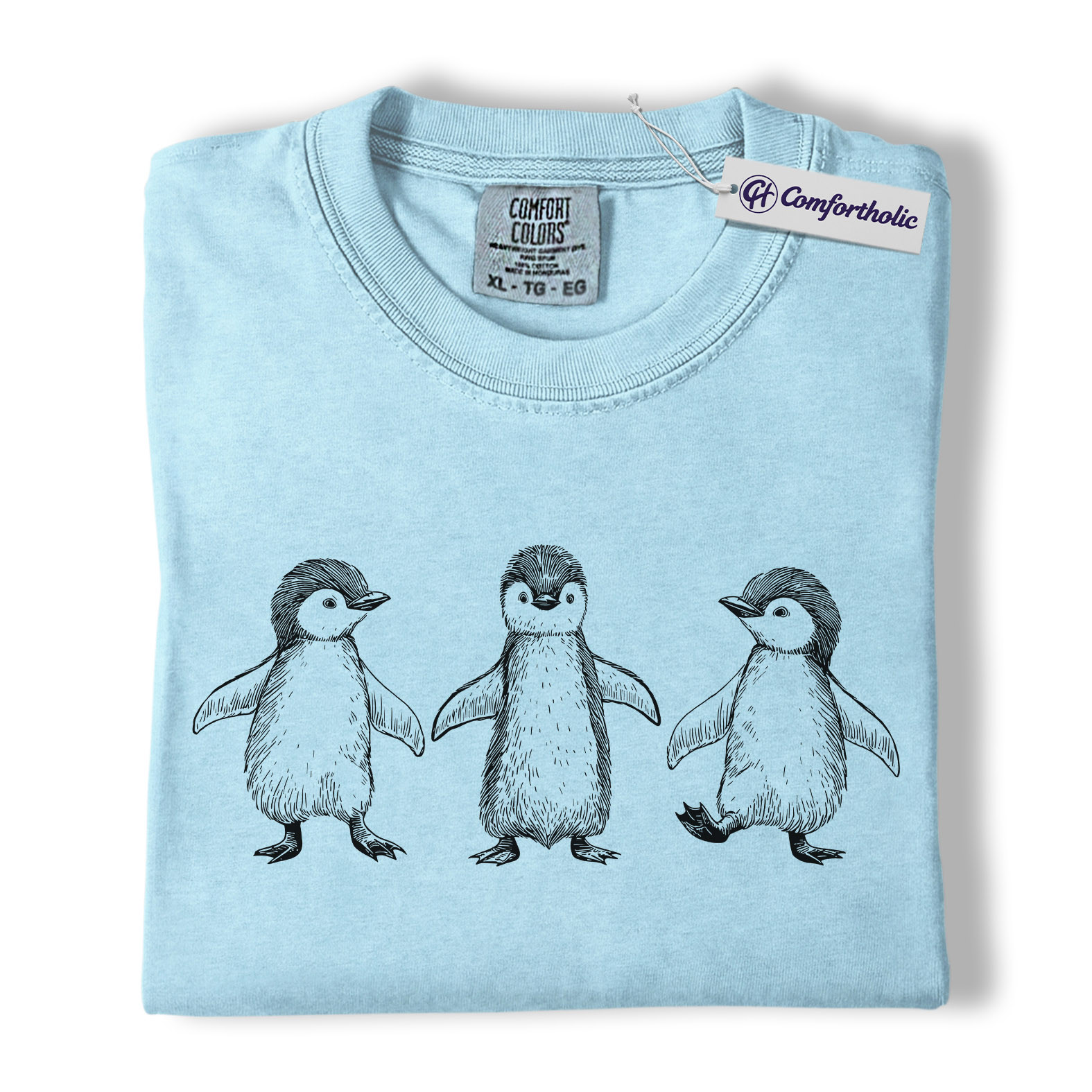 Cute Penguin Trio Shirt, Minimal Line Art Graphic Tee, Penguin Lover Winter T-Shirt, Cozy Gift for Animal Lovers, Comfort Colors Shirt