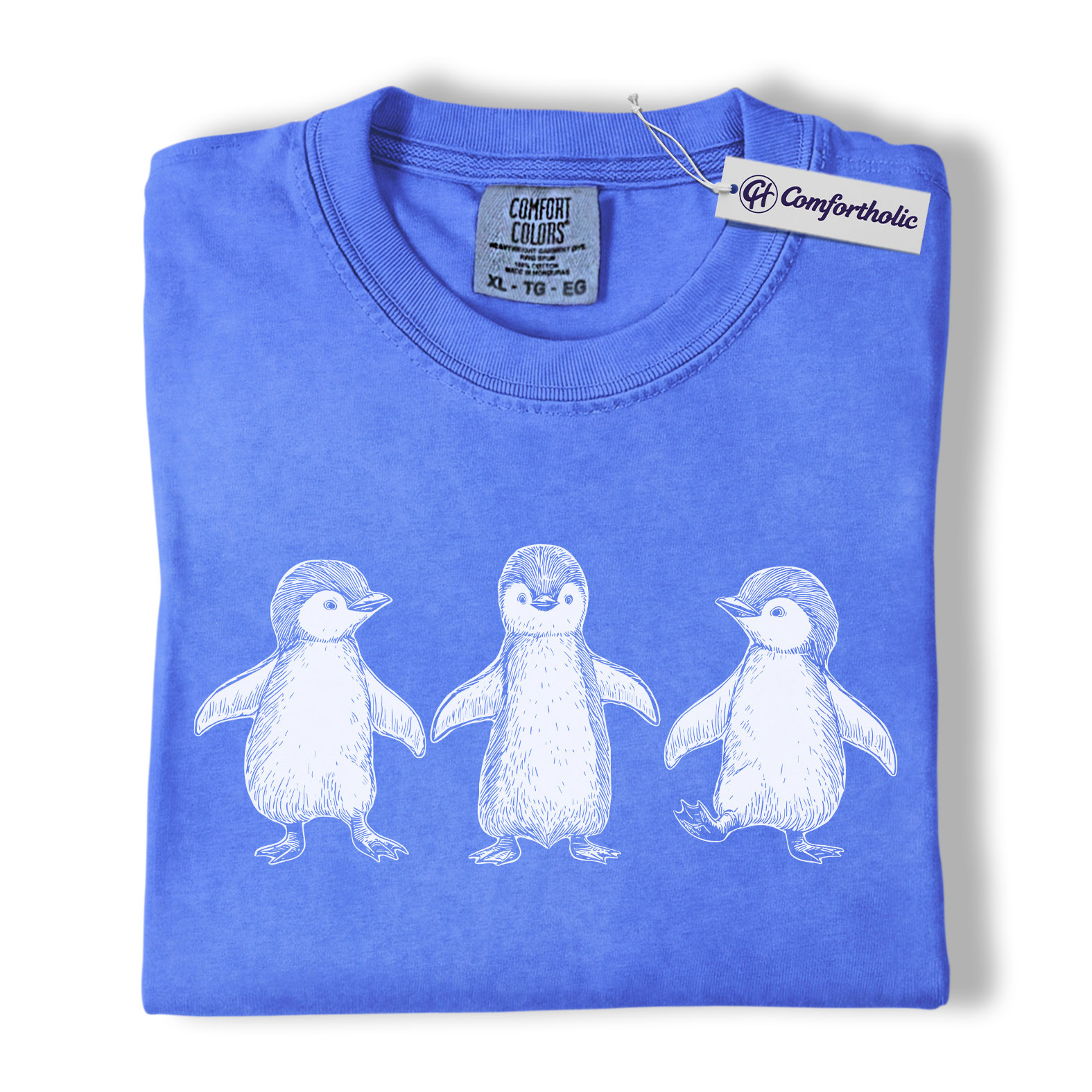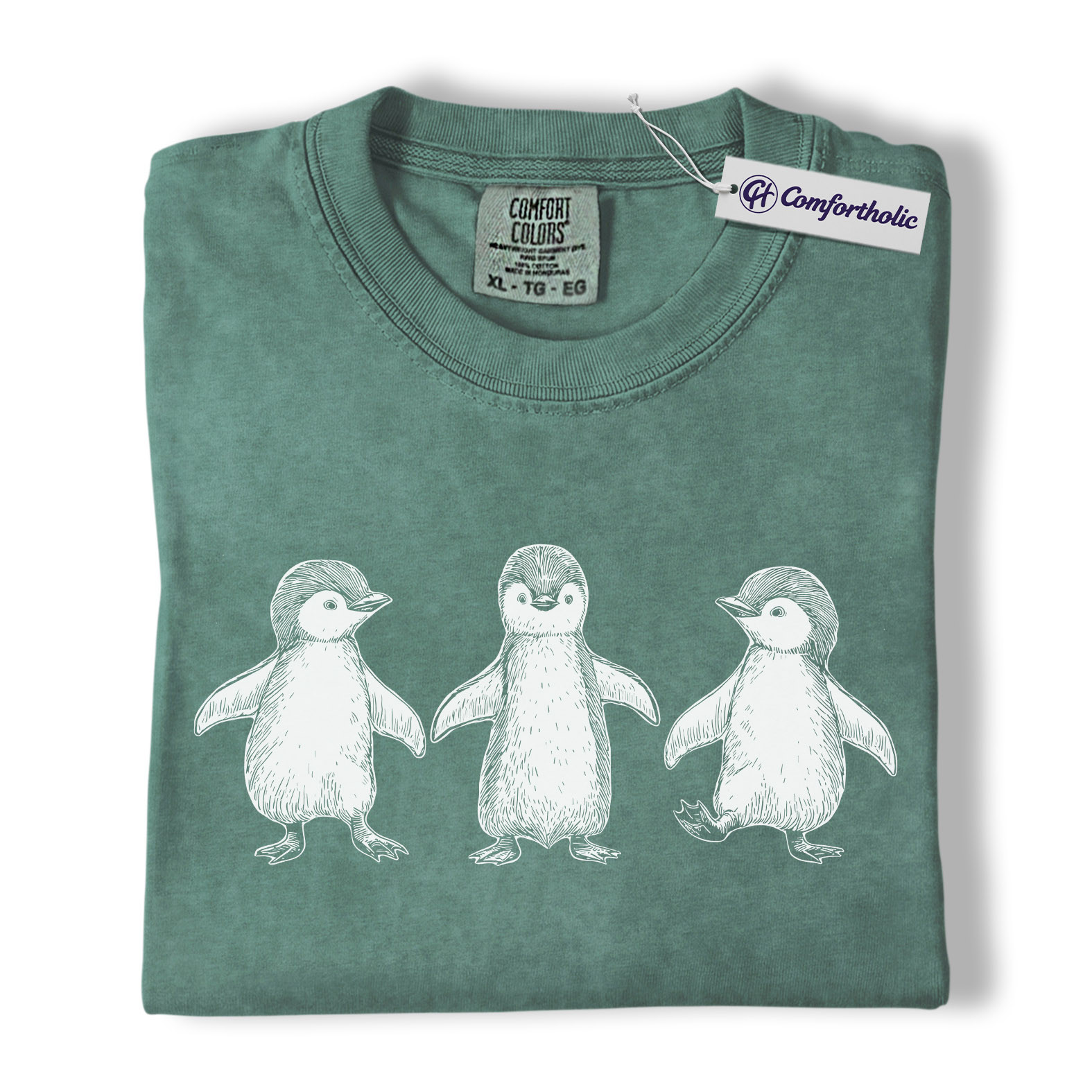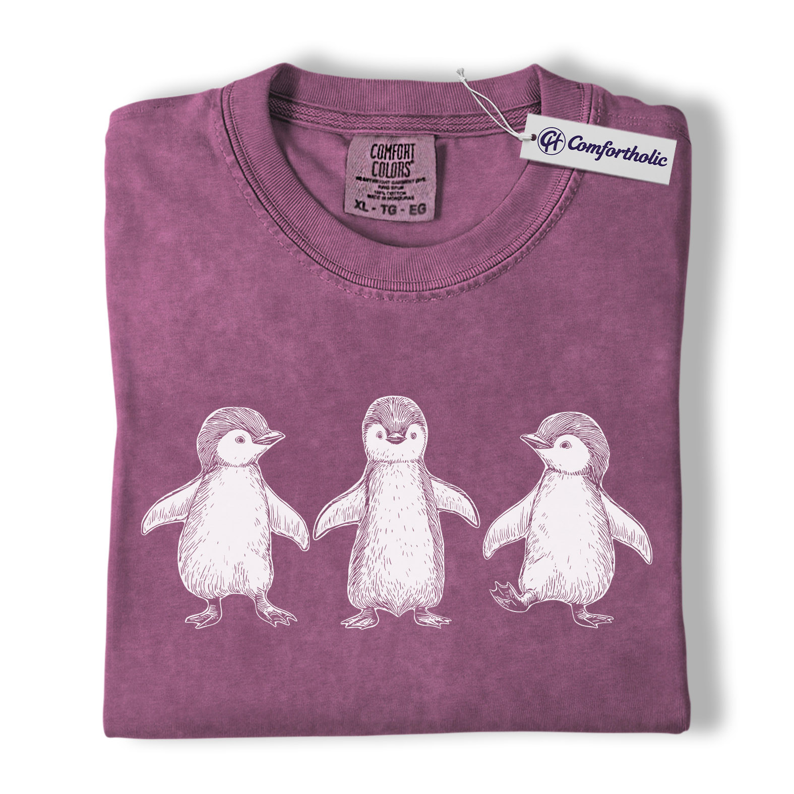 Cute Penguin Trio Shirt, Minimal Line Art Graphic Tee, Penguin Lover Winter T-Shirt, Cozy Gift for Animal Lovers, Comfort Colors Shirt