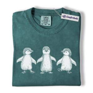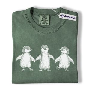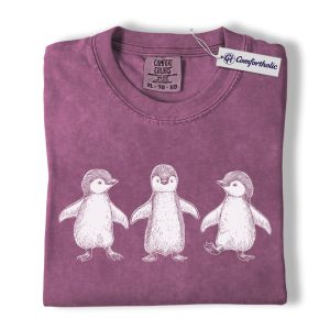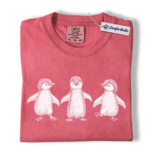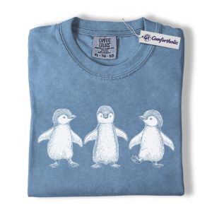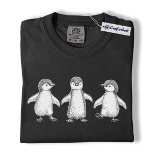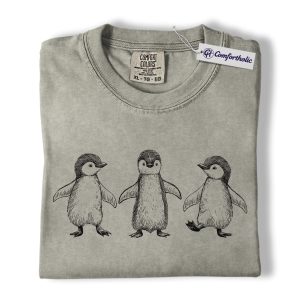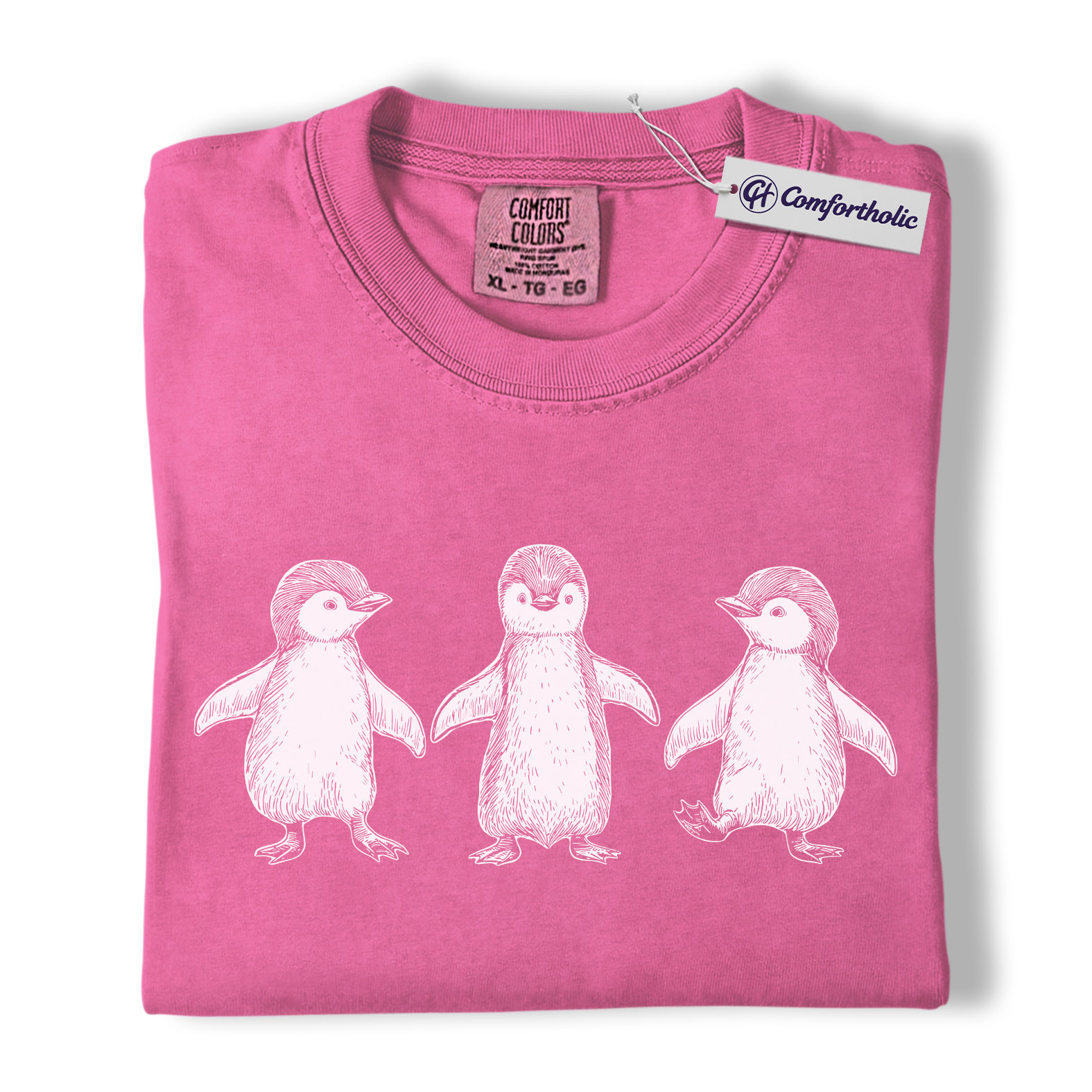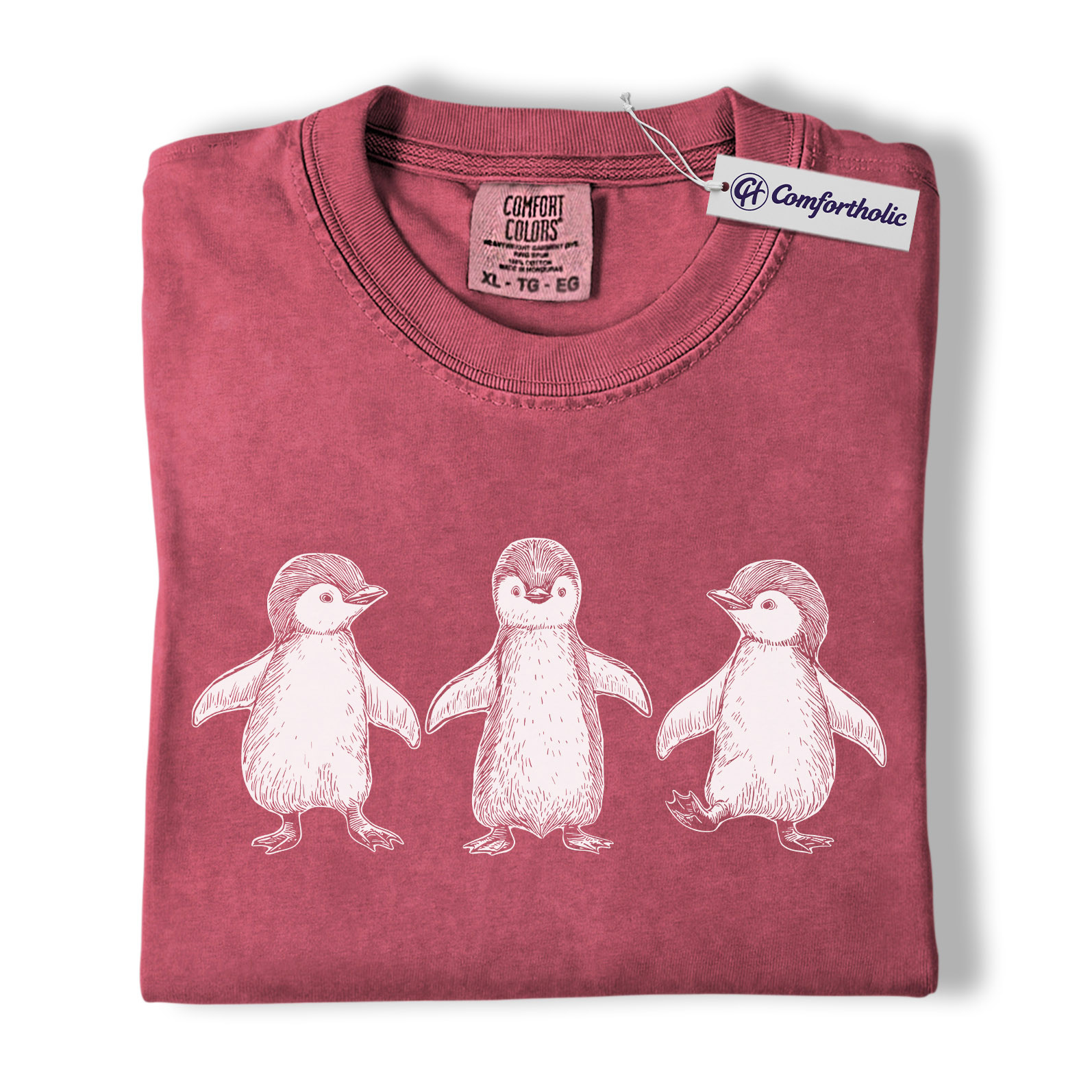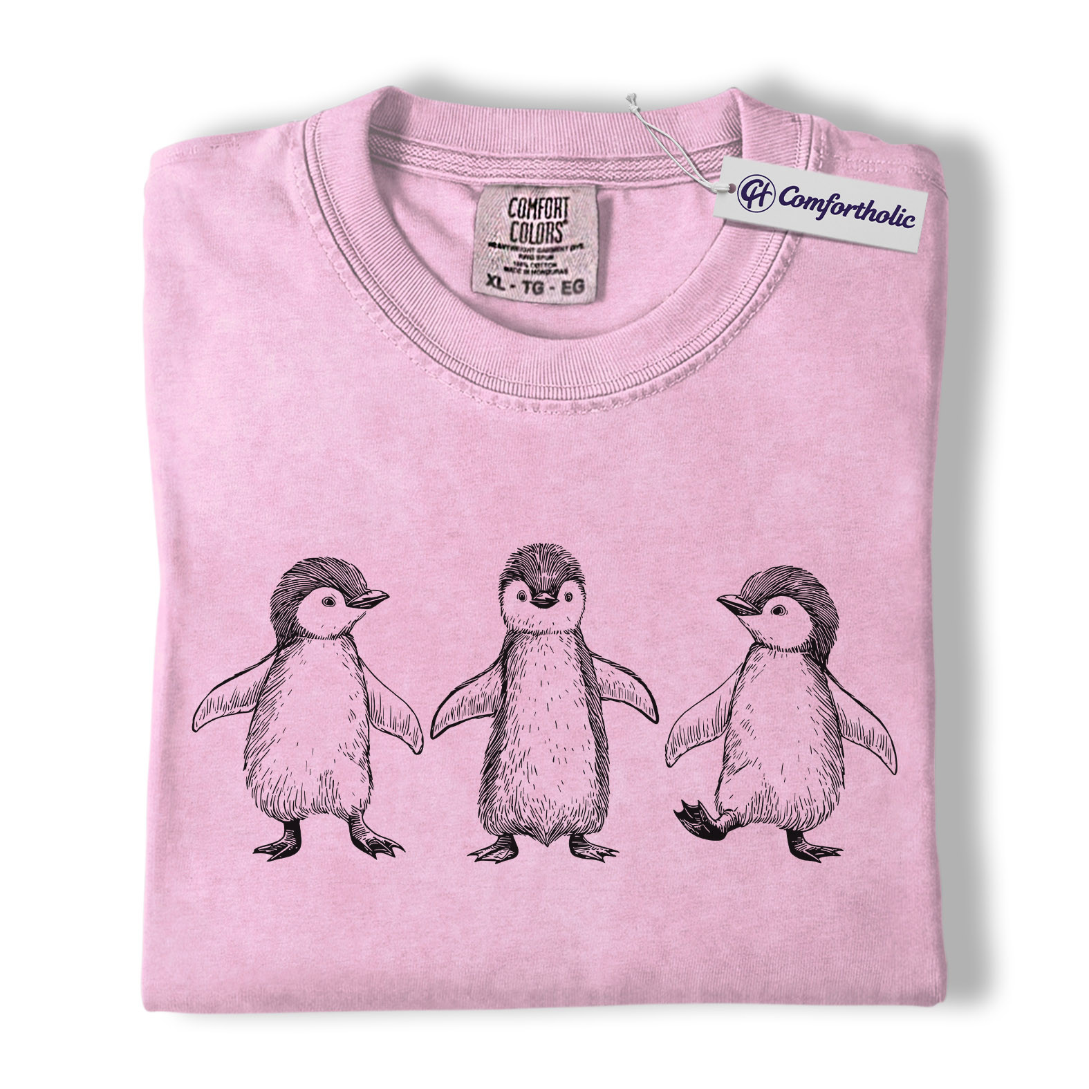 Cute Penguin Trio Shirt, Minimal Line Art Graphic Tee, Penguin Lover Winter T-Shirt, Cozy Gift for Animal Lovers, Comfort Colors Shirt