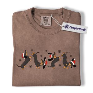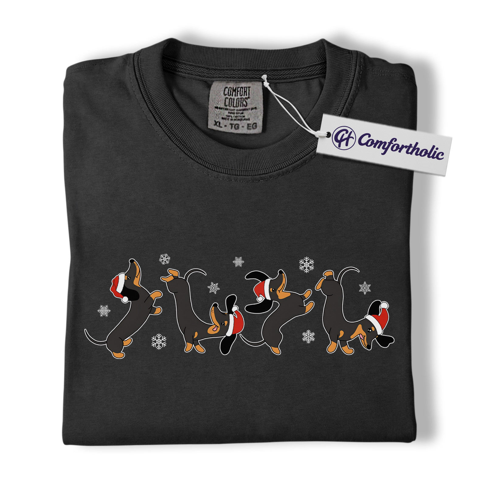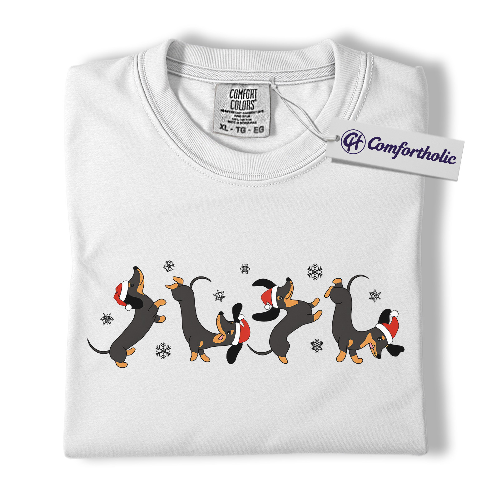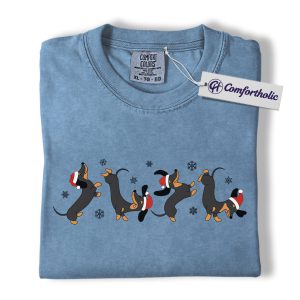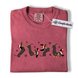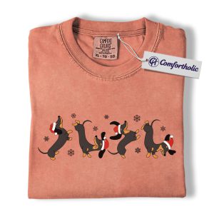 Dachshund Christmas Shirt, Cute Sausage Dog Holiday T-Shirt, Festive Santa Hat Dog Lover Graphic Tee, Funny Pet Christmas Gift for Women, Christmas Comfort Colors Shirt