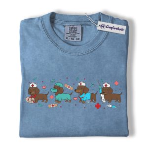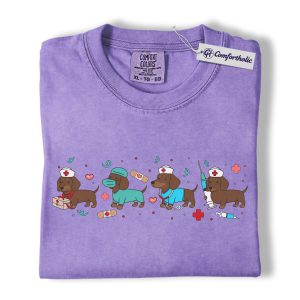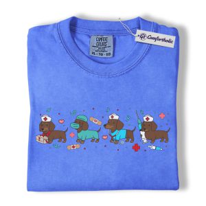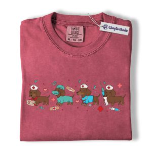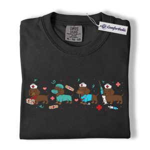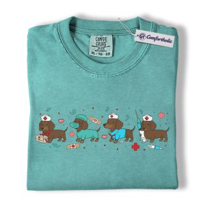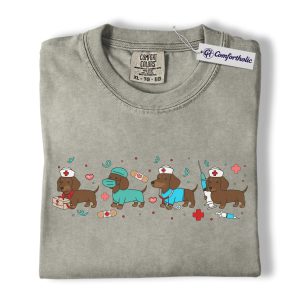 Dachshund Dog Nurse Shirt, Cute Cartoon Medical Graphic Tee, Funny Nurse Dog Lover T-Shirt, Gift for Nurses & Wiener Dog Lovers, Comfort Colors Shirt