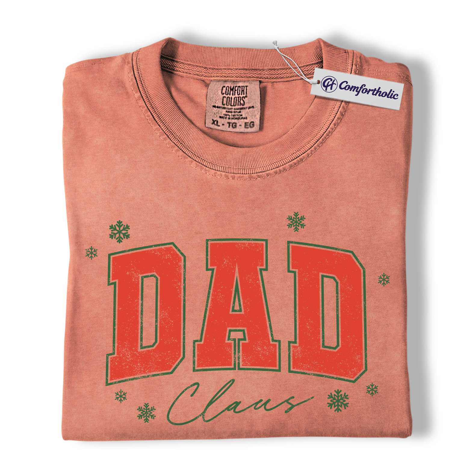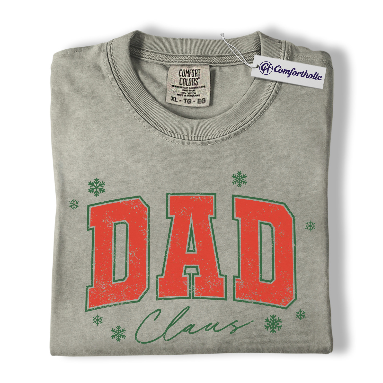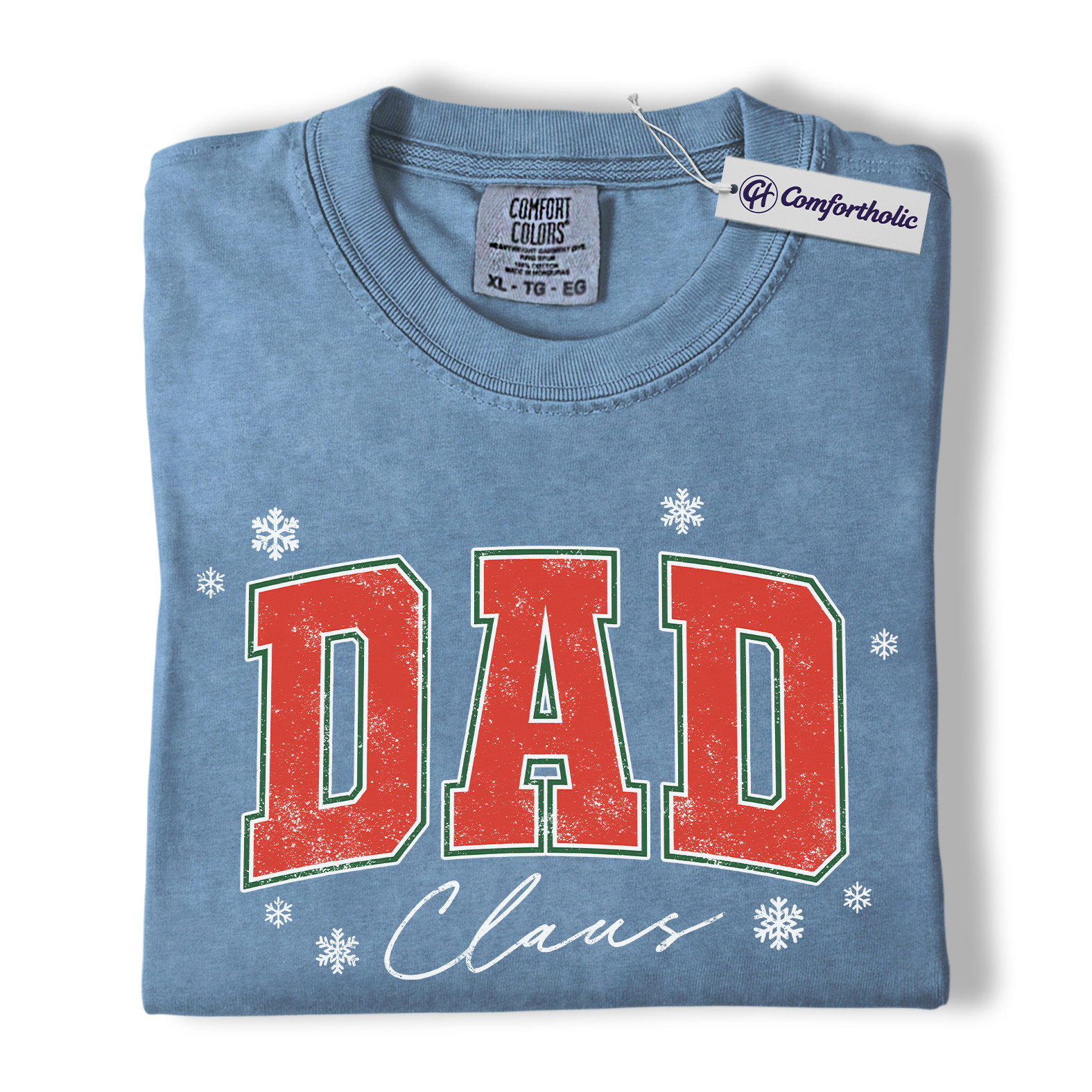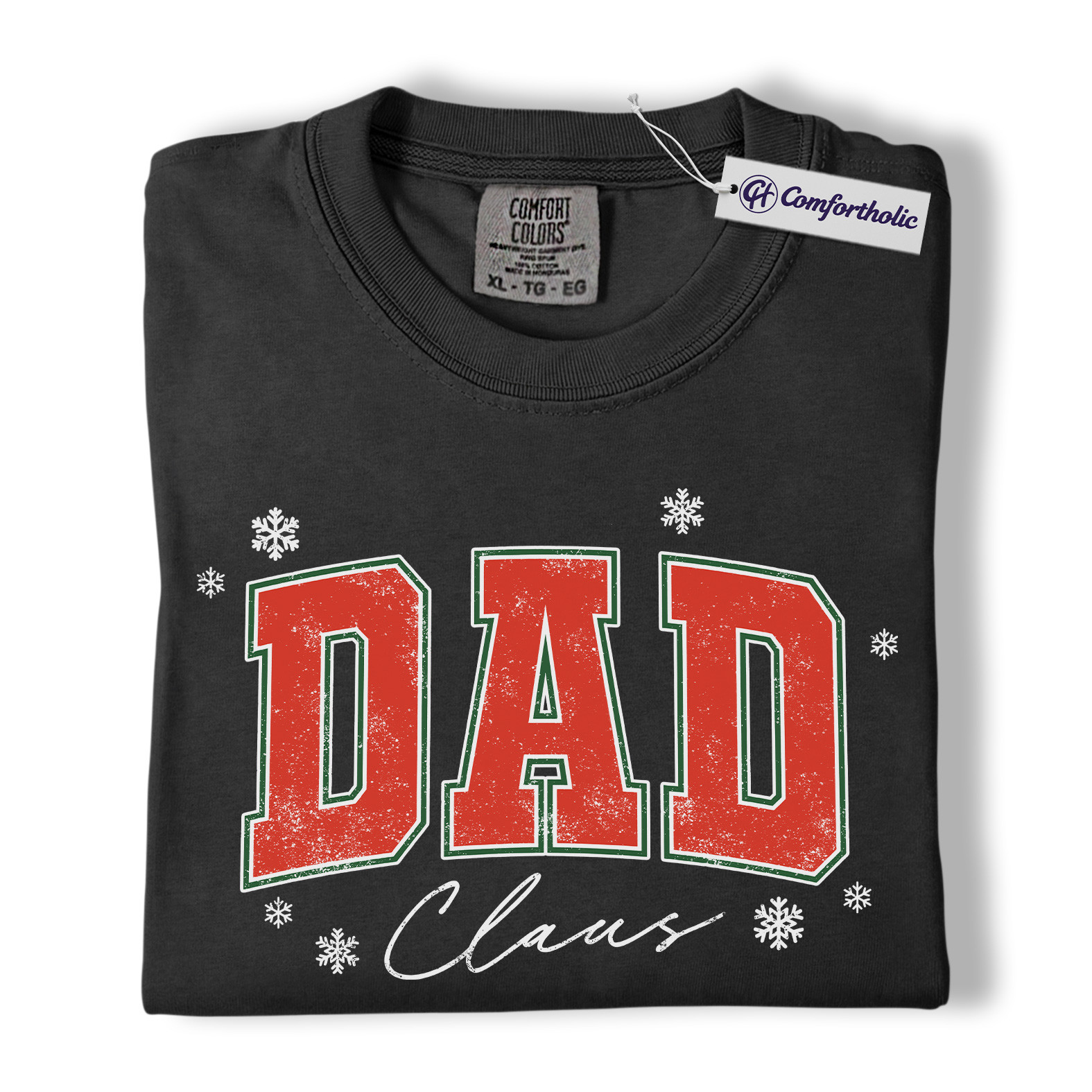 Dad Claus Shirt, Dad Christmas T-Shirt, Varsity Distressed Holiday Typography Tee, Funny Christmas Gift for Men, Christmas Comfort Colors Shirt