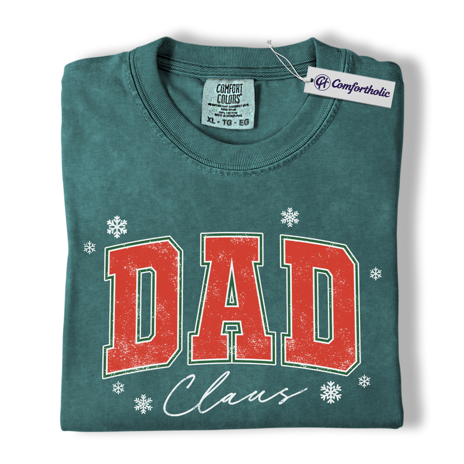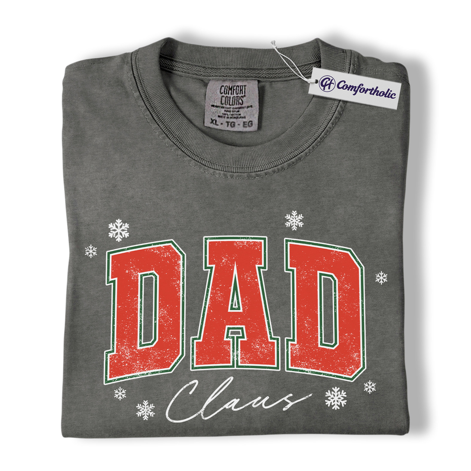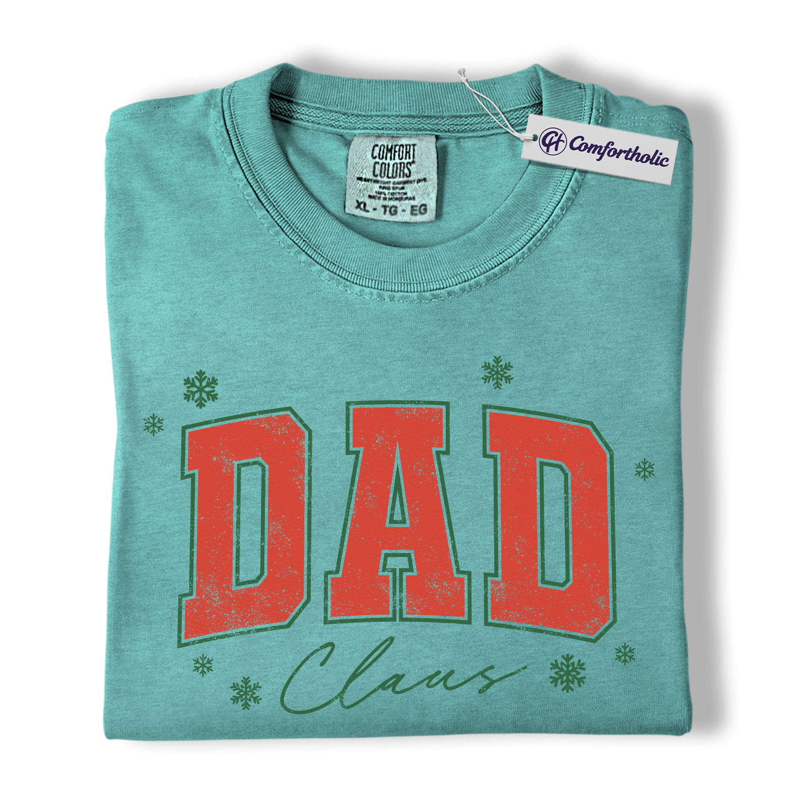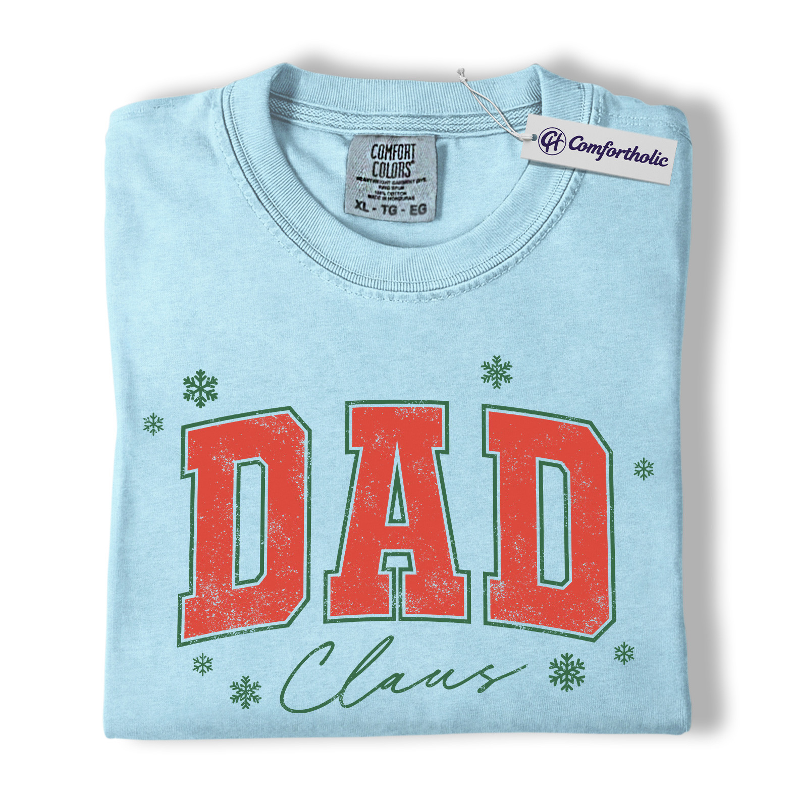 Dad Claus Shirt, Dad Christmas T-Shirt, Varsity Distressed Holiday Typography Tee, Funny Christmas Gift for Men, Christmas Comfort Colors Shirt