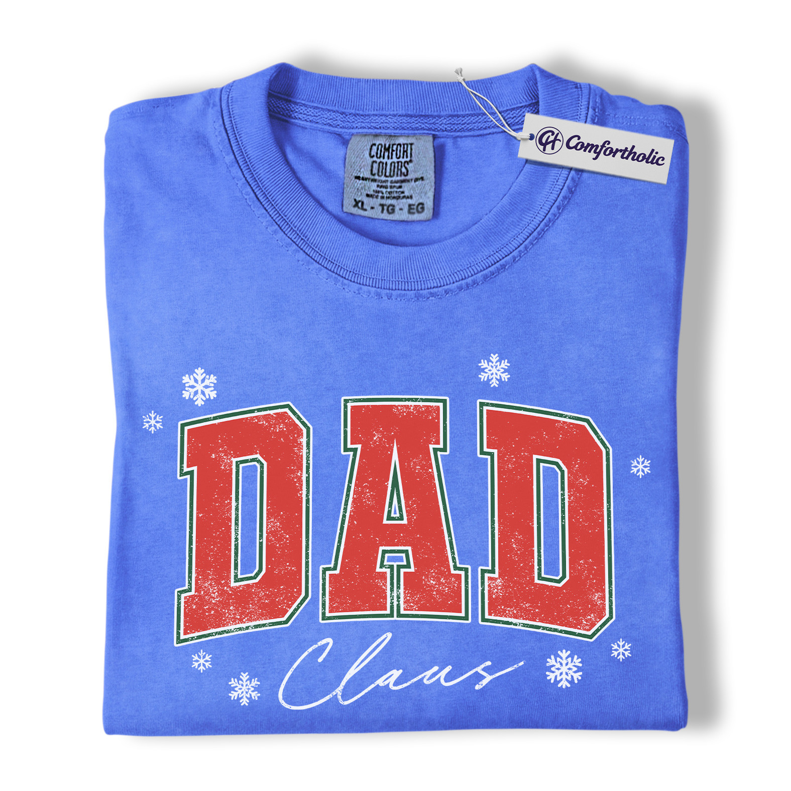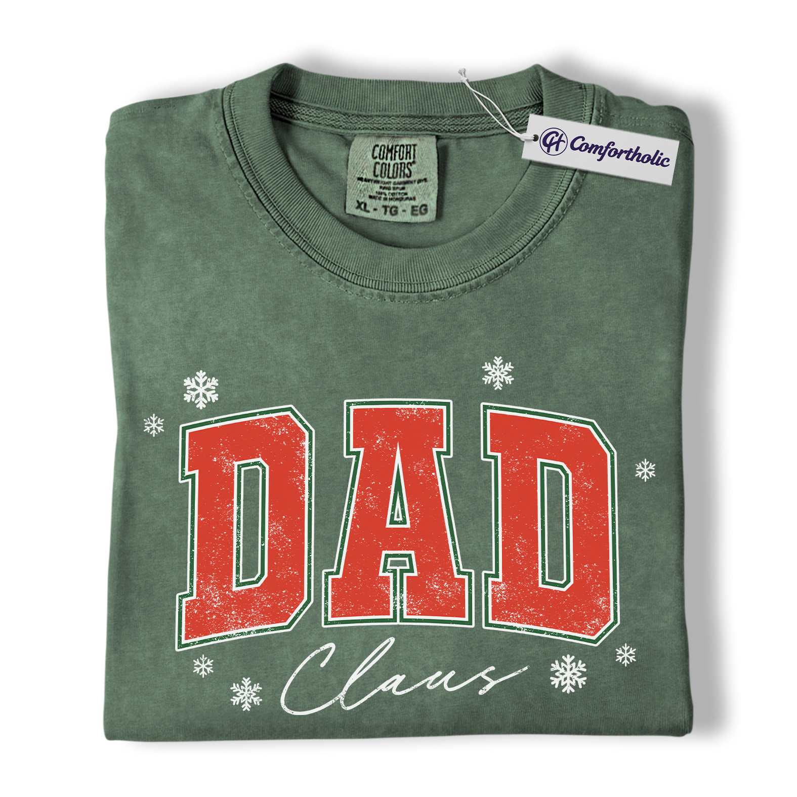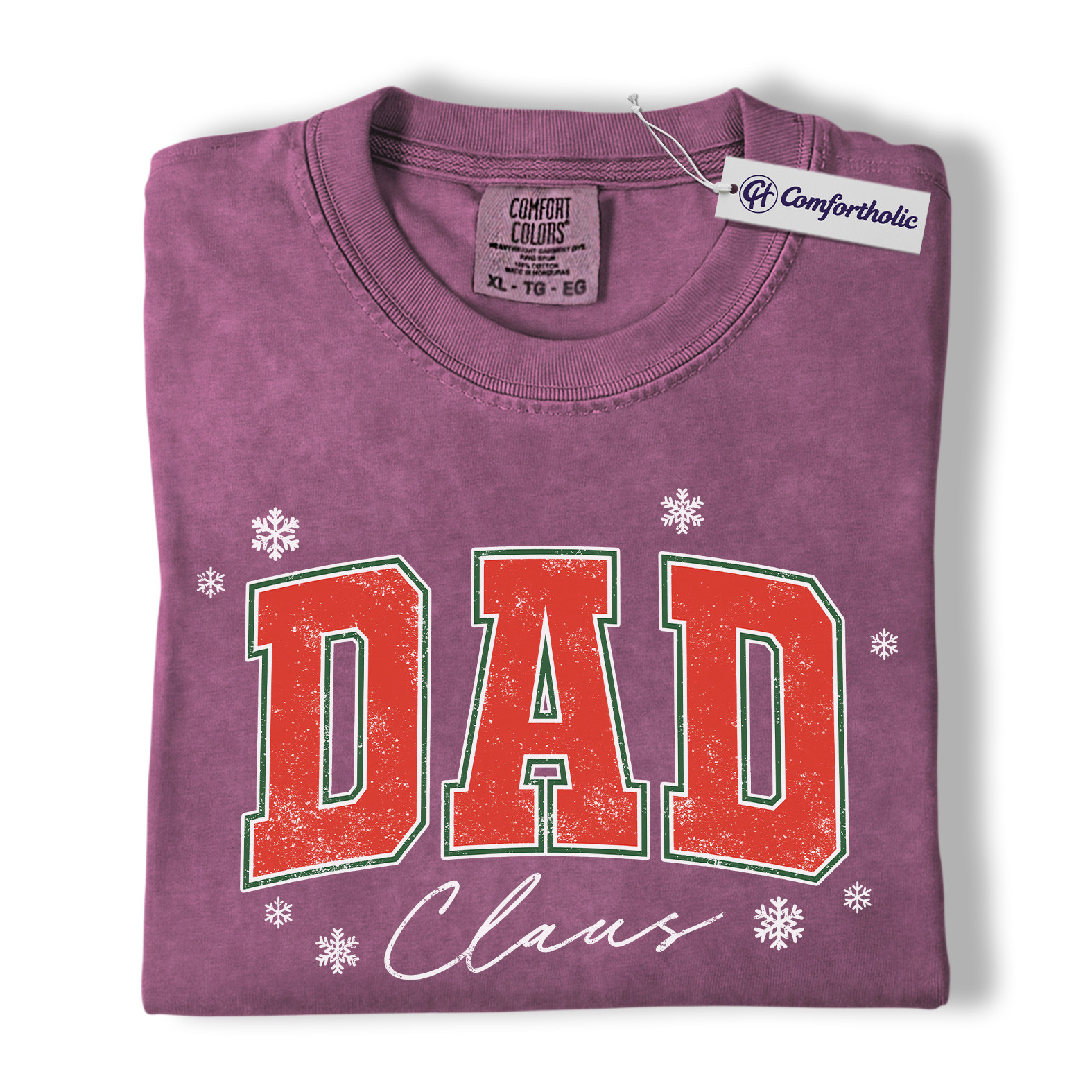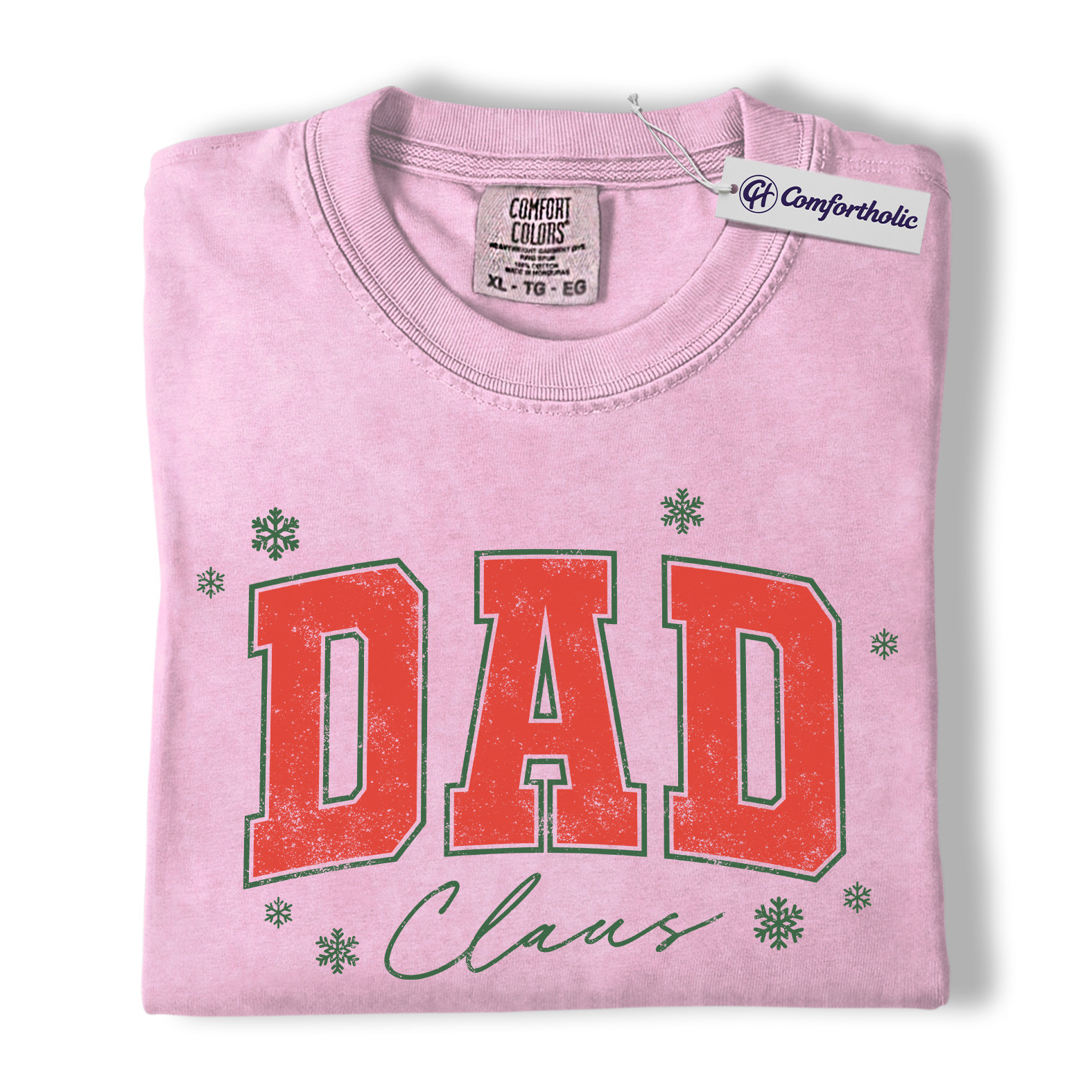 Dad Claus Shirt, Dad Christmas T-Shirt, Varsity Distressed Holiday Typography Tee, Funny Christmas Gift for Men, Christmas Comfort Colors Shirt