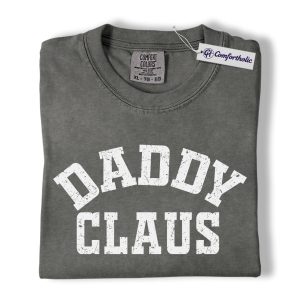 Daddy Claus Shirt, Dad Christmas T-Shirt, Distressed Holiday Typography Father Graphic Tee, Funny Christmas Gift for Men, Christmas Comfort Colors Shirt