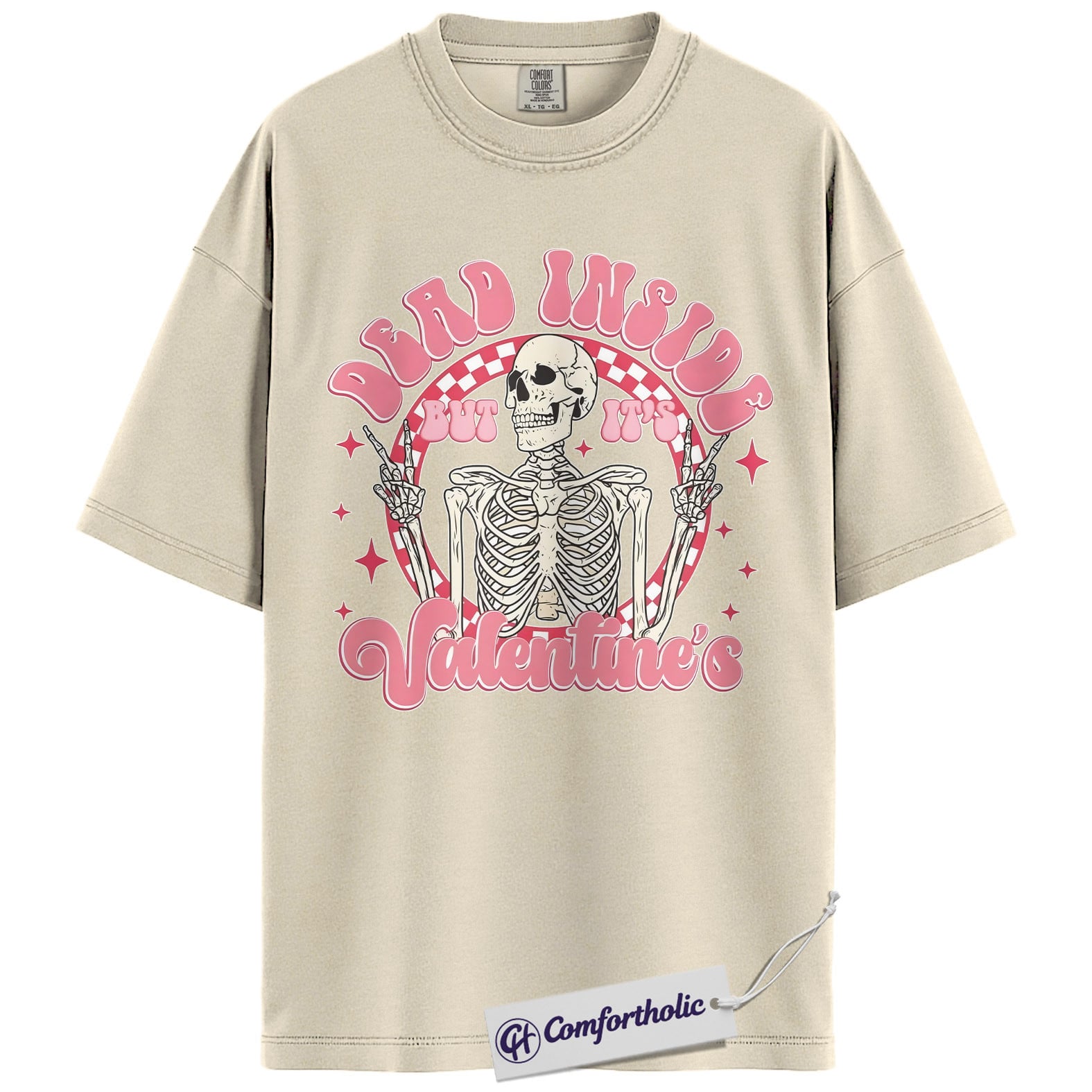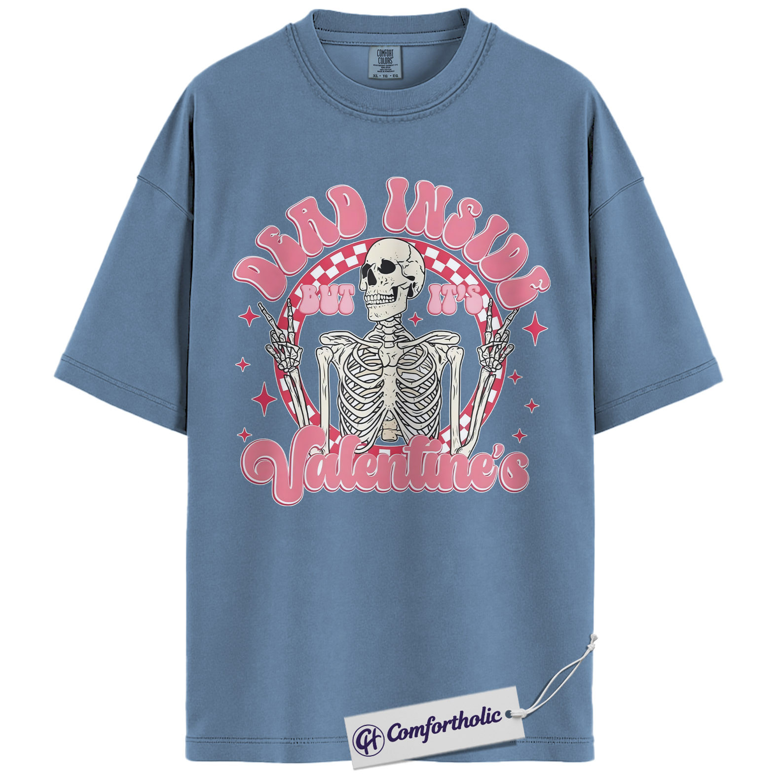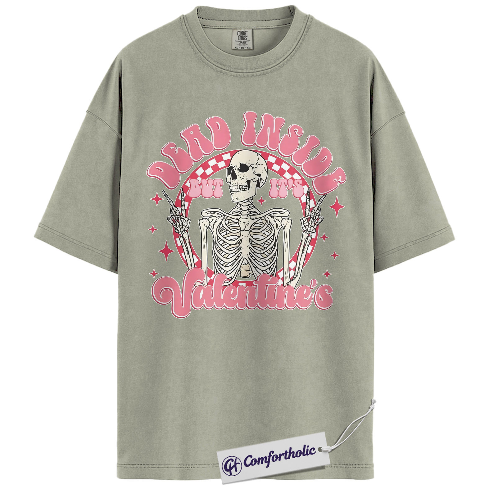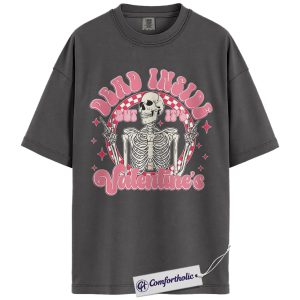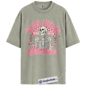 Dead Inside Valentine Shirt, Funny Skeleton Valentine Graphic Tee, Sarcastic Anti Valentine T-Shirt, Valentine’s Day Gift for Singles & Humor Lovers, Comfort Colors Shirt