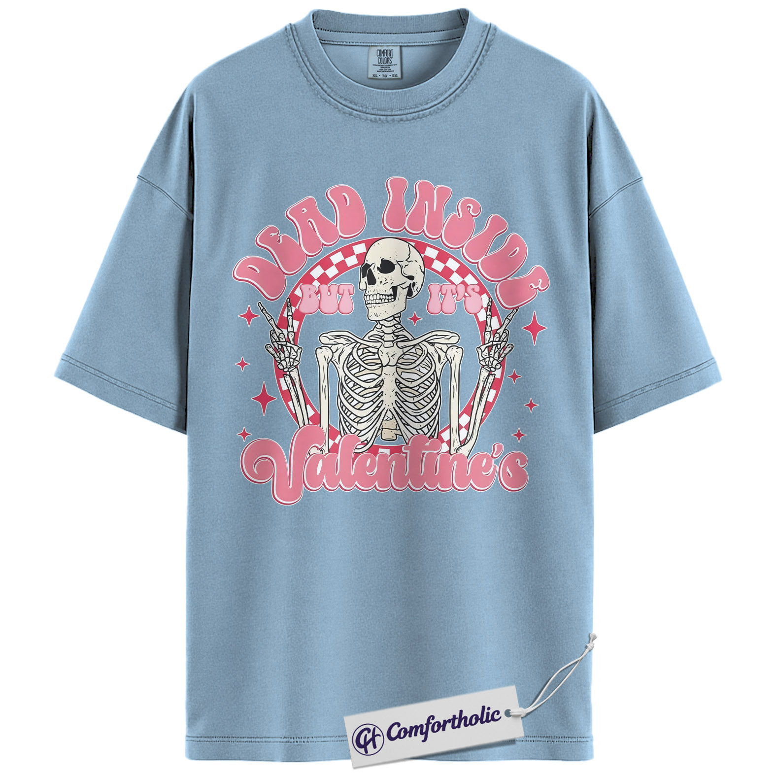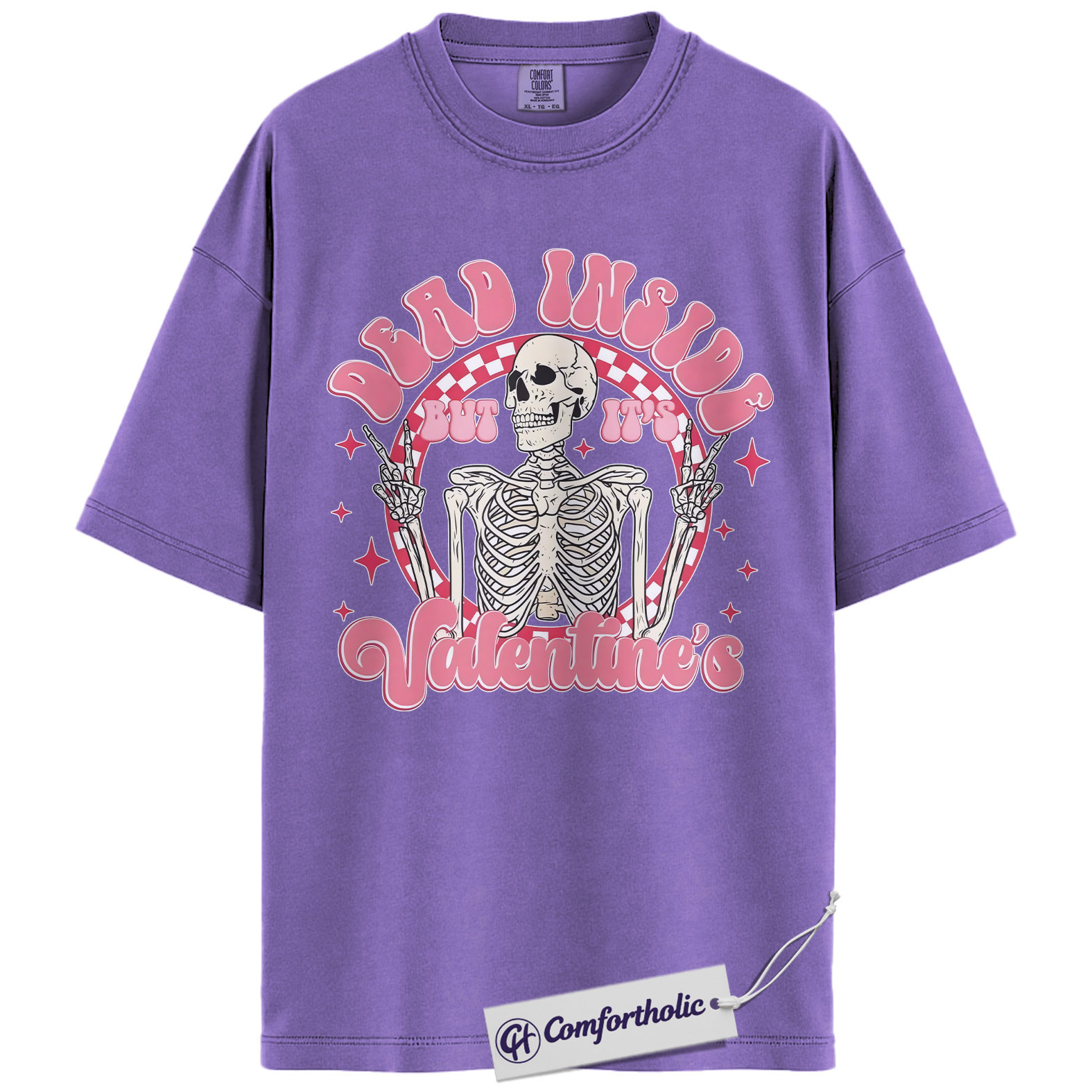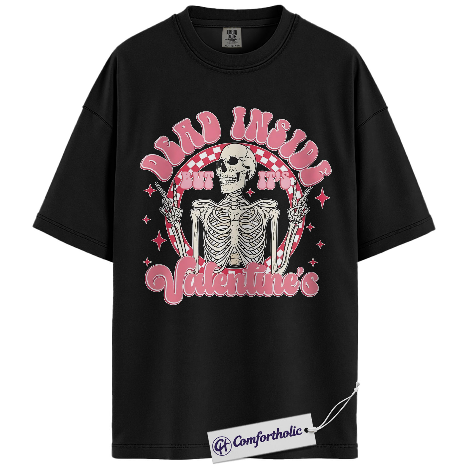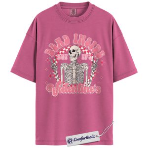 Dead Inside Valentine Shirt, Funny Skeleton Valentine Graphic Tee, Sarcastic Anti Valentine T-Shirt, Valentine’s Day Gift for Singles & Humor Lovers, Comfort Colors Shirt