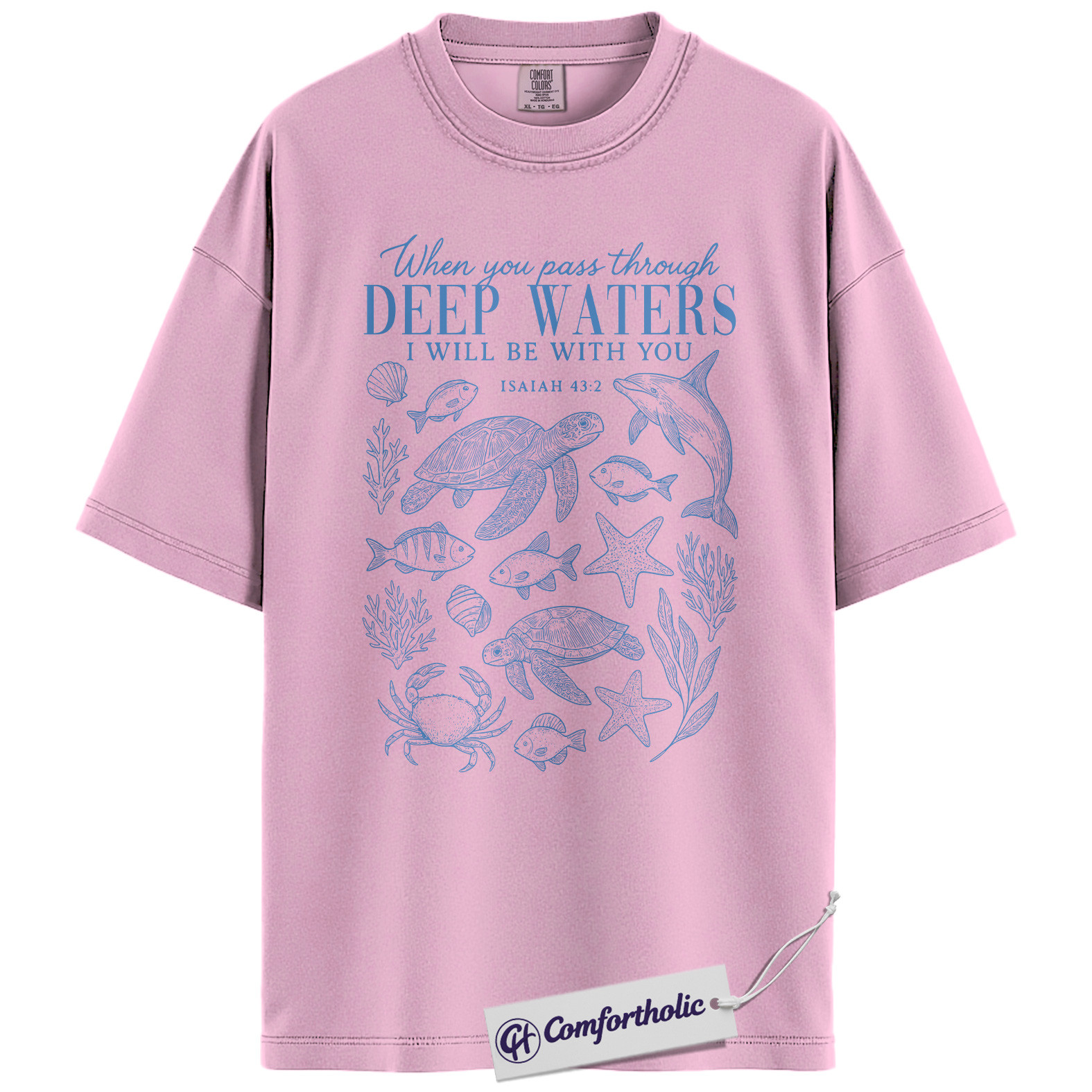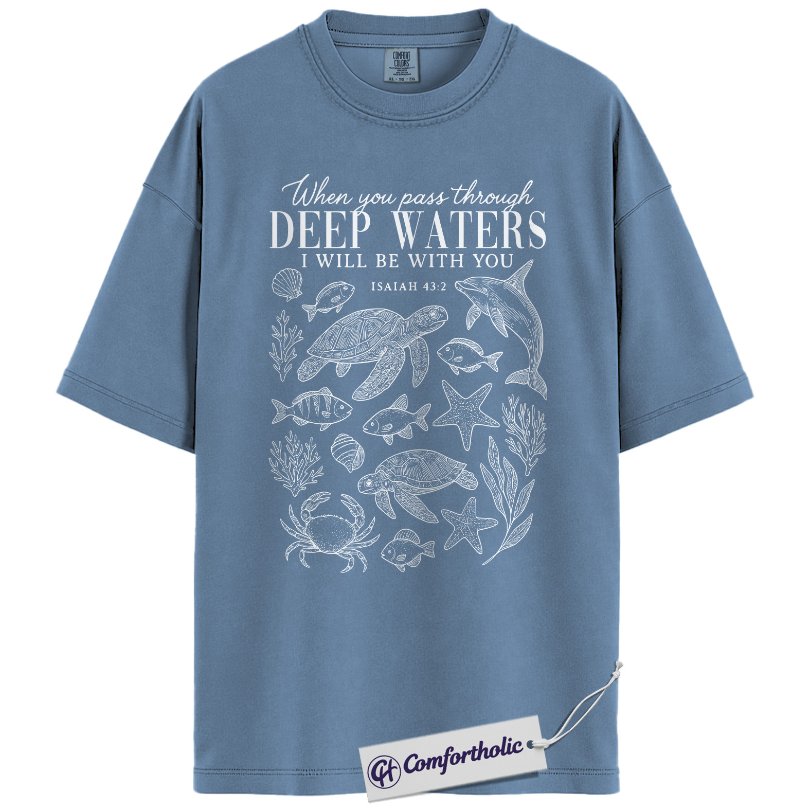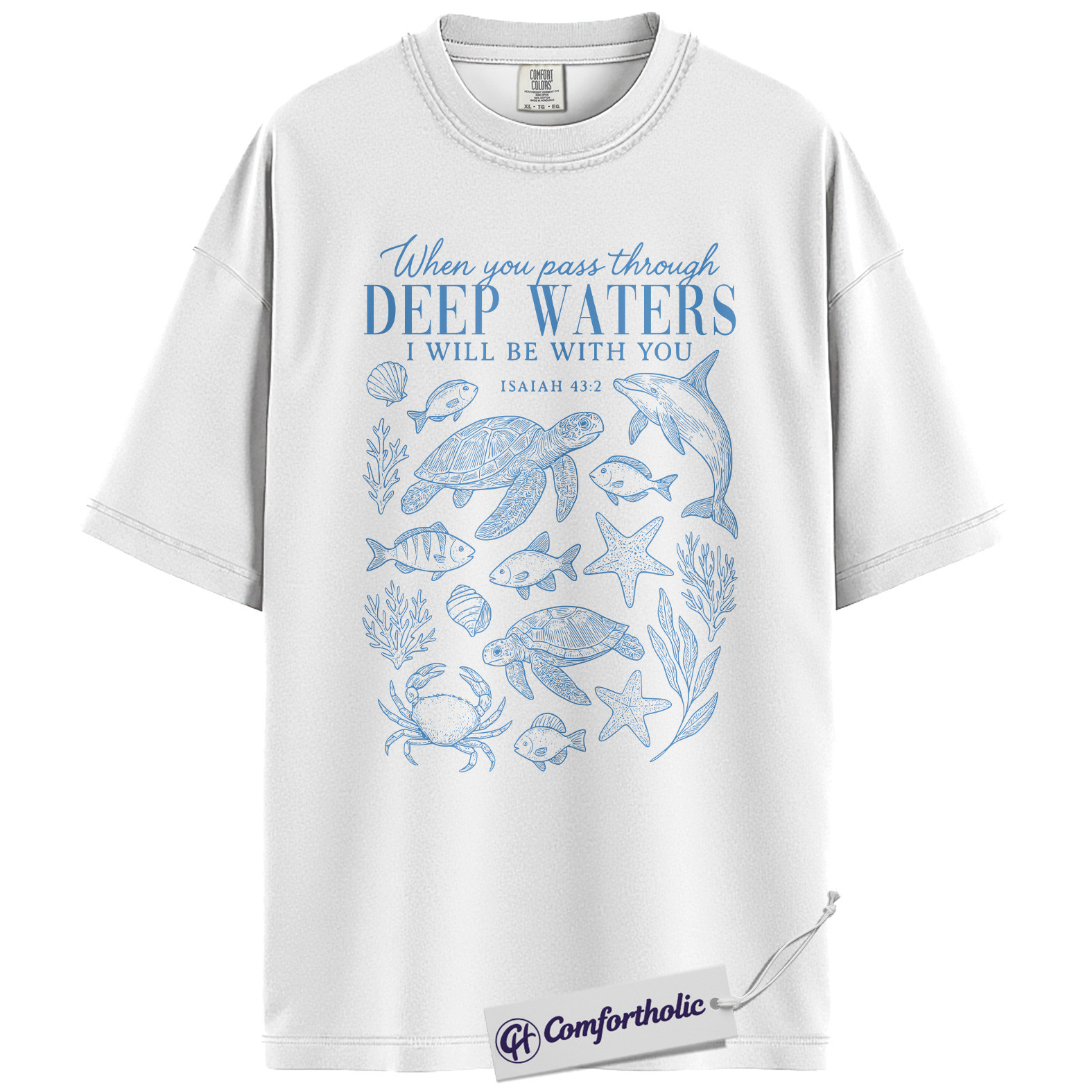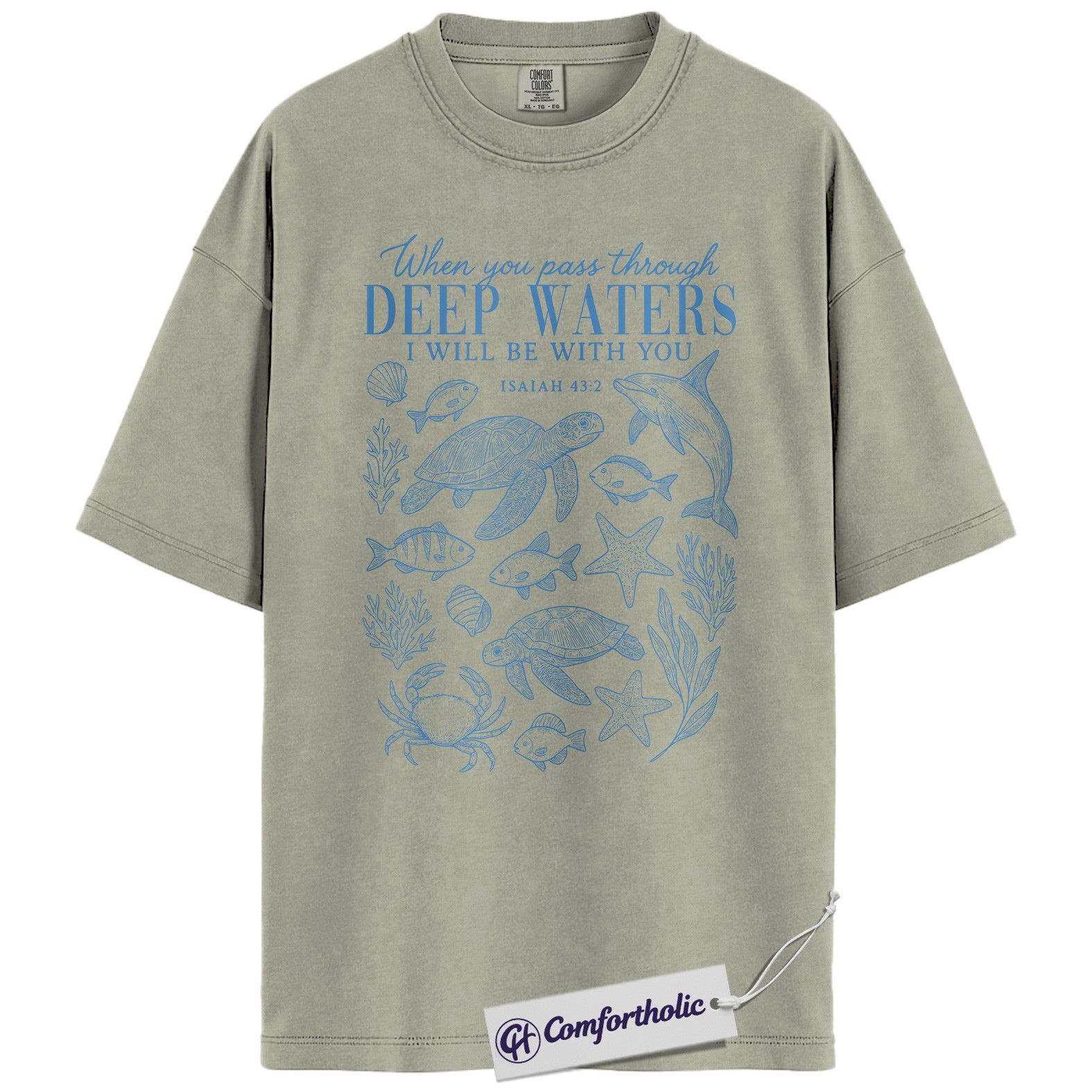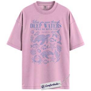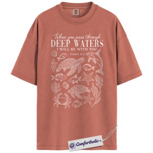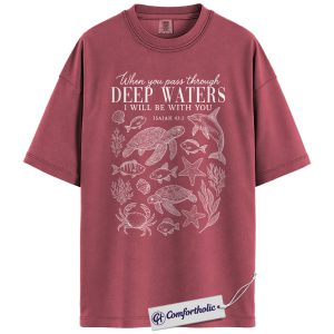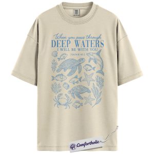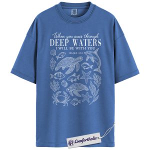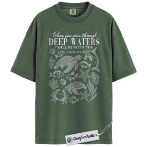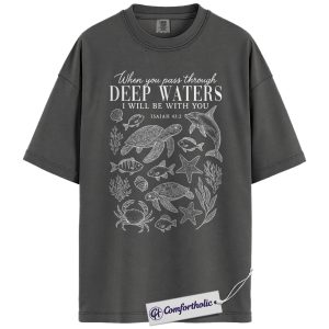 Deep Waters Shirt, Isaiah 43:2 Bible Verse T-Shirt, Christian Ocean Graphic Tee, Faith-Based Religious Gift, Inspirational Comfort Colors Shirt