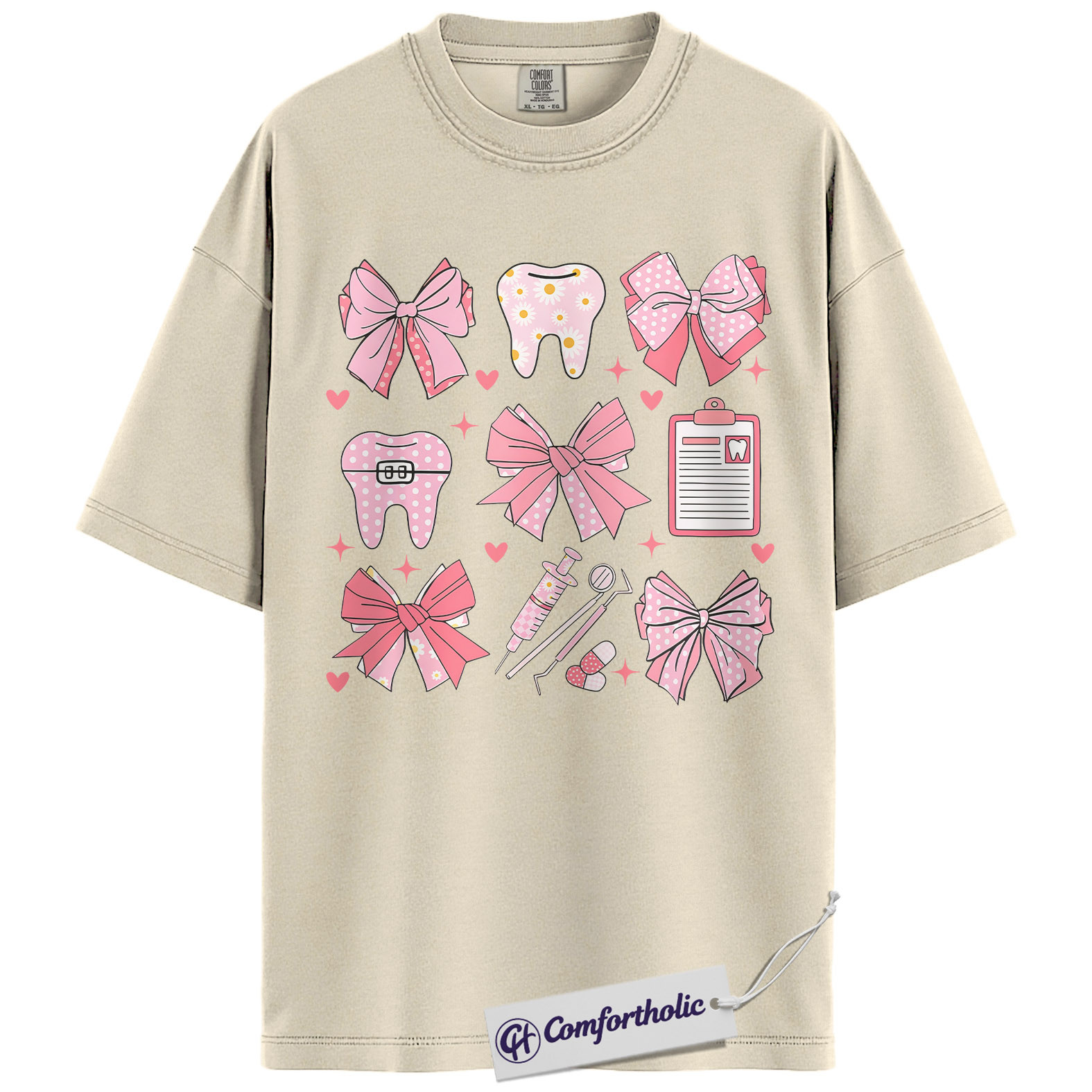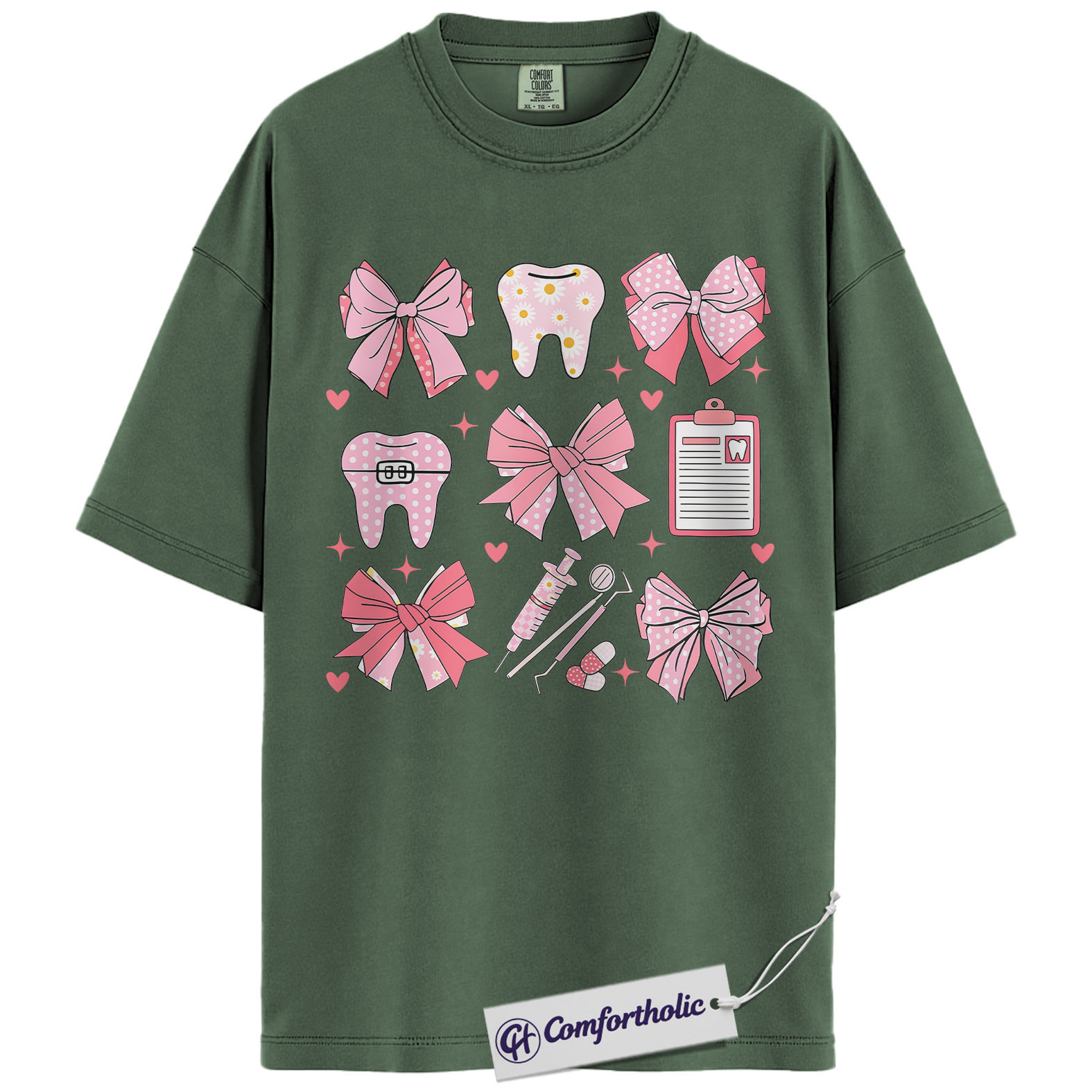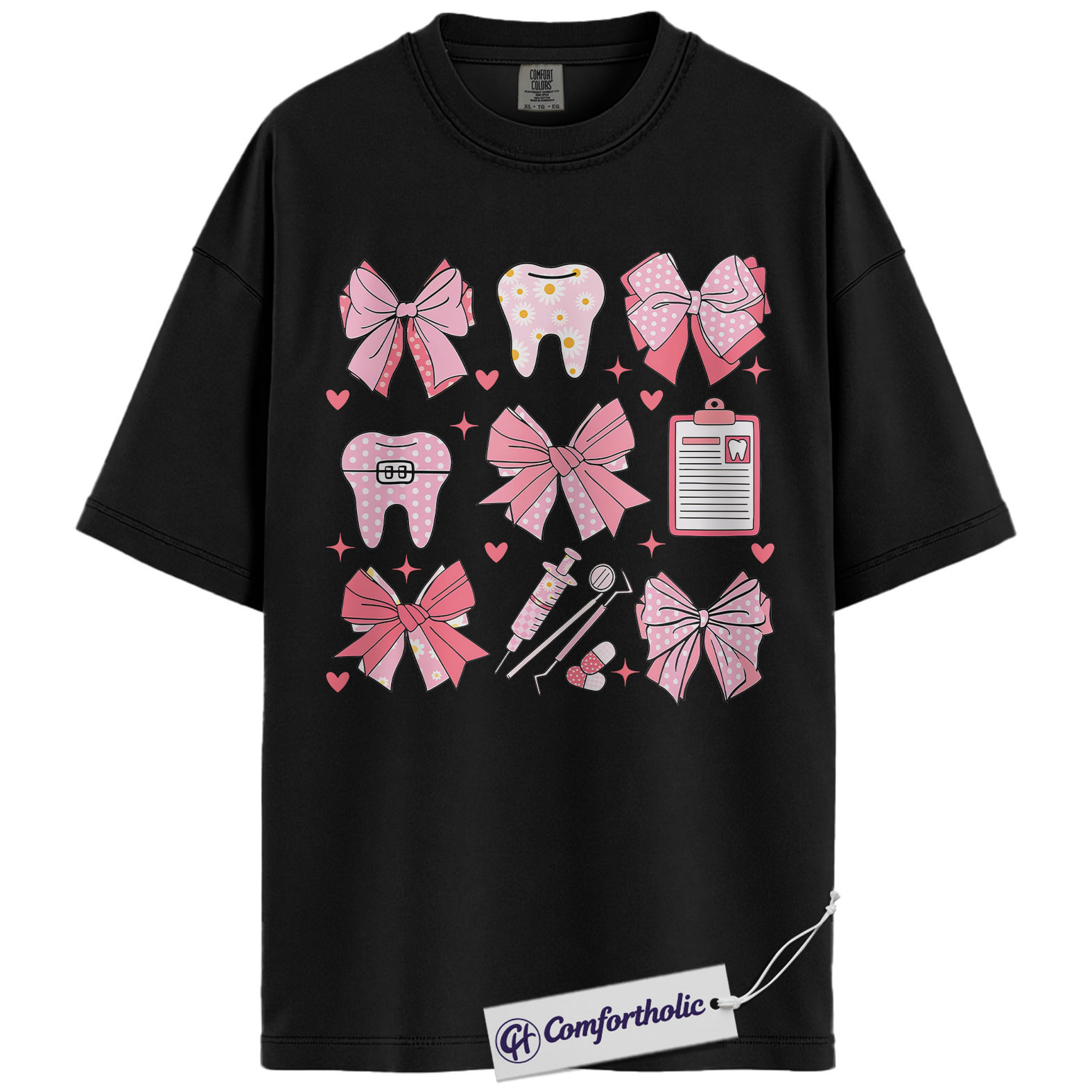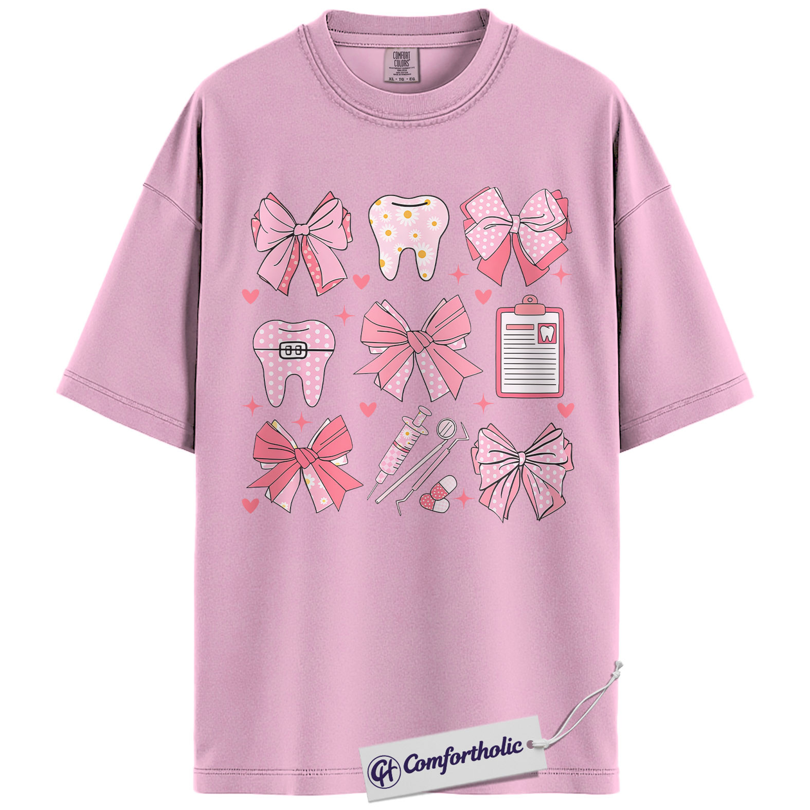 Dental Valentine Shirt, Cute Pink Bows Tooth Graphic Tee, Dental Hygienist & Assistant T-Shirt, Valentine’s Day Gift for Dental Staff, Comfort Colors Shirt
