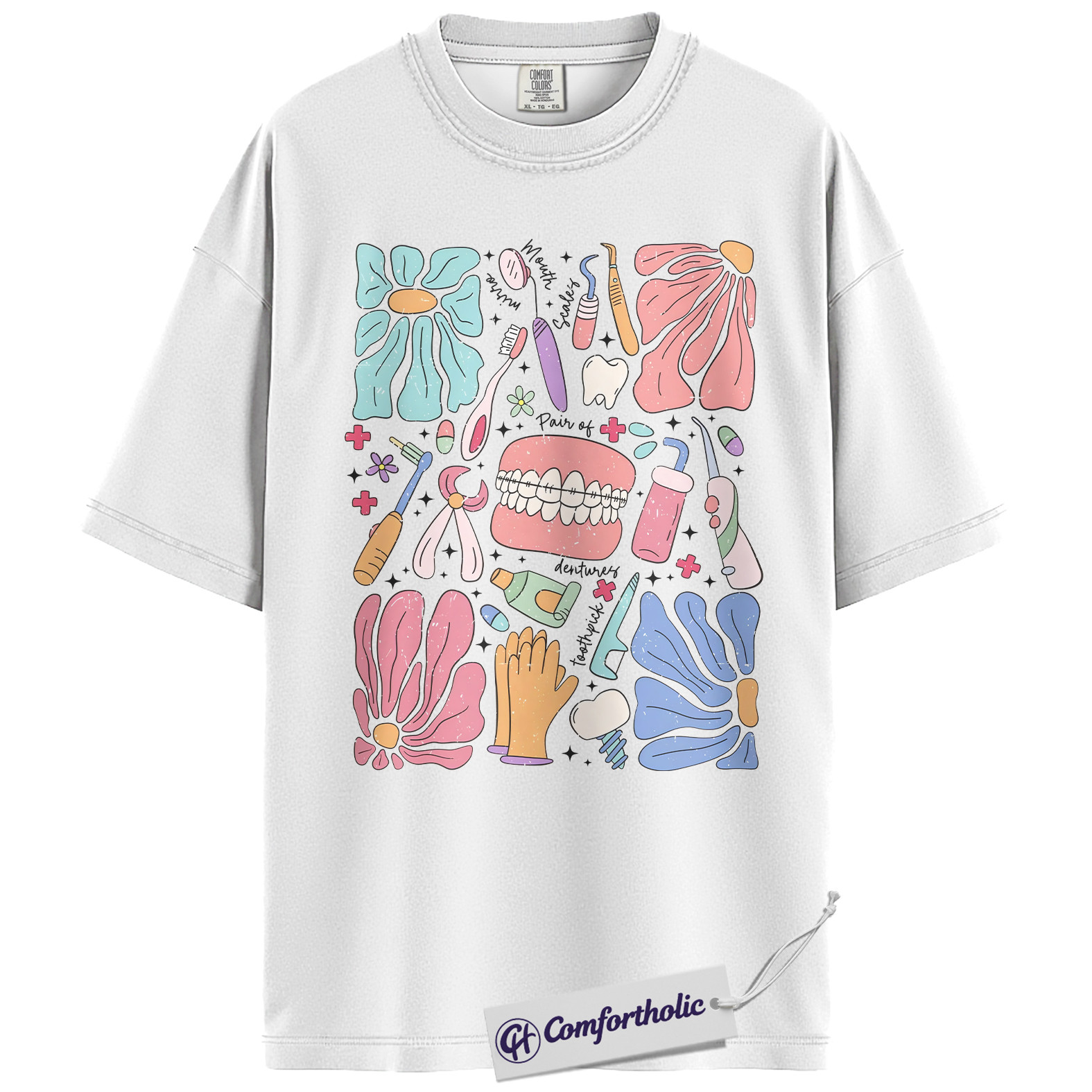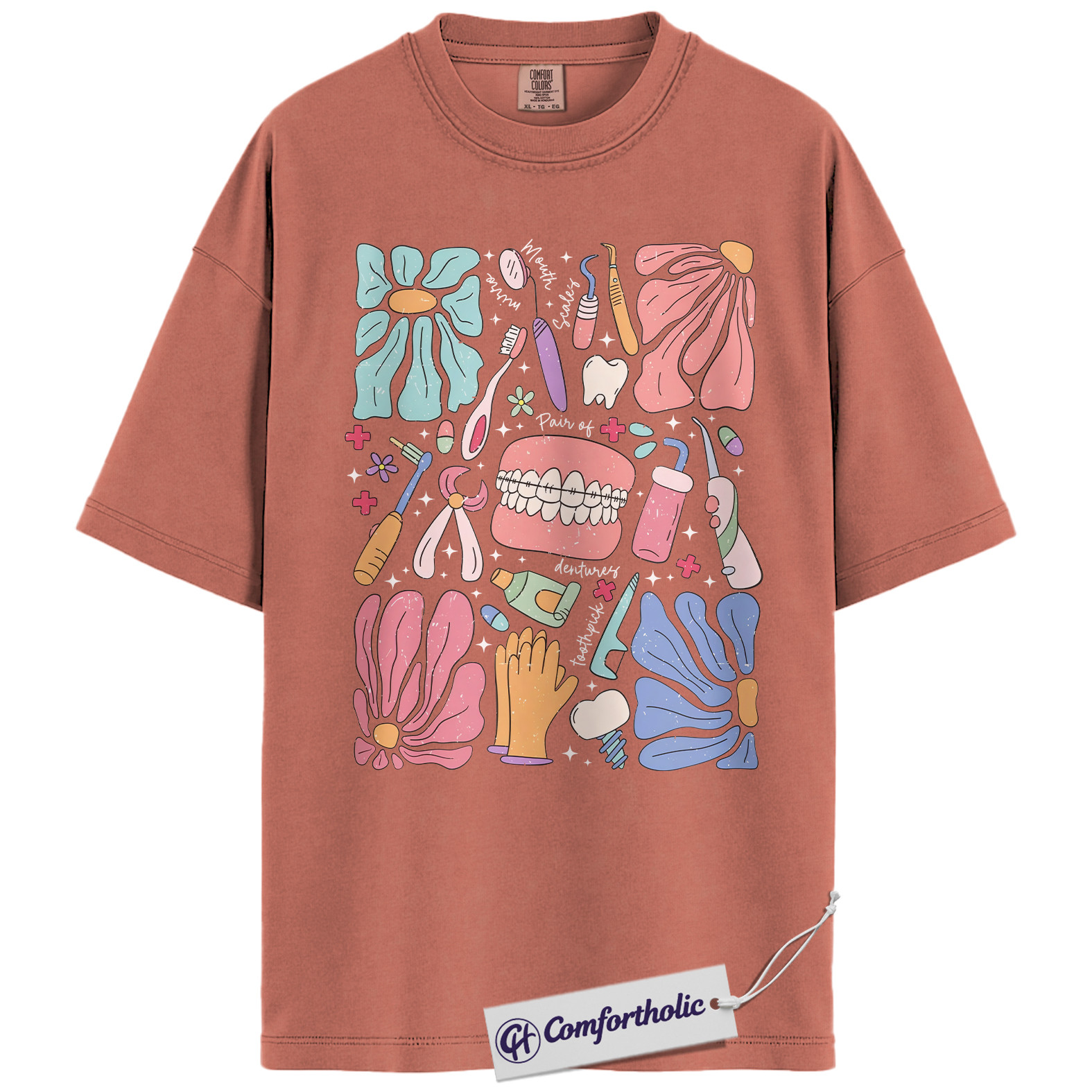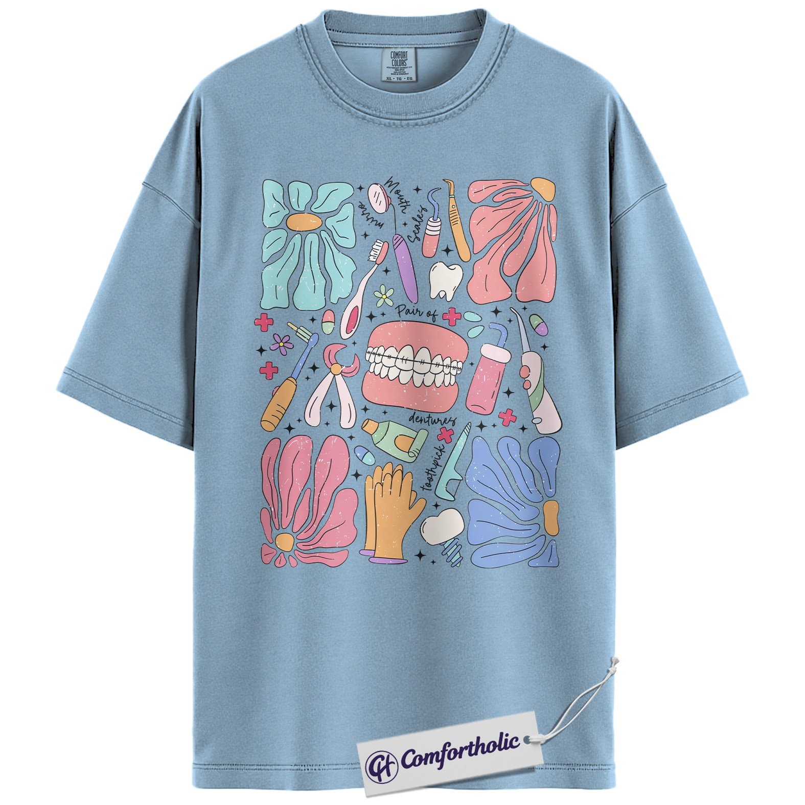 Dentist Shirt, Cute Dental Icons Graphic Tee, Dental Assistant Aesthetic T-Shirt, Pastel Tooth Gift for Dental Hygienists, Comfort Colors Shirt