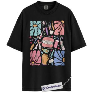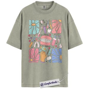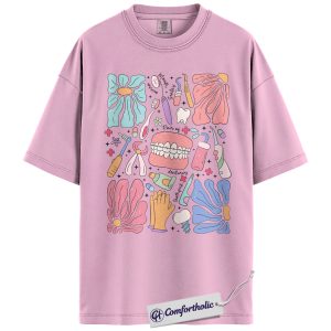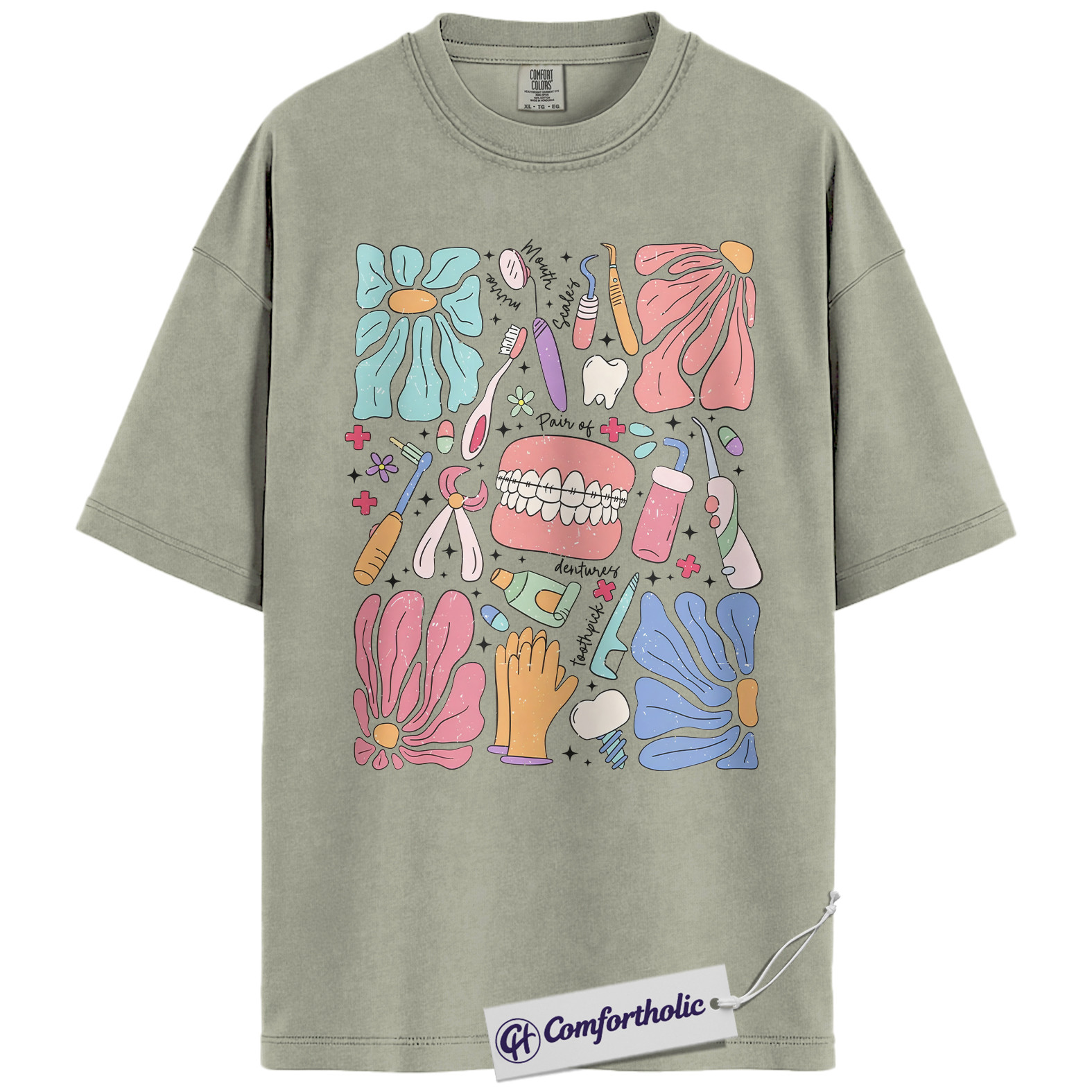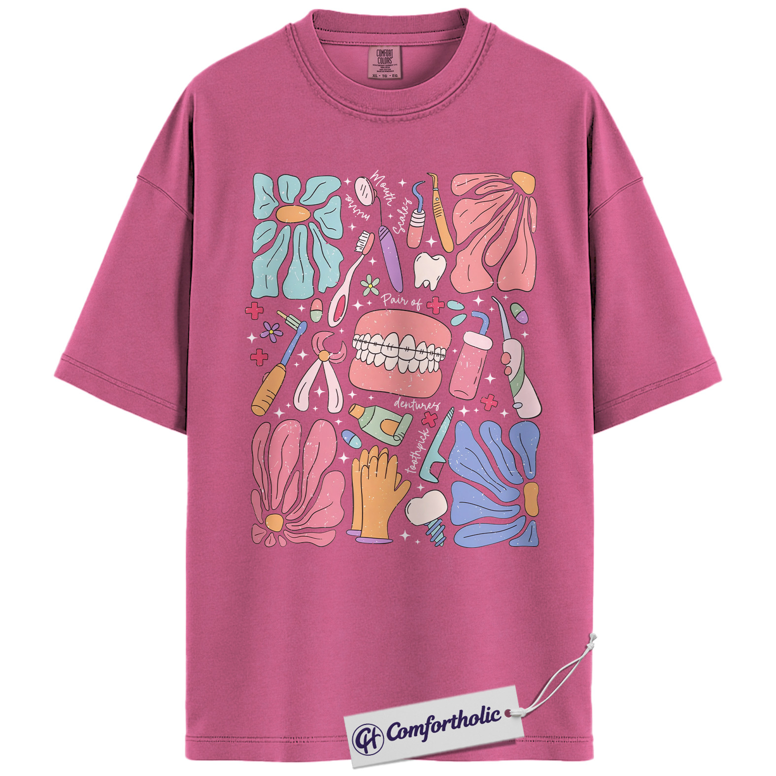 Dentist Shirt, Cute Dental Icons Graphic Tee, Dental Assistant Aesthetic T-Shirt, Pastel Tooth Gift for Dental Hygienists, Comfort Colors Shirt