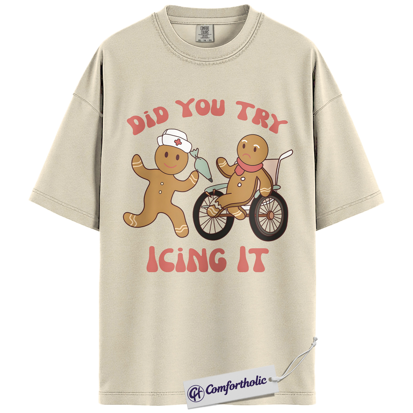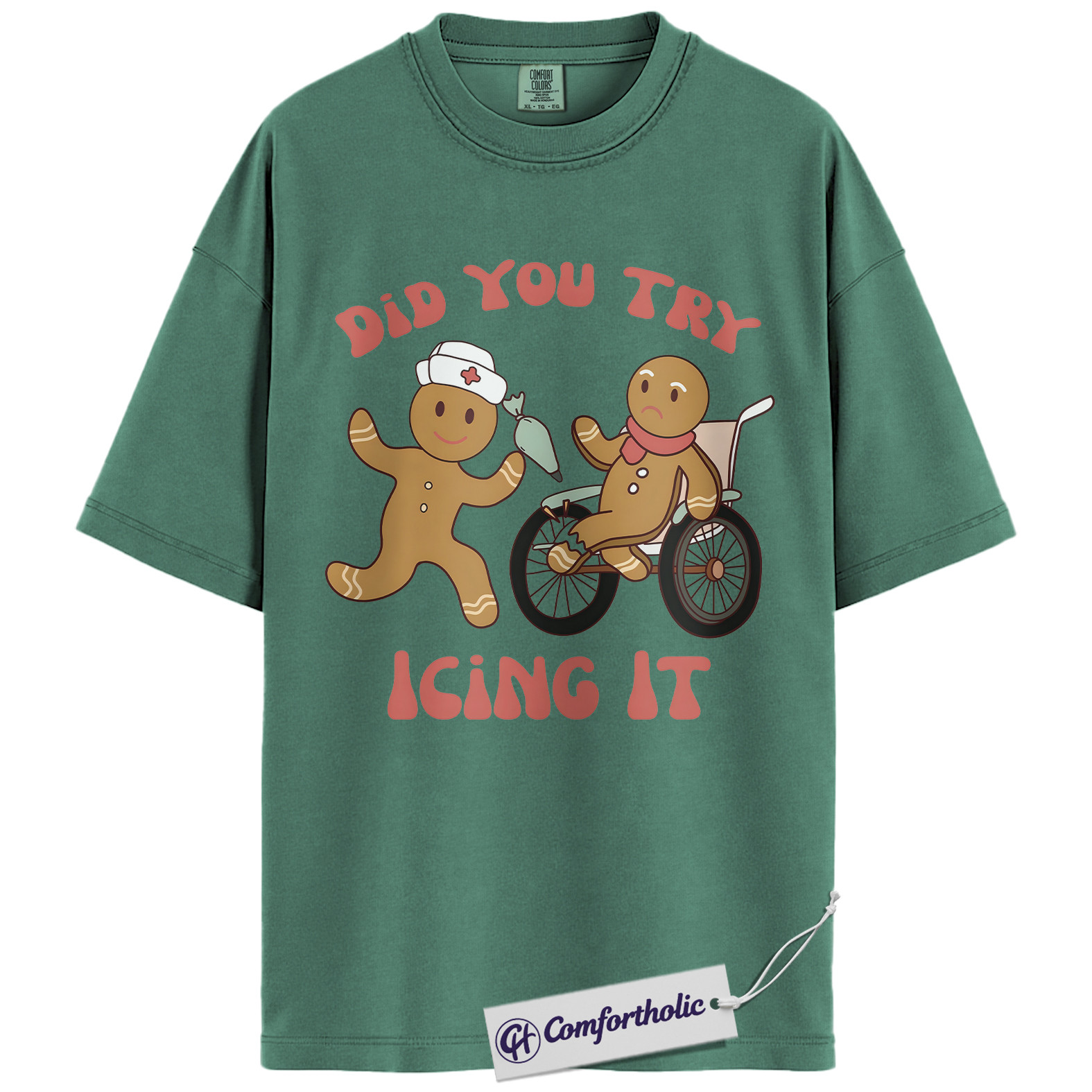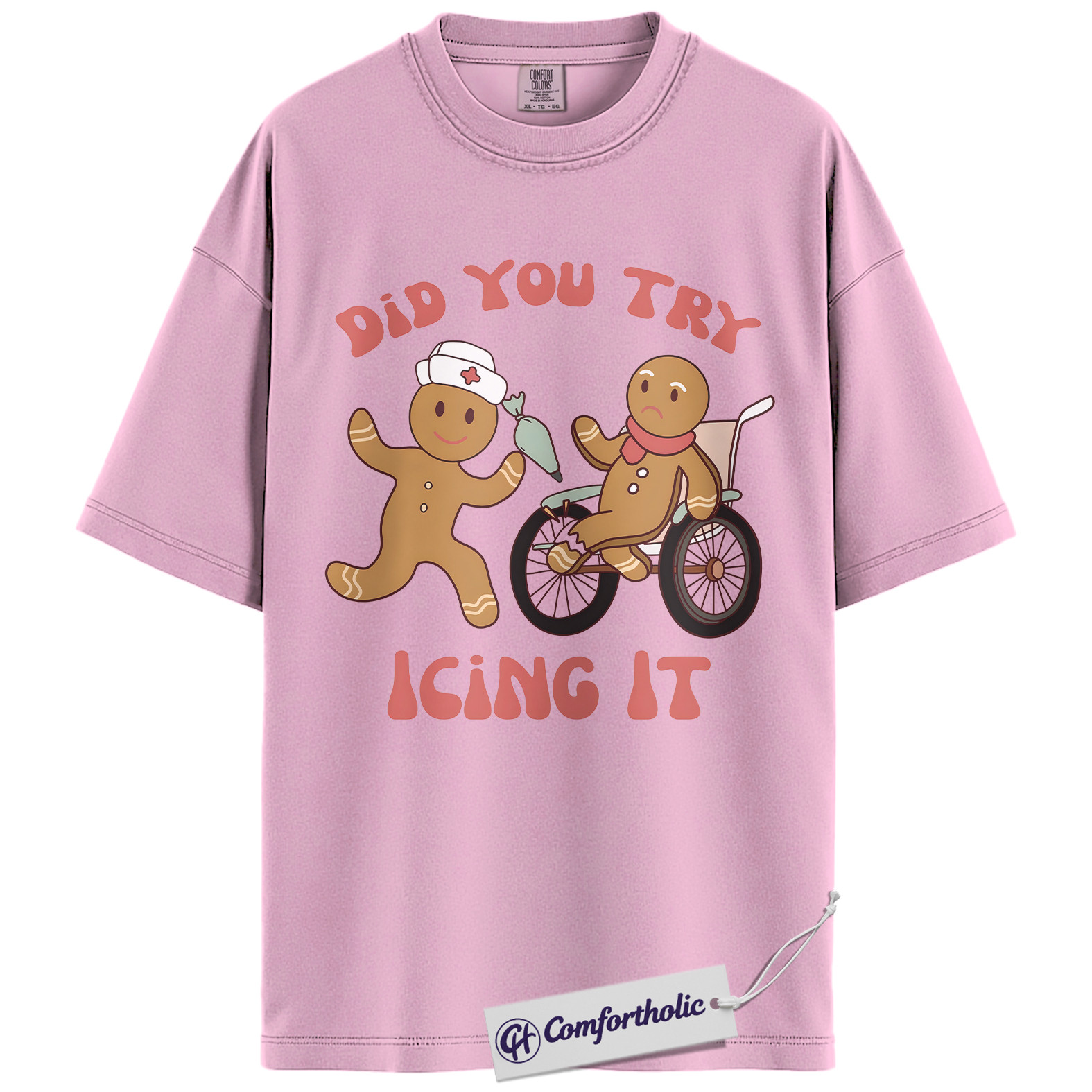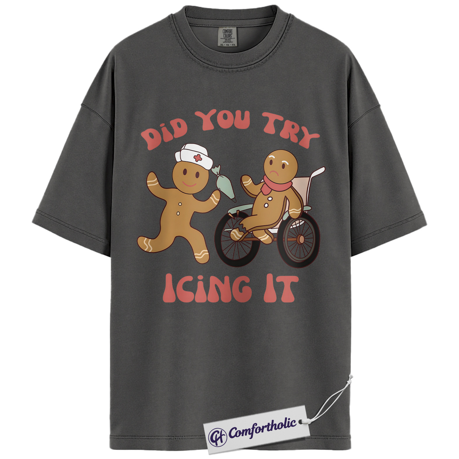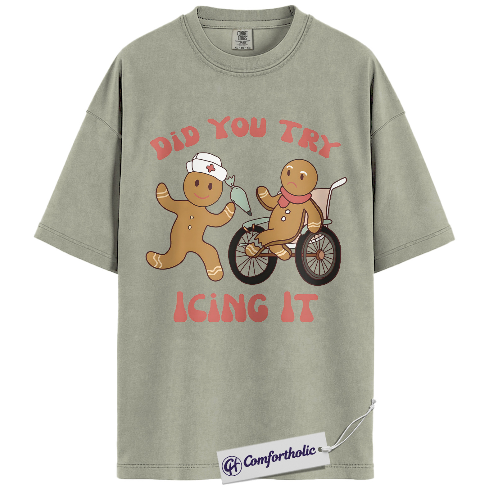Did You Try Icing It Shirt, Funny Gingerbread Nurse T-Shirt, Cute Medical Christmas Graphic Tee, Holiday Pun Gift for Nurses & Doctors, Christmas Comfort Colors Shirt