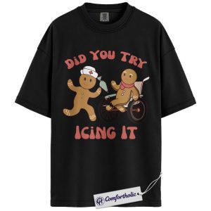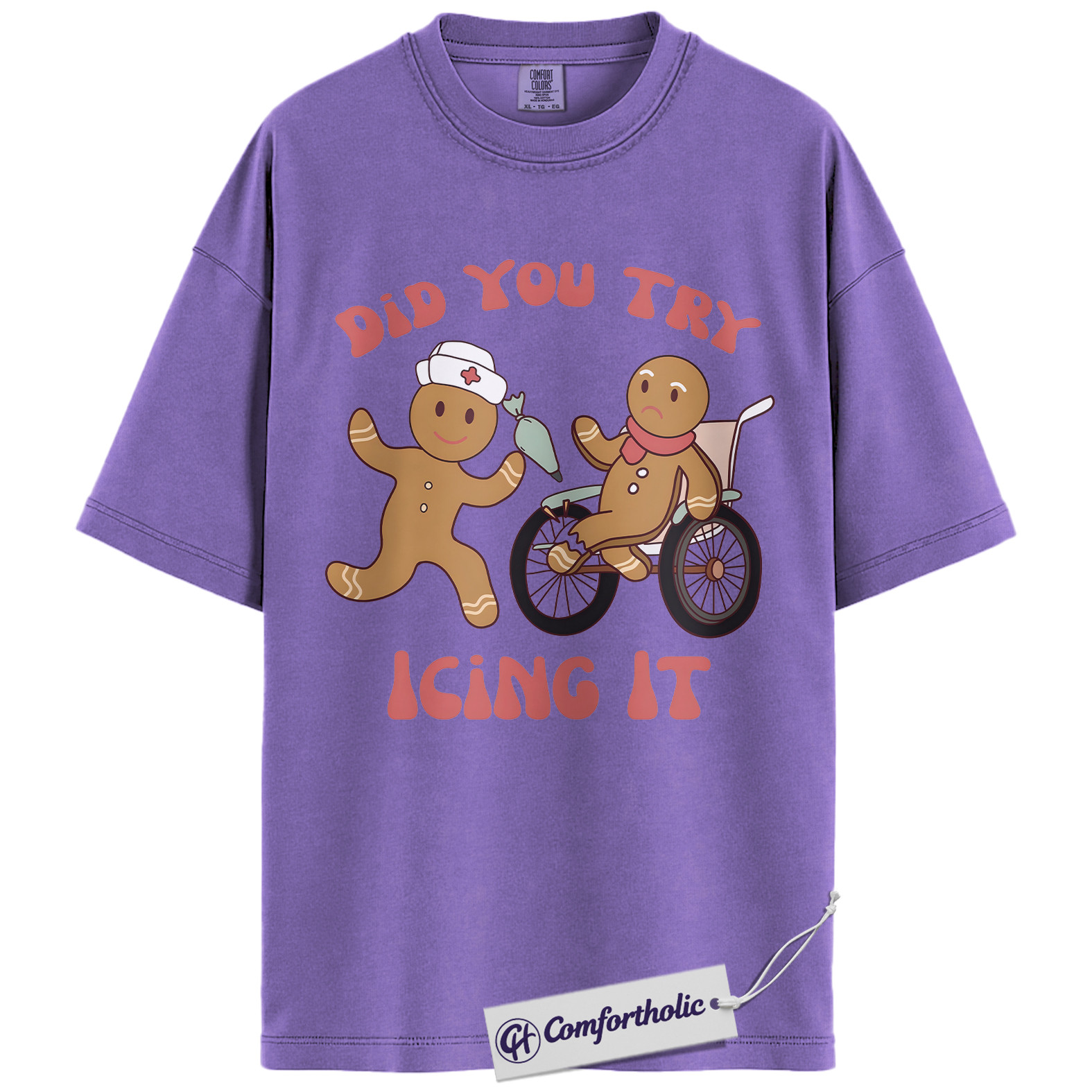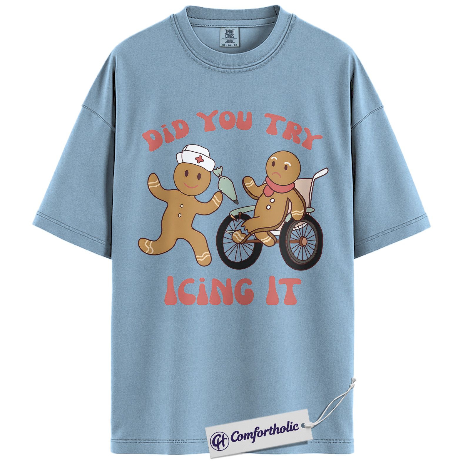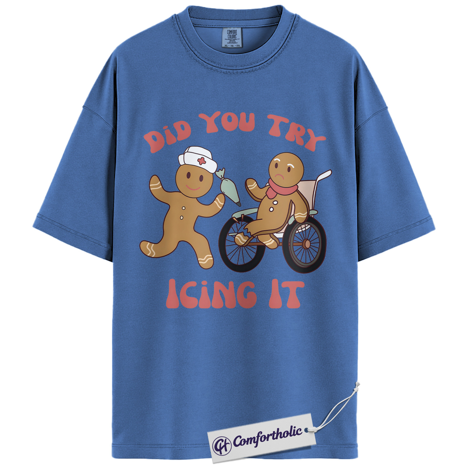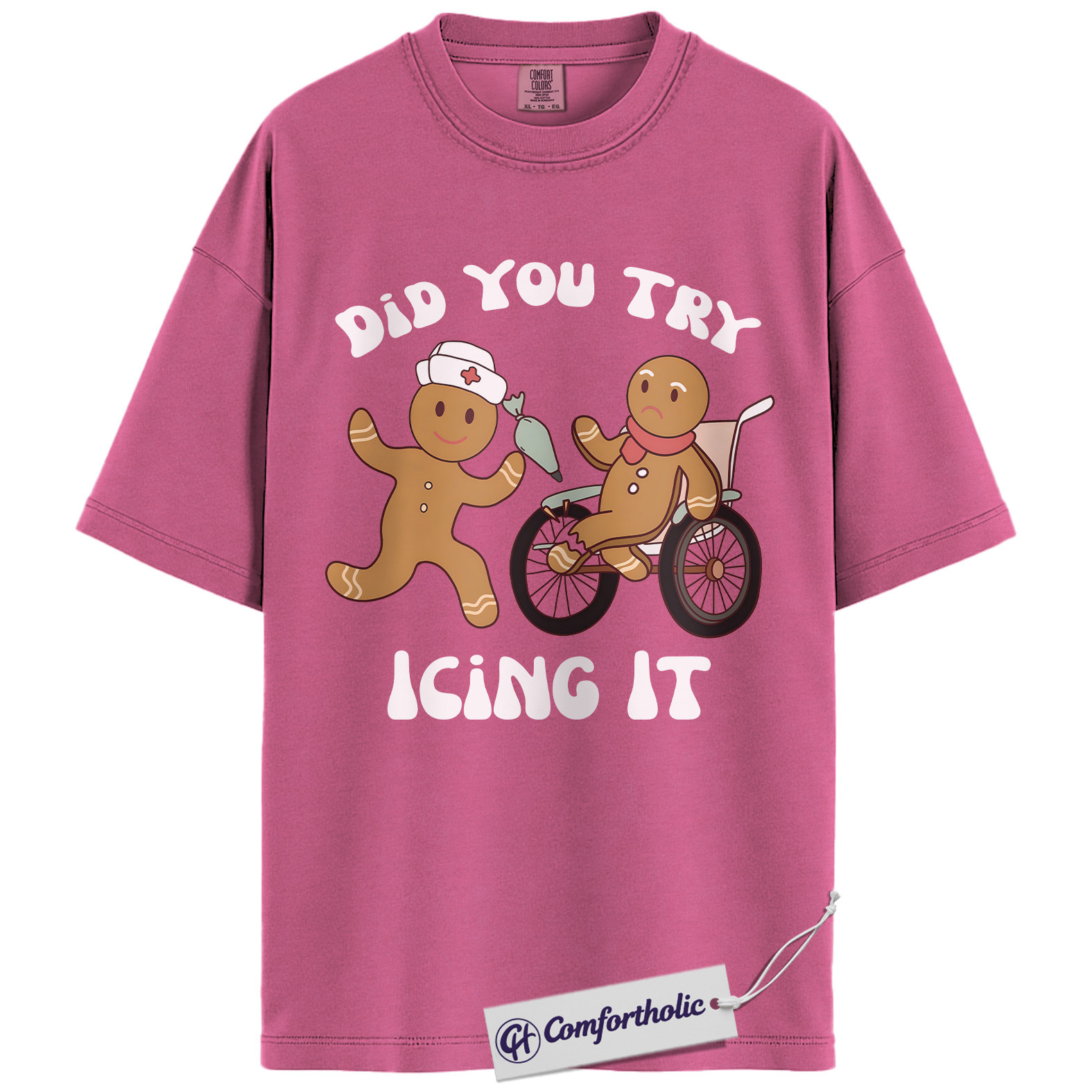 Did You Try Icing It Shirt, Funny Gingerbread Nurse T-Shirt, Cute Medical Christmas Graphic Tee, Holiday Pun Gift for Nurses & Doctors, Christmas Comfort Colors Shirt