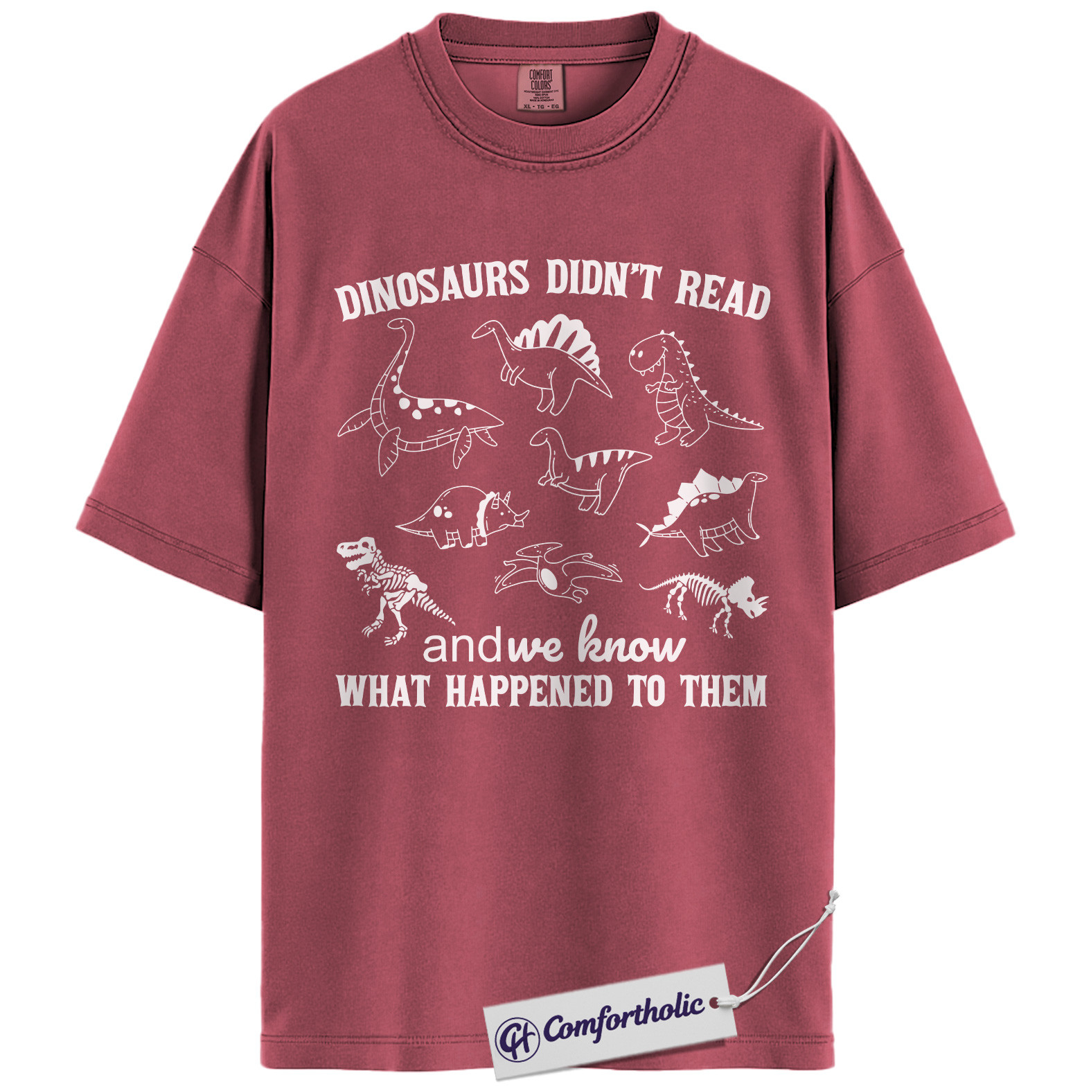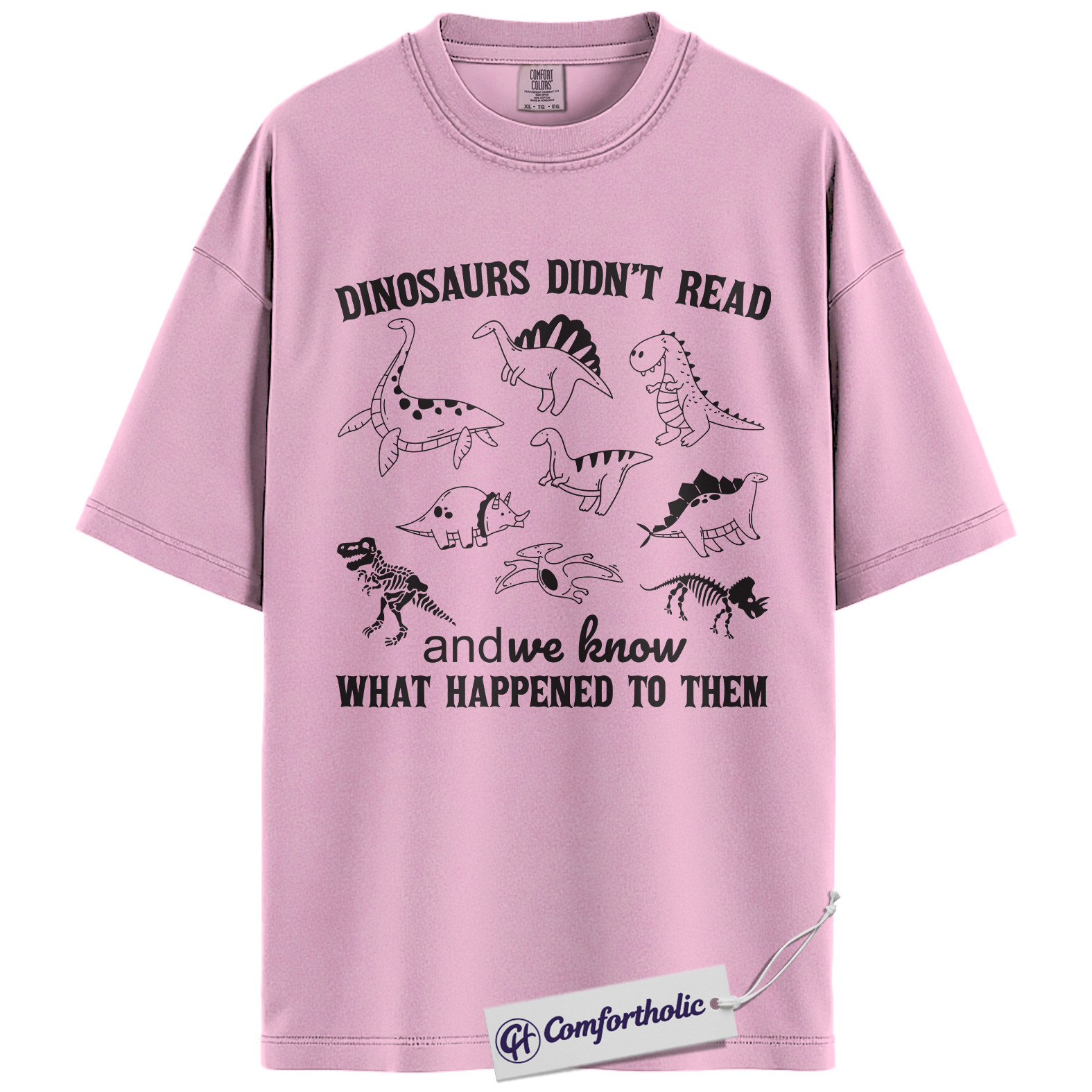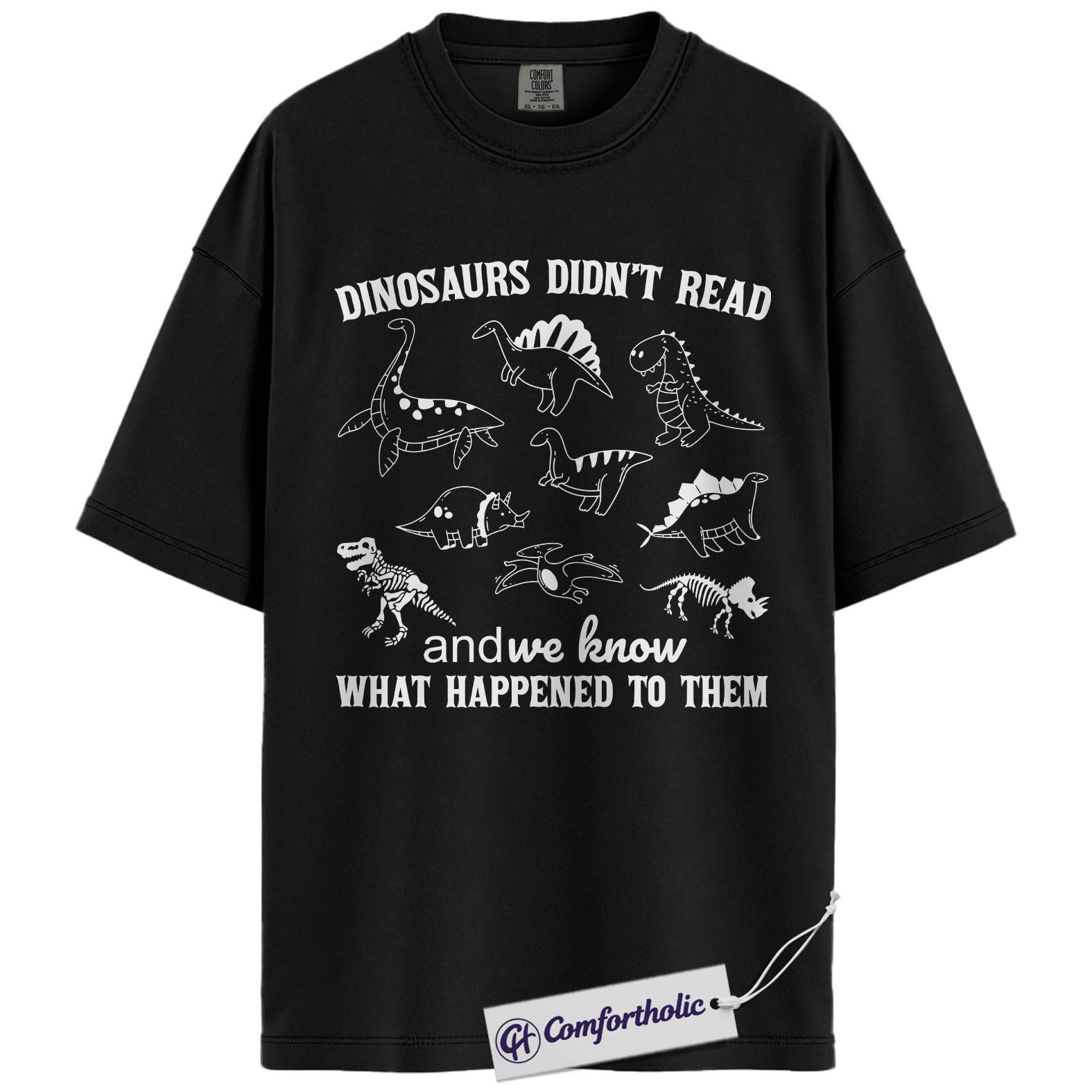 Dinosaurs Didn’t Read Shirt, Funny Reading Teacher T-Shirt, Literacy Awareness Graphic Tee for Book Lovers and Educators, Comfort Colors Shirt