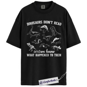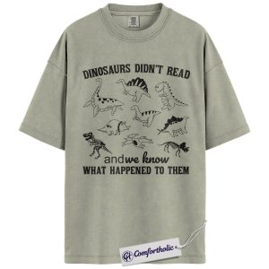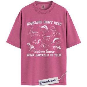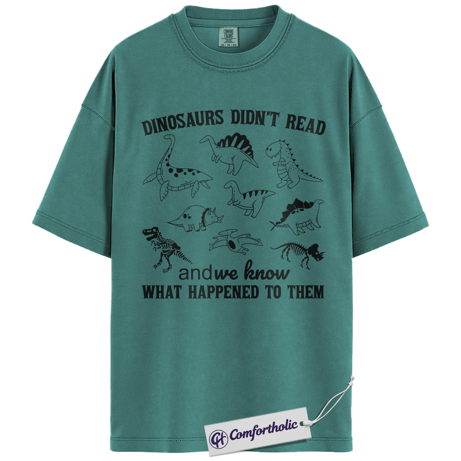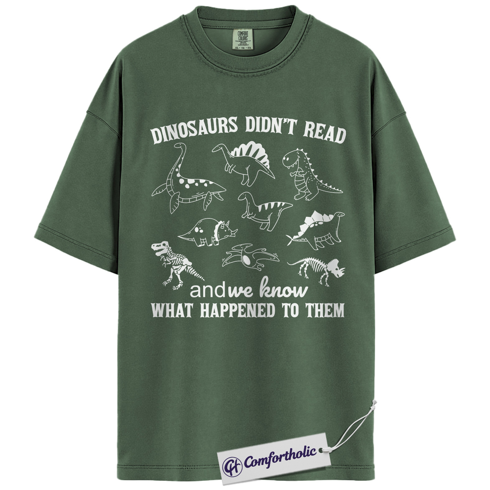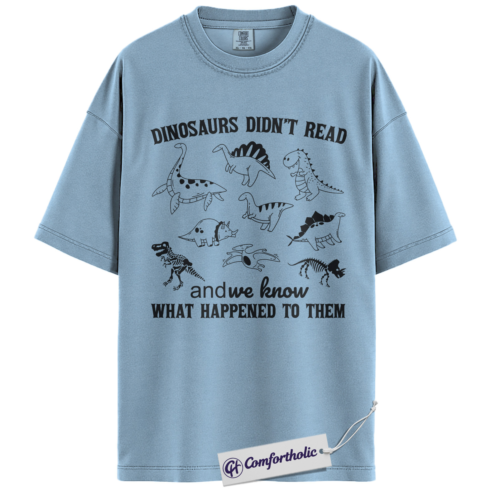 Dinosaurs Didn’t Read Shirt, Funny Reading Teacher T-Shirt, Literacy Awareness Graphic Tee for Book Lovers and Educators, Comfort Colors Shirt