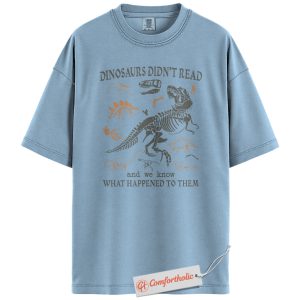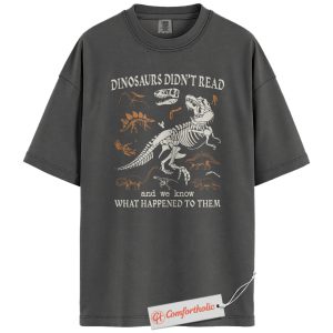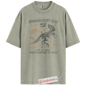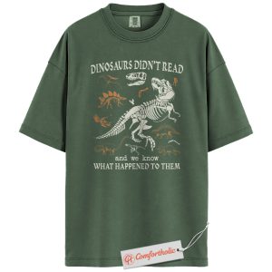 Dinosaurs Didn’t Read Shirt, Funny Reading Teacher T-Shirt, Prehistoric Fossil Graphic Tee, Back to School Gift for Book Lovers, Literacy Comfort Colors Shirt
