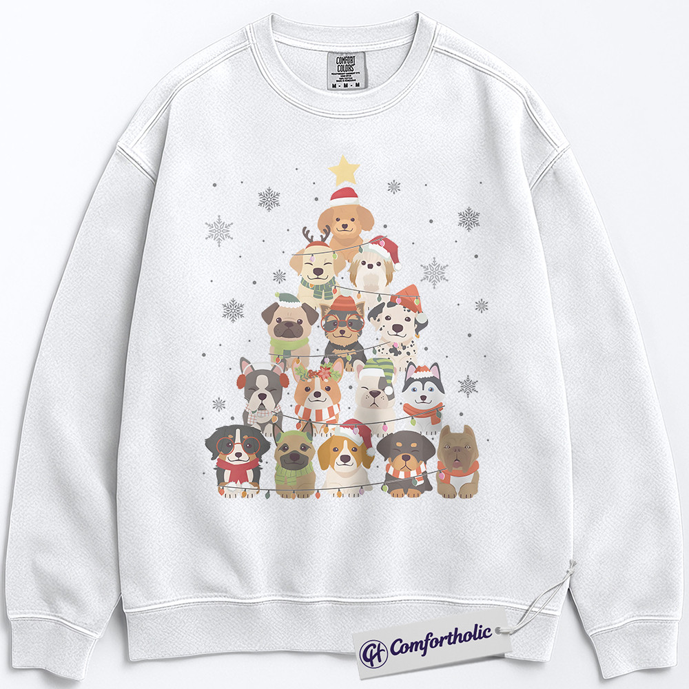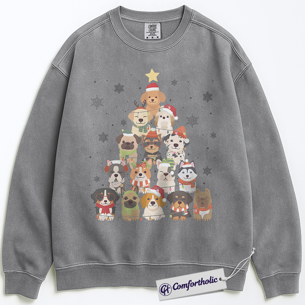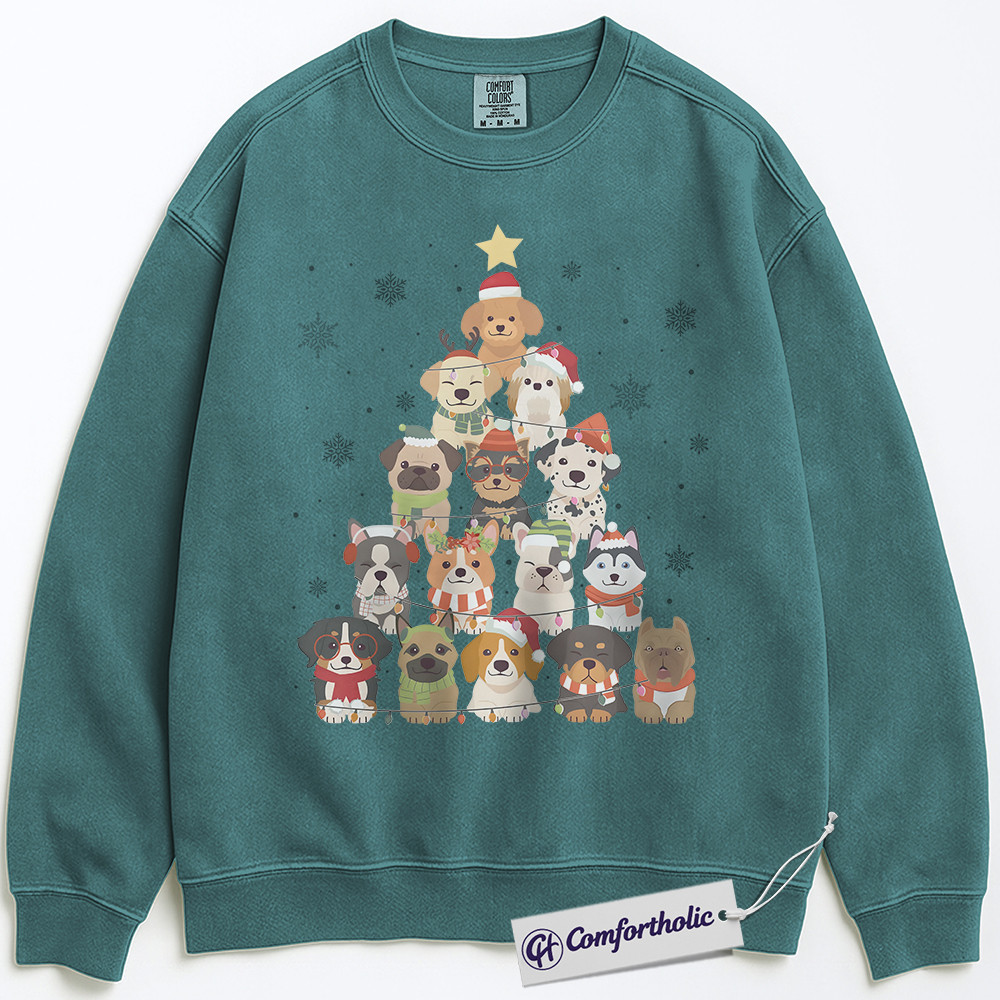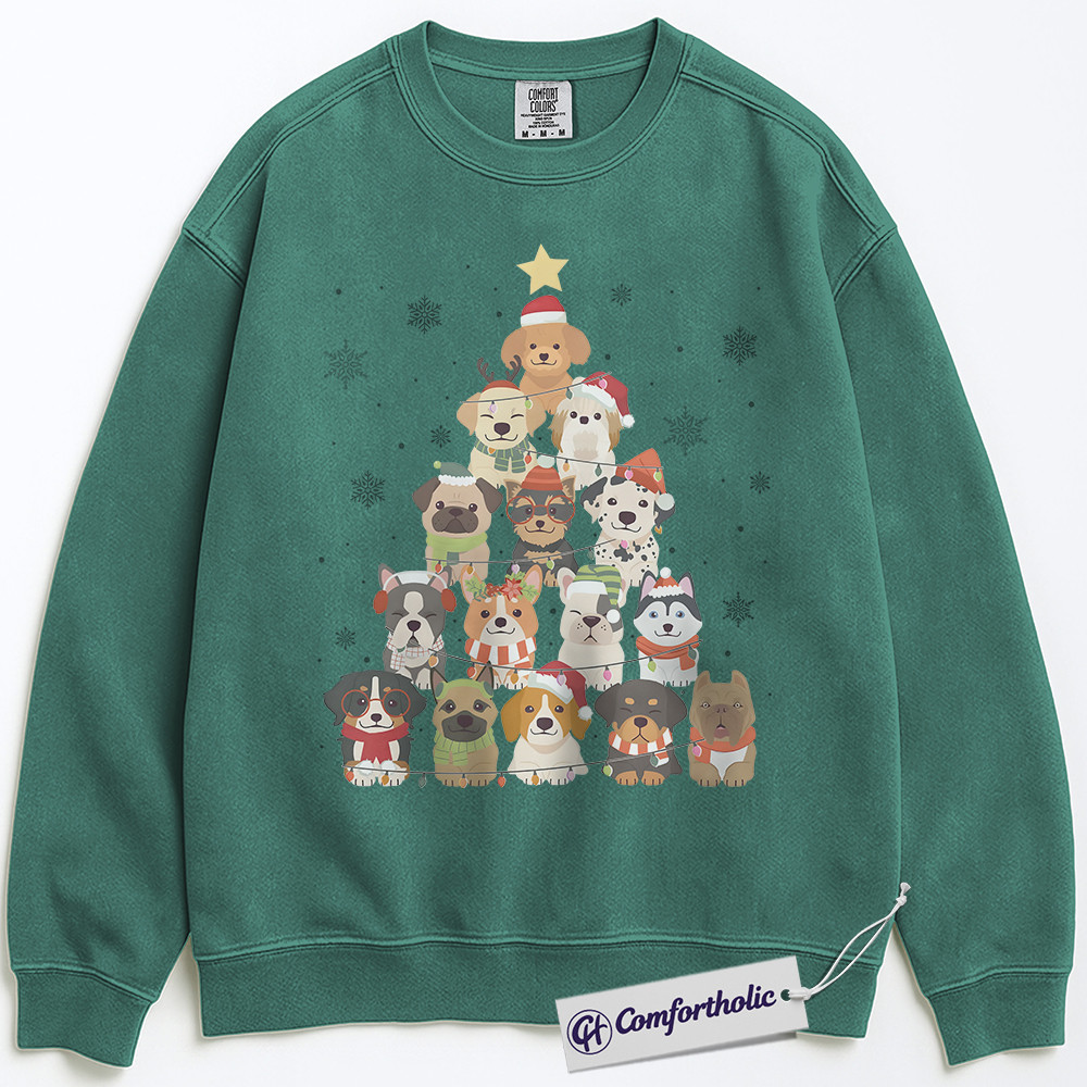 Dog Christmas Tree Sweatshirt, Cute Holiday Puppy Pullover, Funny Pet Lover Graphic Sweatshirt, Festive Dog Mom Gift, Christmas Comfort Colors Sweatshirt