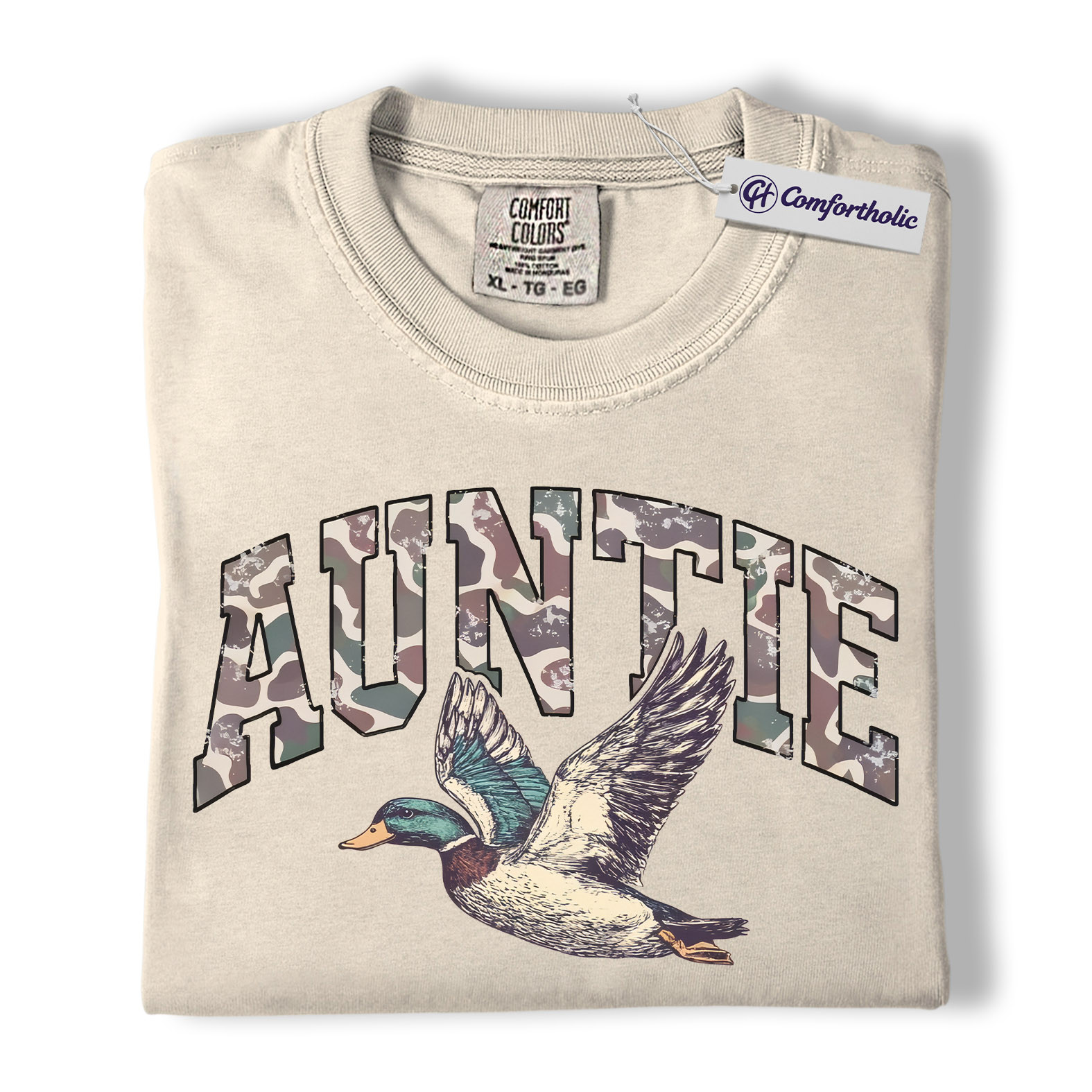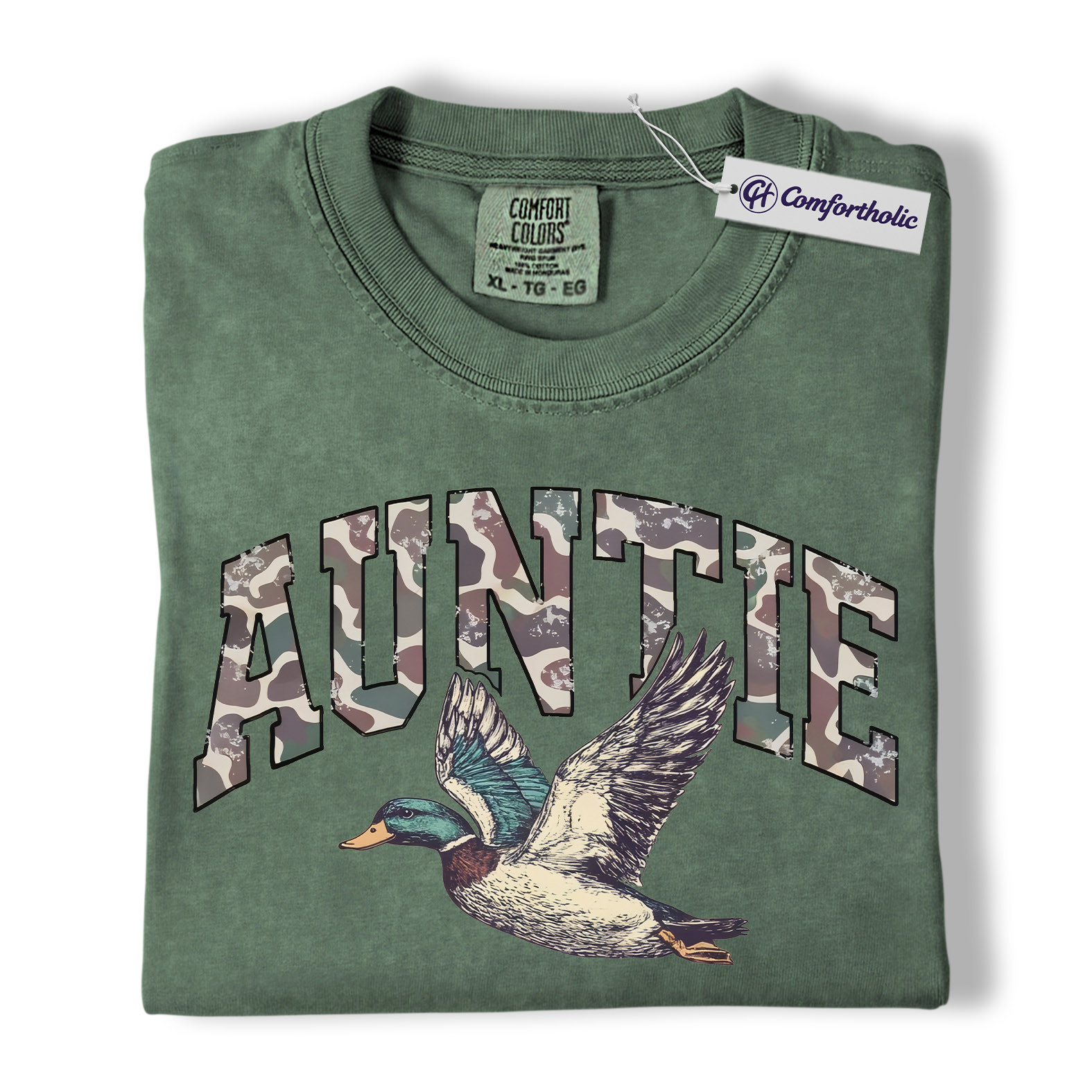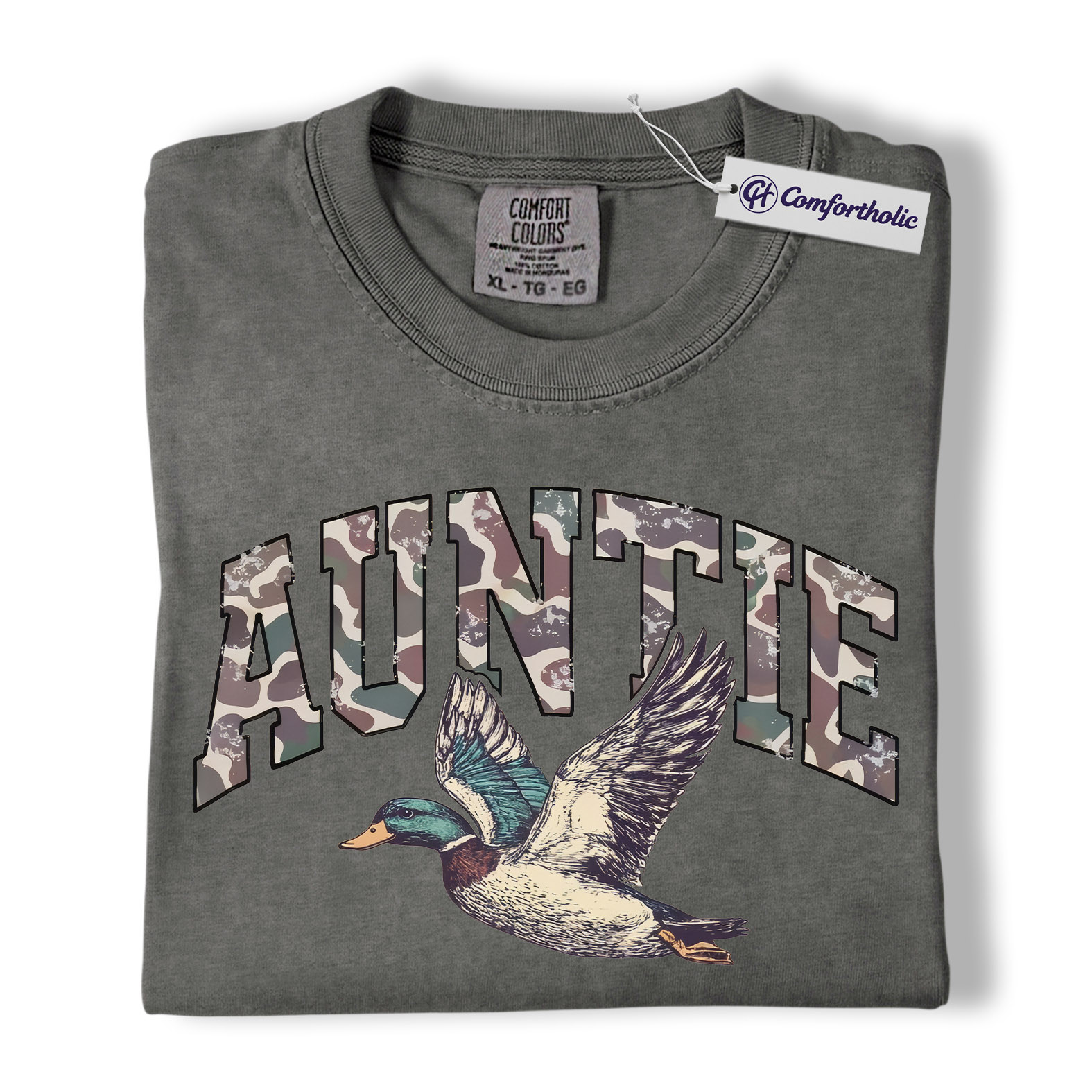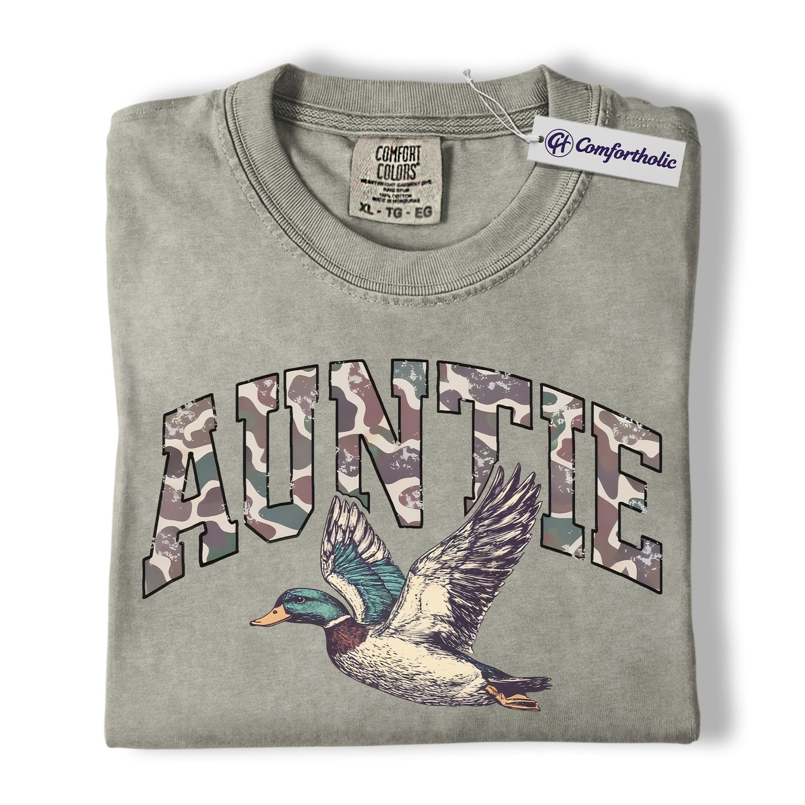 Duck Hunting Auntie Shirt, Camo AUNTIE Mallard Graphic Tee, Outdoors T-Shirt for Cool Aunts, Gift for Duck Hunters, Comfort Colors Shirt