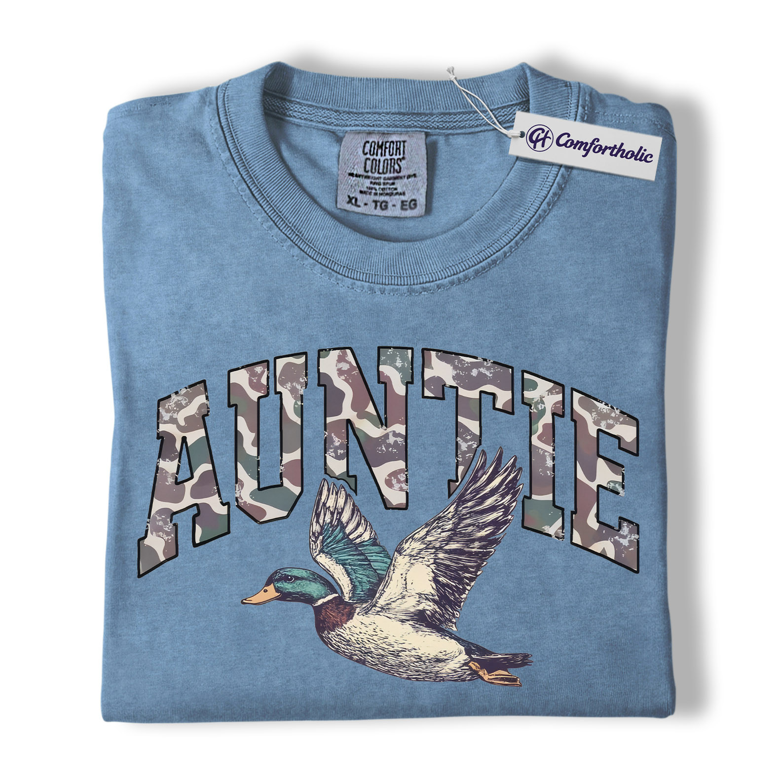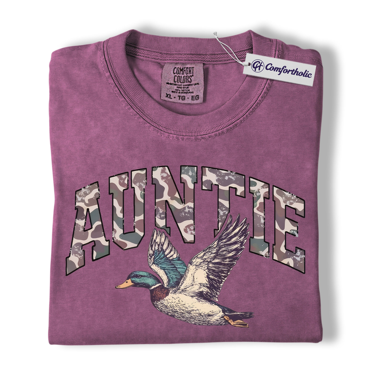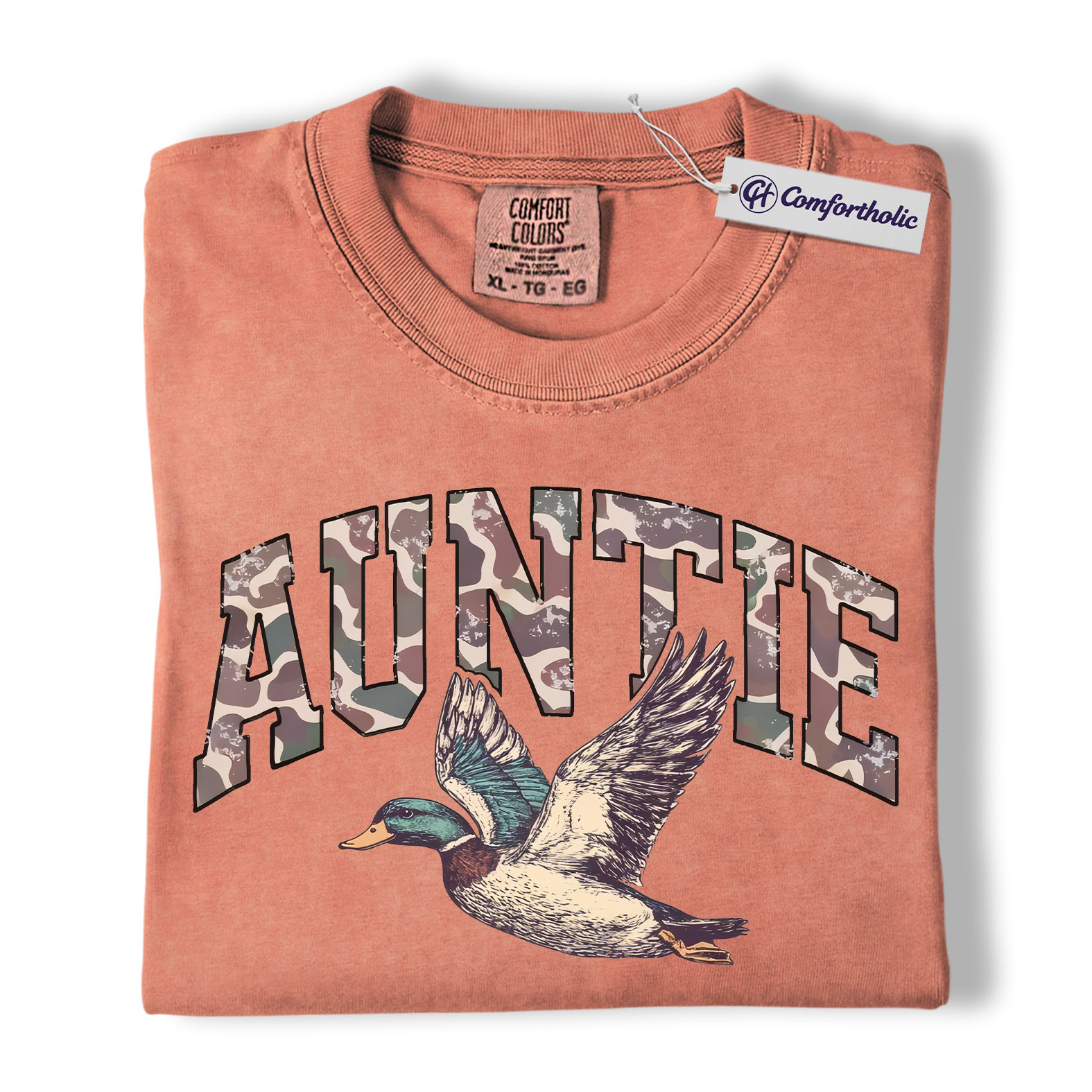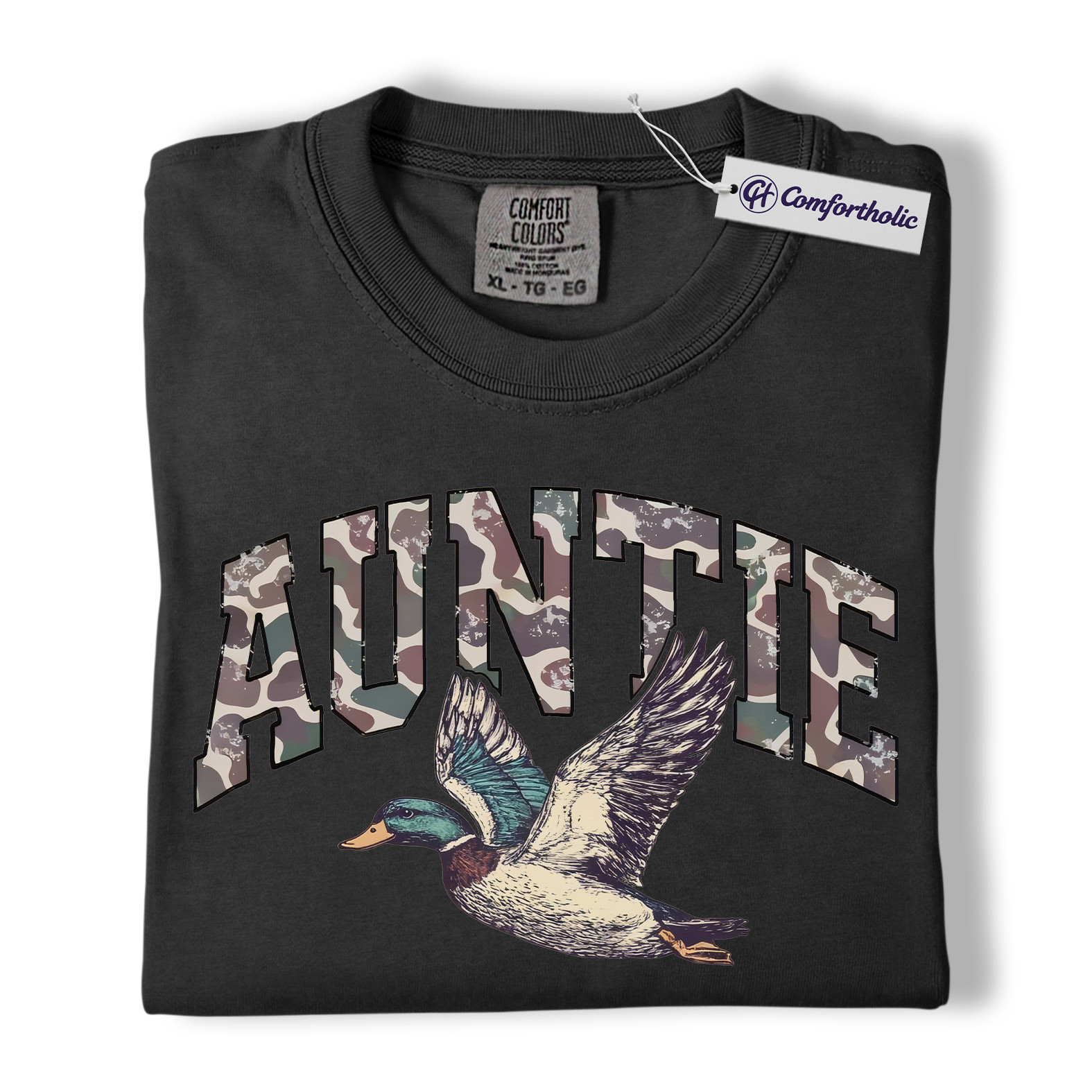 Duck Hunting Auntie Shirt, Camo AUNTIE Mallard Graphic Tee, Outdoors T-Shirt for Cool Aunts, Gift for Duck Hunters, Comfort Colors Shirt