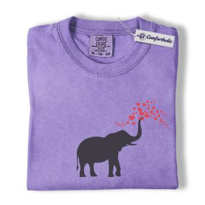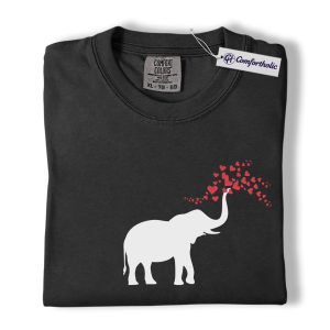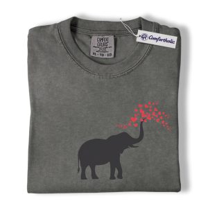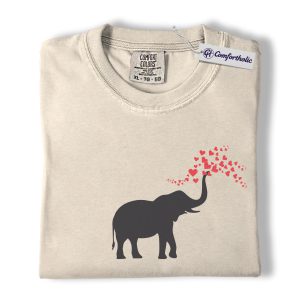 Elephant Valentine Shirt, Cute Heart Trunk Graphic Tee, Elephant Lover Valentine’s Day T-Shirt, Valentine Gift for Animal Lovers, Comfort Colors Shirt