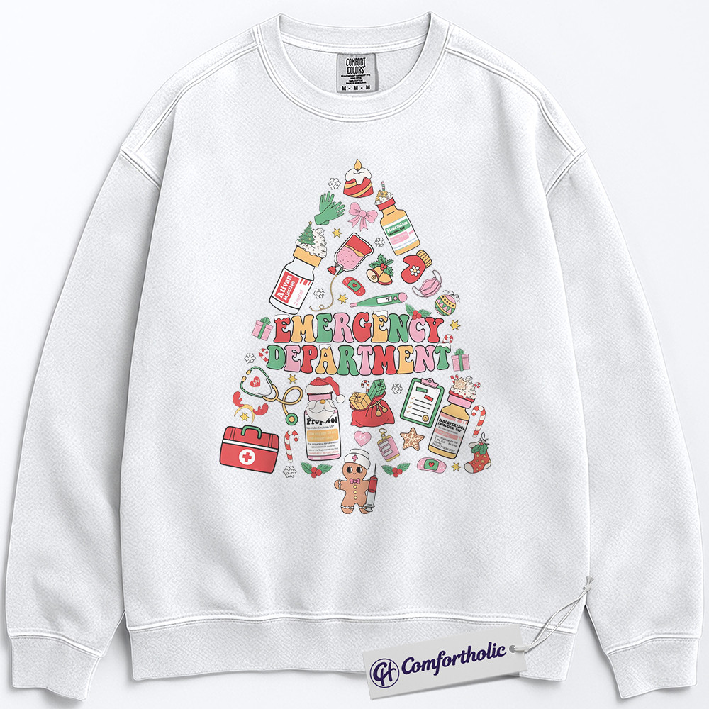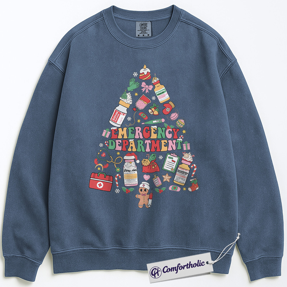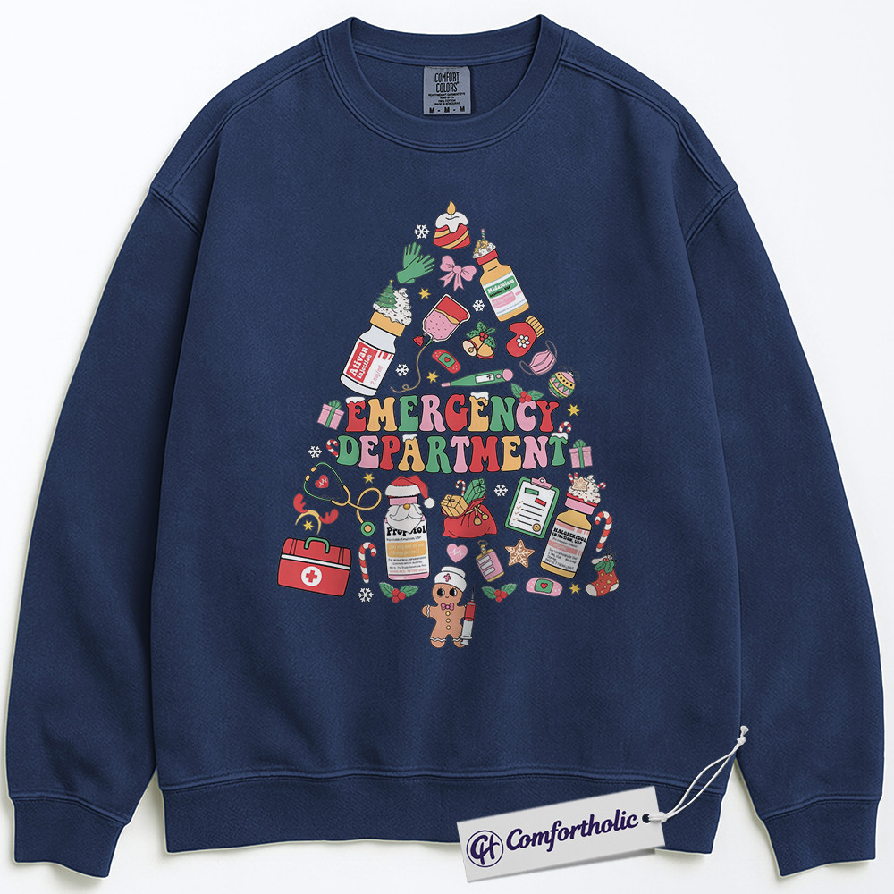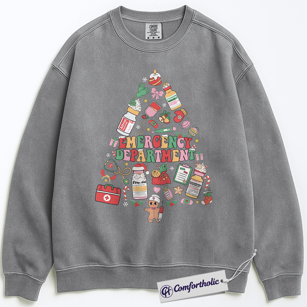 Emergency Department Christmas Sweatshirt, ER Nurse Holiday Pullover, Cute Medical Worker Graphic Sweatshirt, Christmas Gift for Nurses and Healthcare Professionals, Christmas Comfort Colors Sweatshirt