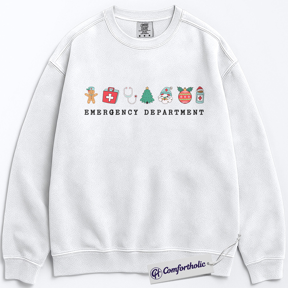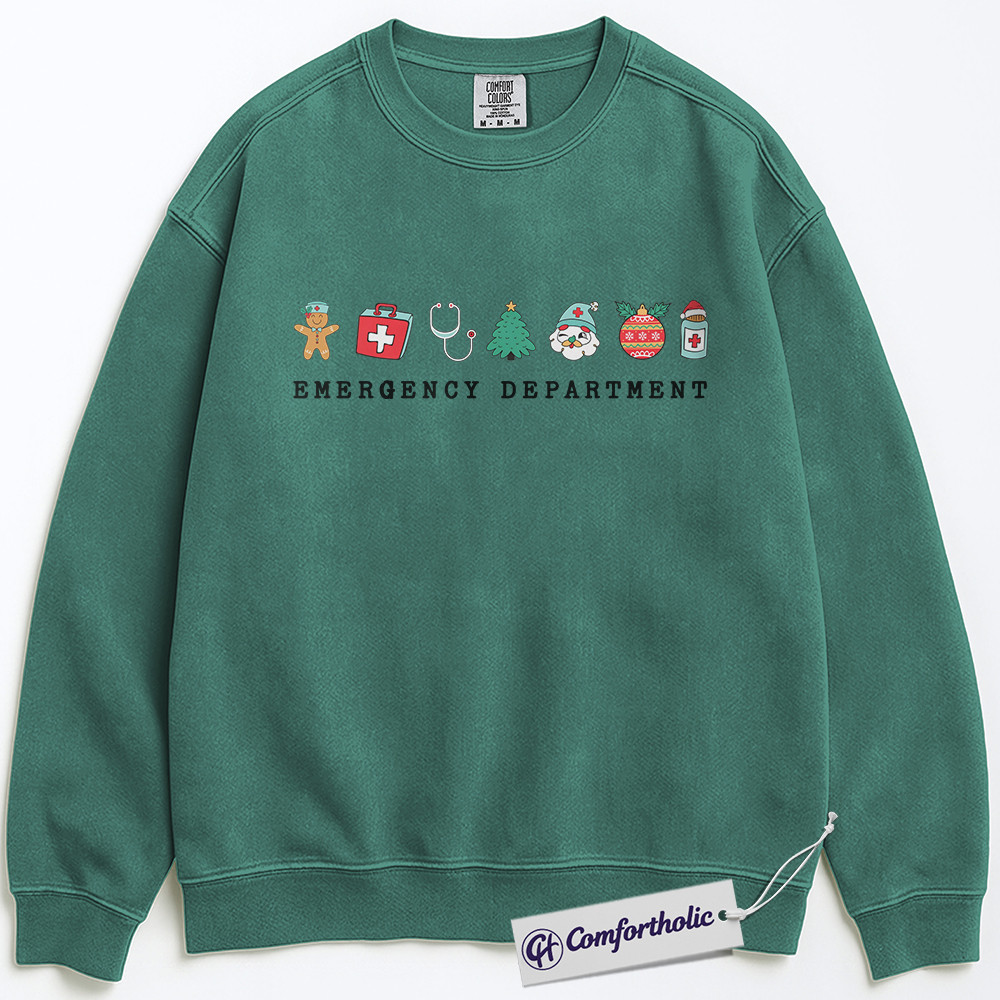 Emergency Department Christmas Sweatshirt, Funny ER Nurse Holiday Pullover, Medical Worker Festive Graphic Sweatshirt, Healthcare Gift for Nurses and Doctors, Christmas Comfort Colors Sweatshirt