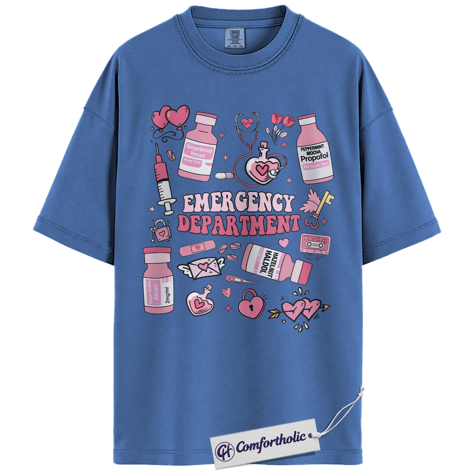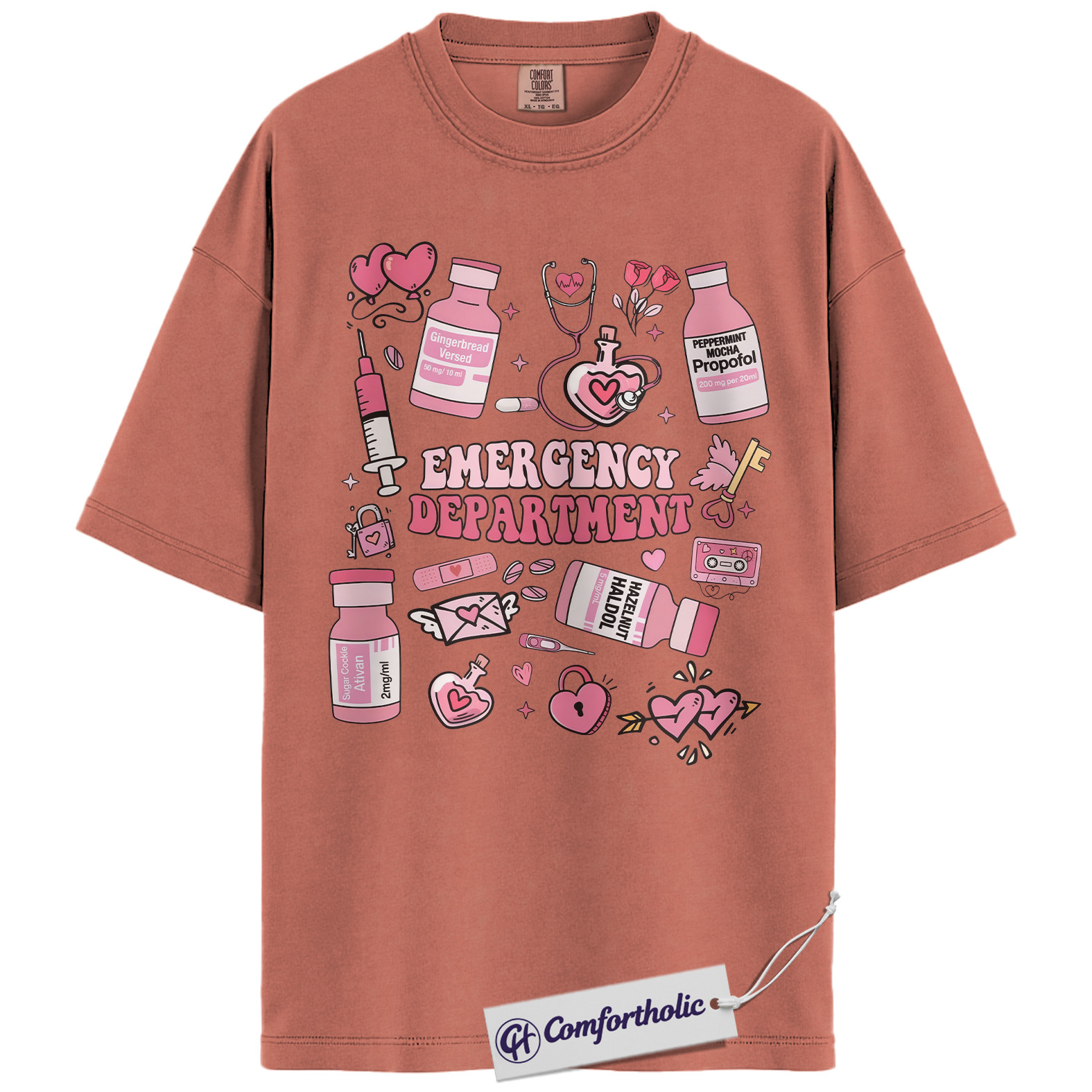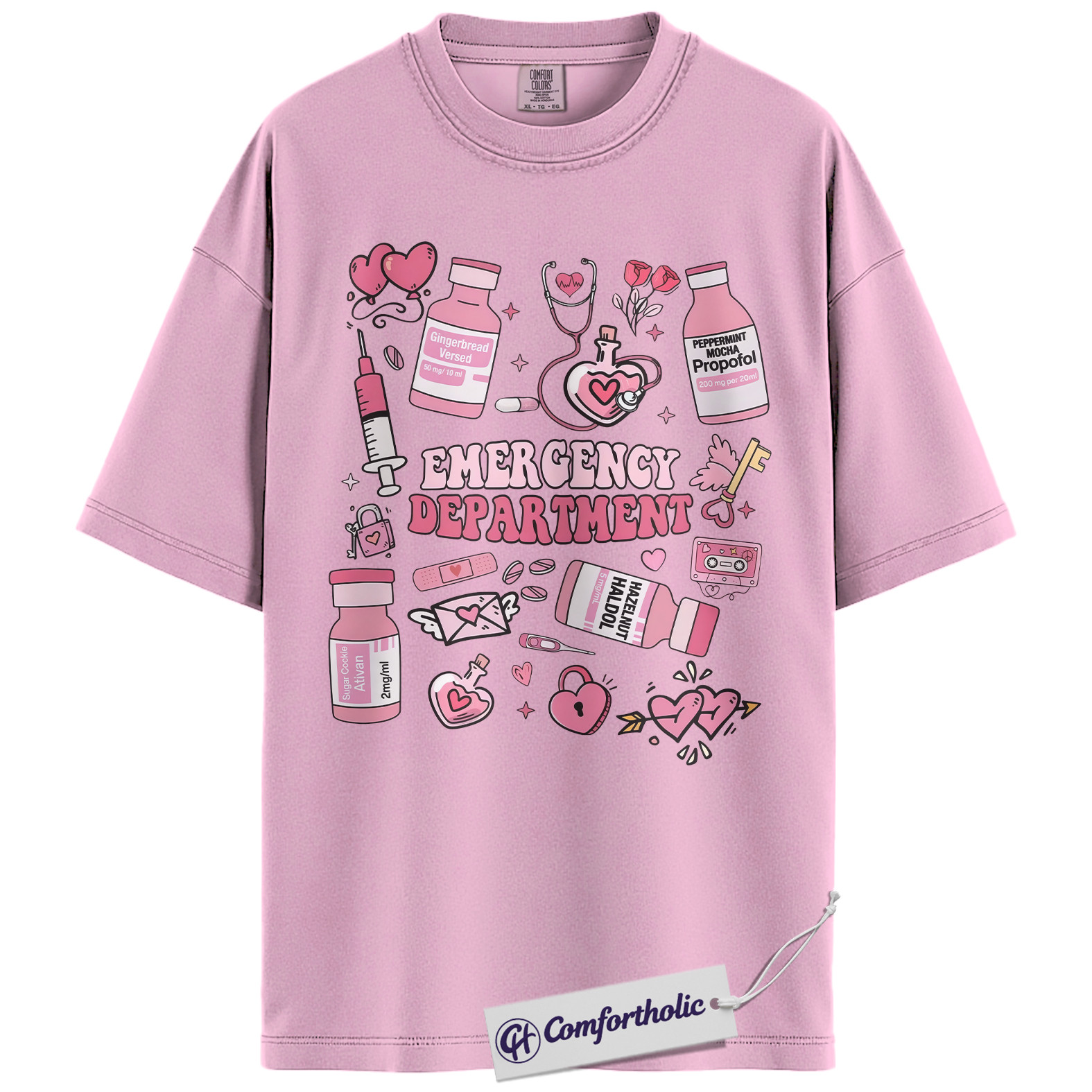 Emergency Department Shirt, Cute ER Nurse Valentine T-Shirt, Medical Doodle Graphic Tee, Sweet Gift for Healthcare Workers and Trauma Nurses, Comfort Colors Shirt