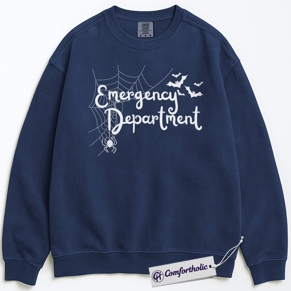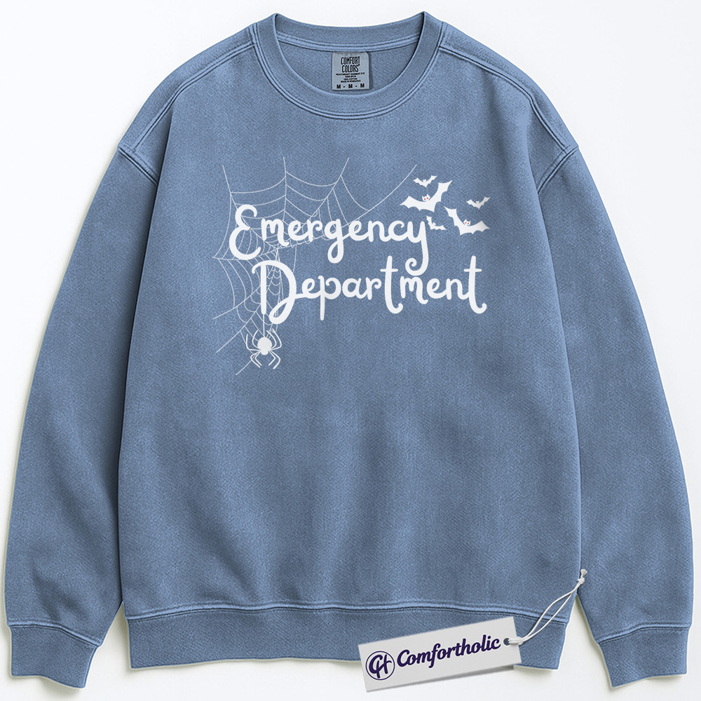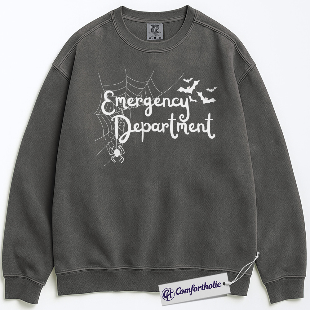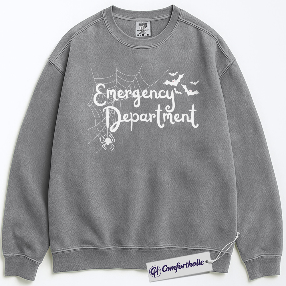 Emergency Department Sweatshirt, Halloween ER Nurse Crewneck, Spooky Medical Spider Web Pullover, Cute Healthcare Worker Gift, Comfort Colors Sweatshirt