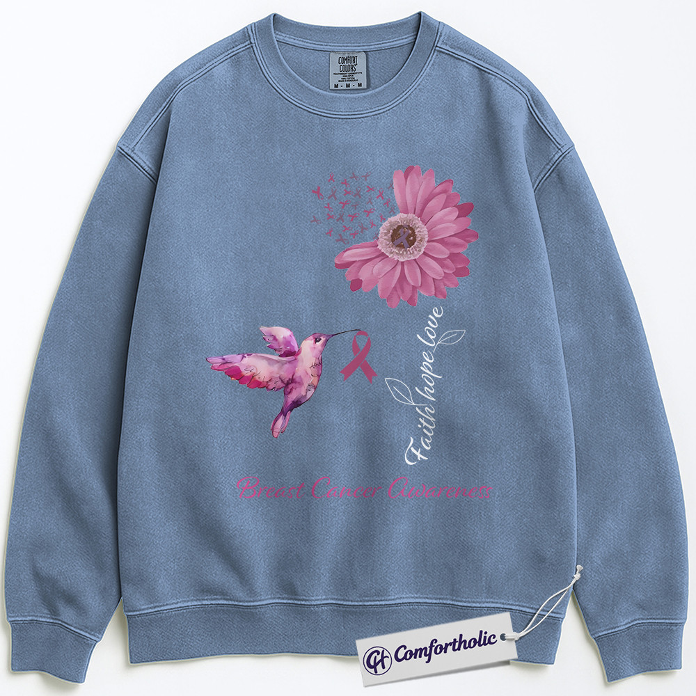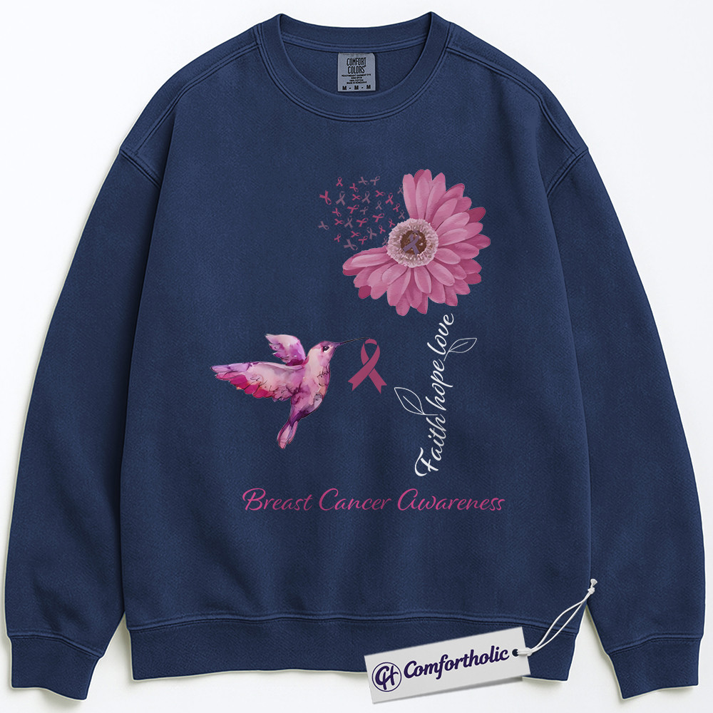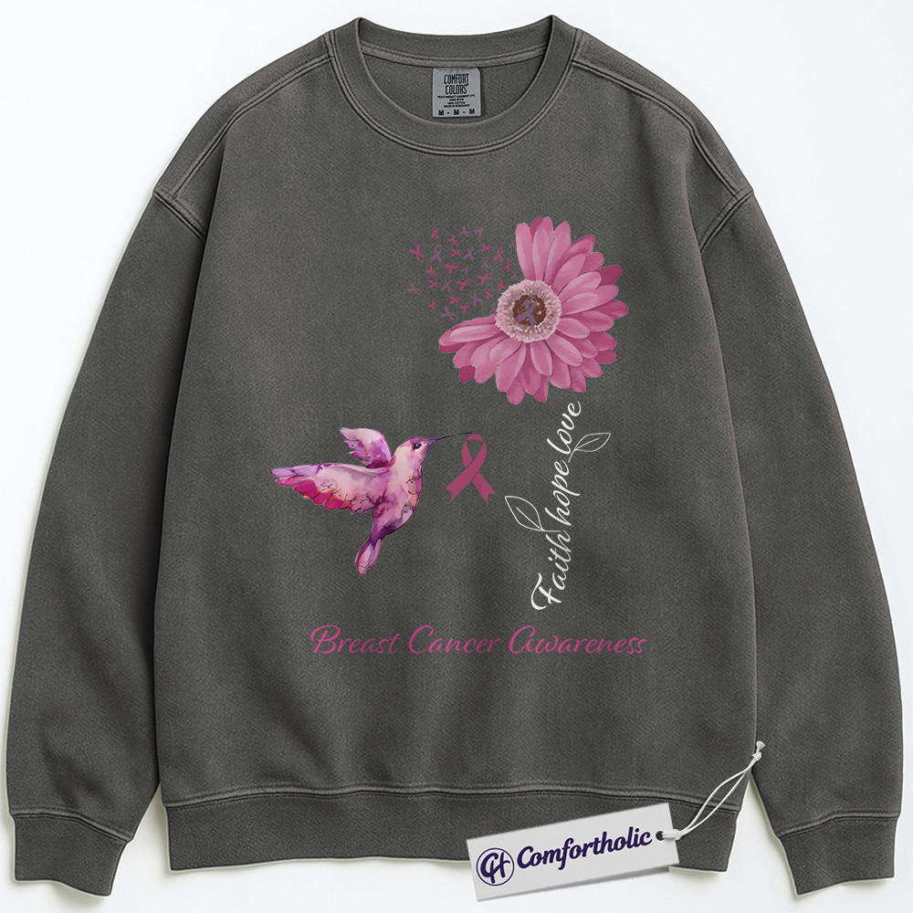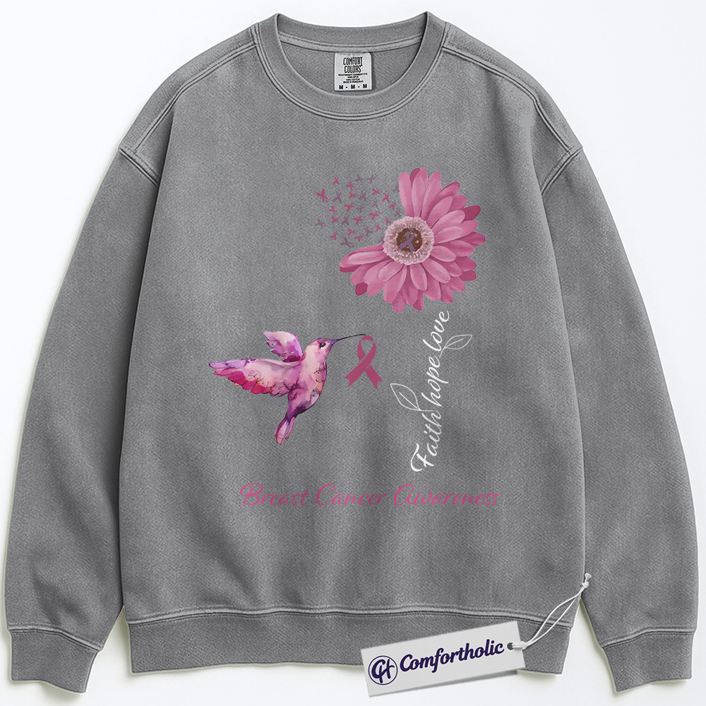 Faith Hope Love Breast Cancer Awareness Sweatshirt, Pink Ribbon Floral Crewneck, Christian Hummingbird Pullover for Women, October Support Gift, Comfort Colors Sweatshirt