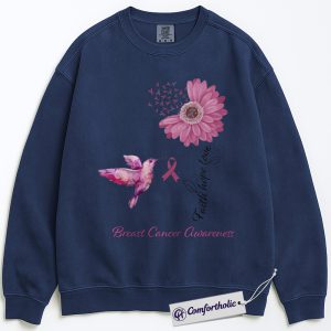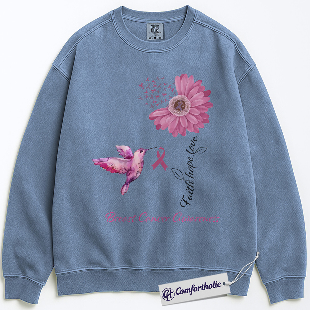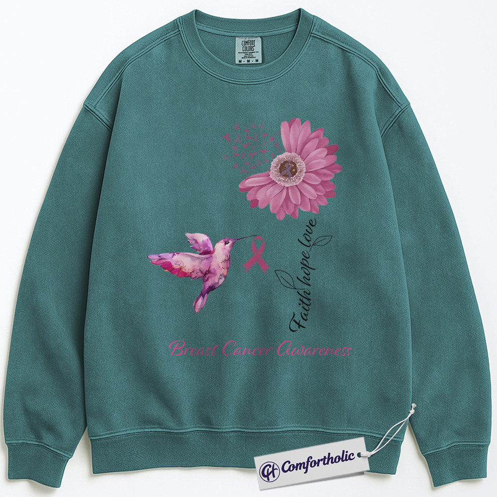 Faith Hope Love Breast Cancer Awareness Sweatshirt, Pink Ribbon Hummingbird Pullover, Floral Christian Support Crewneck for Women, October Cancer Awareness Gift, Comfort Colors Sweatshirt