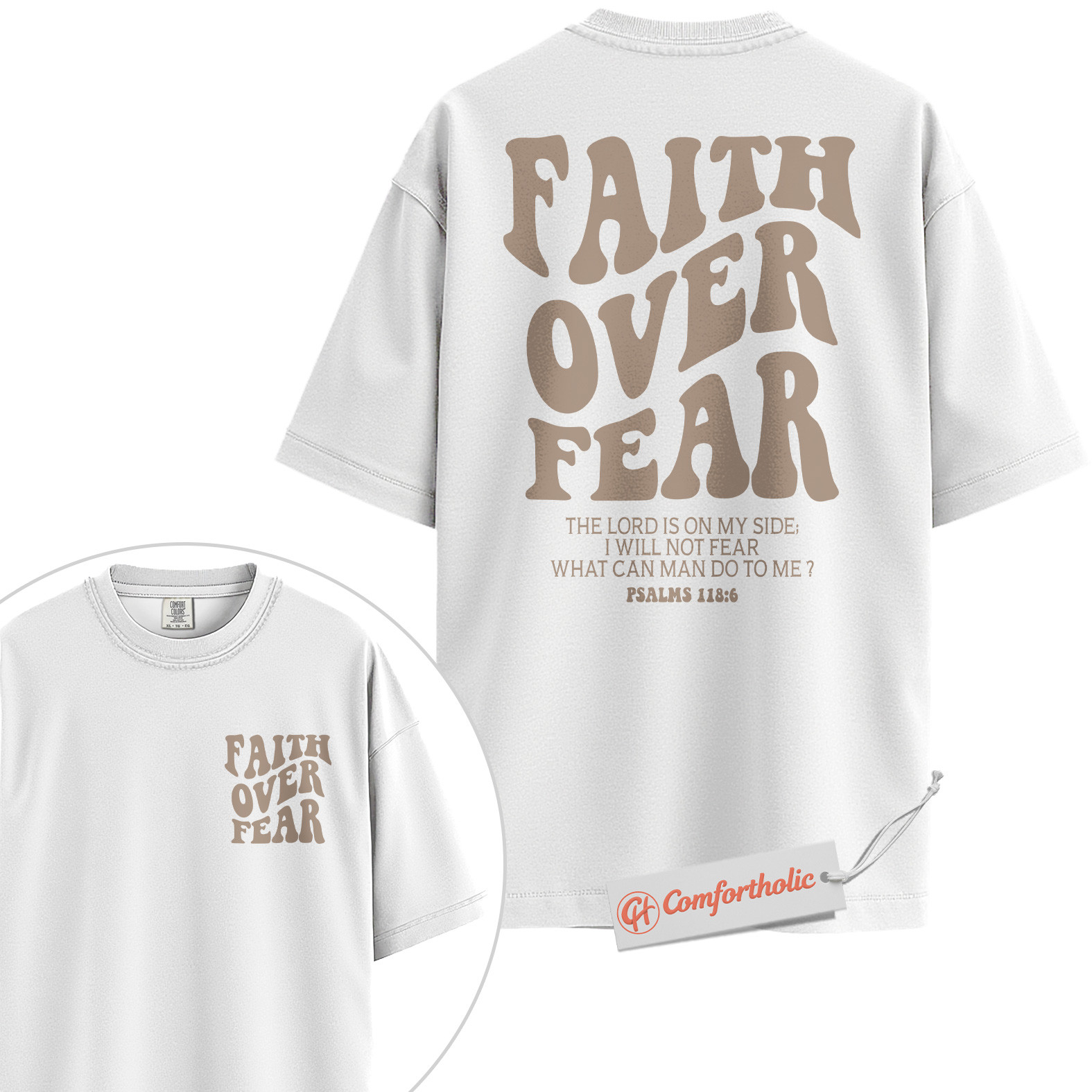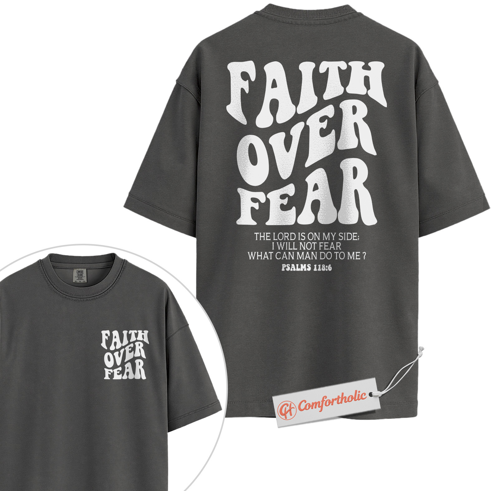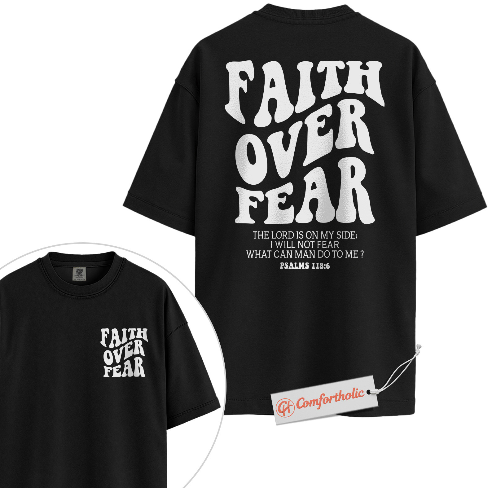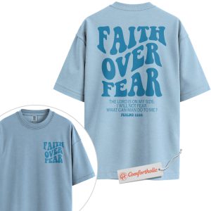 Faith Over Fear Shirt, Christian Bible Verse T-Shirt, Psalms 118:6 Scripture Tee, Religious Comfort Colors Shirt 2-Sided