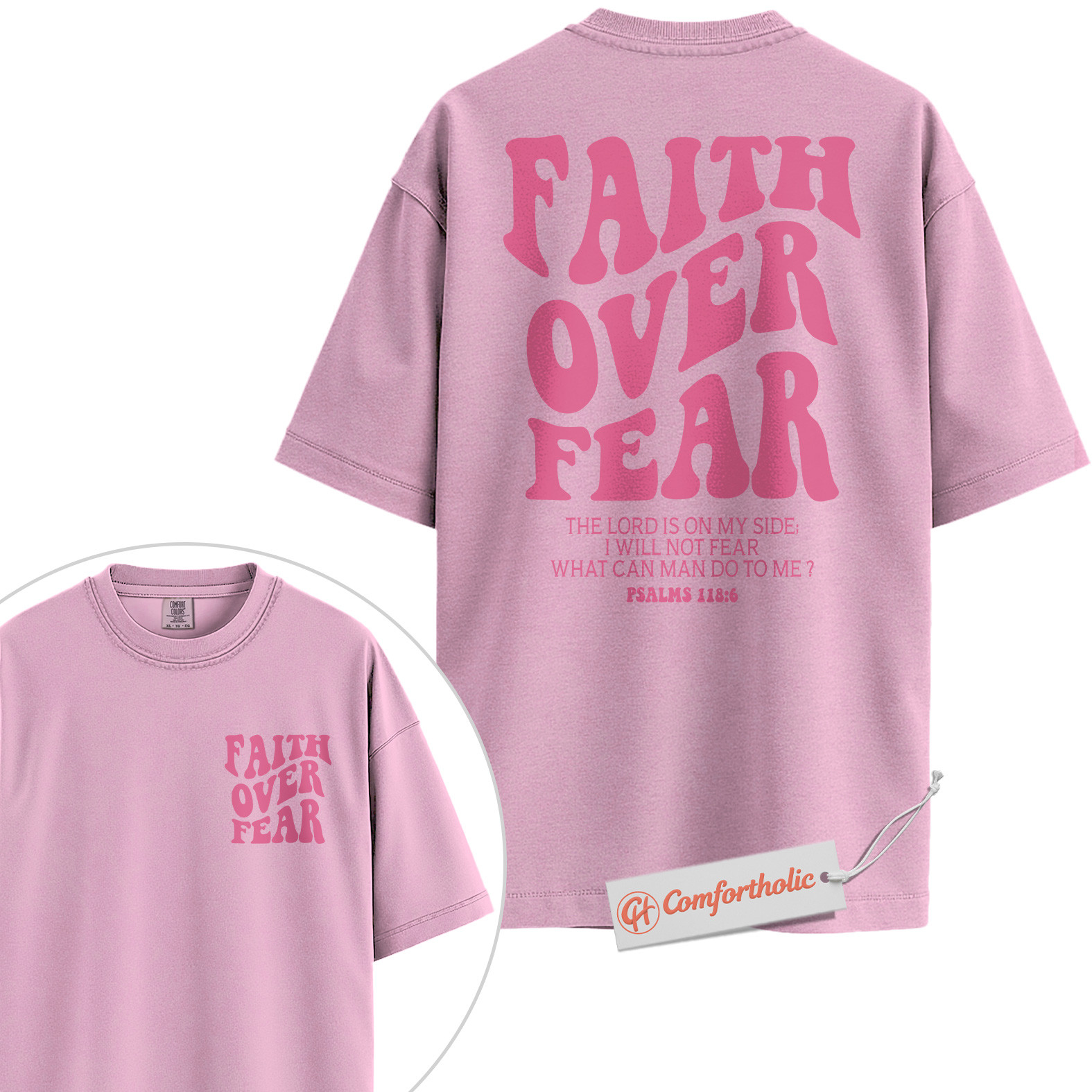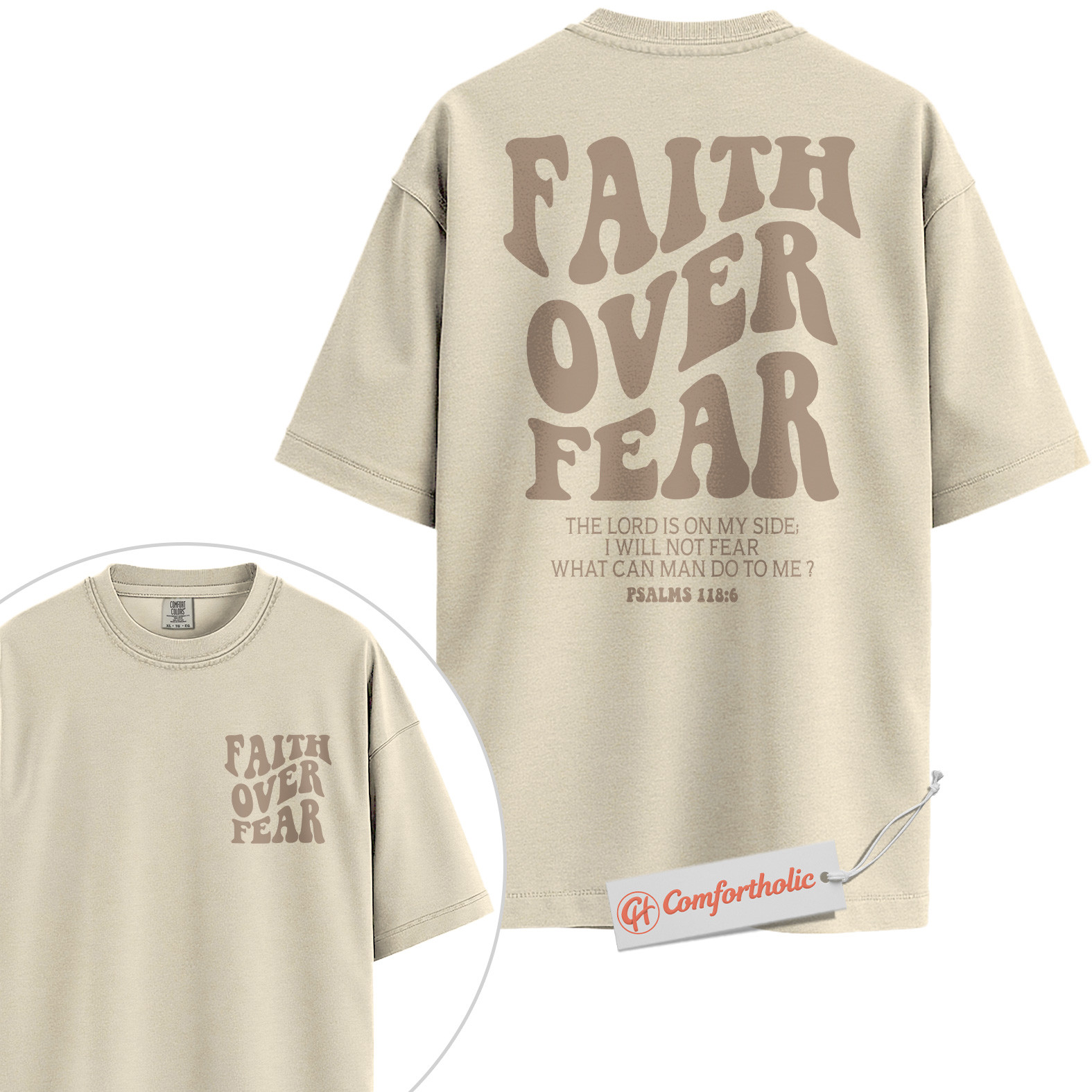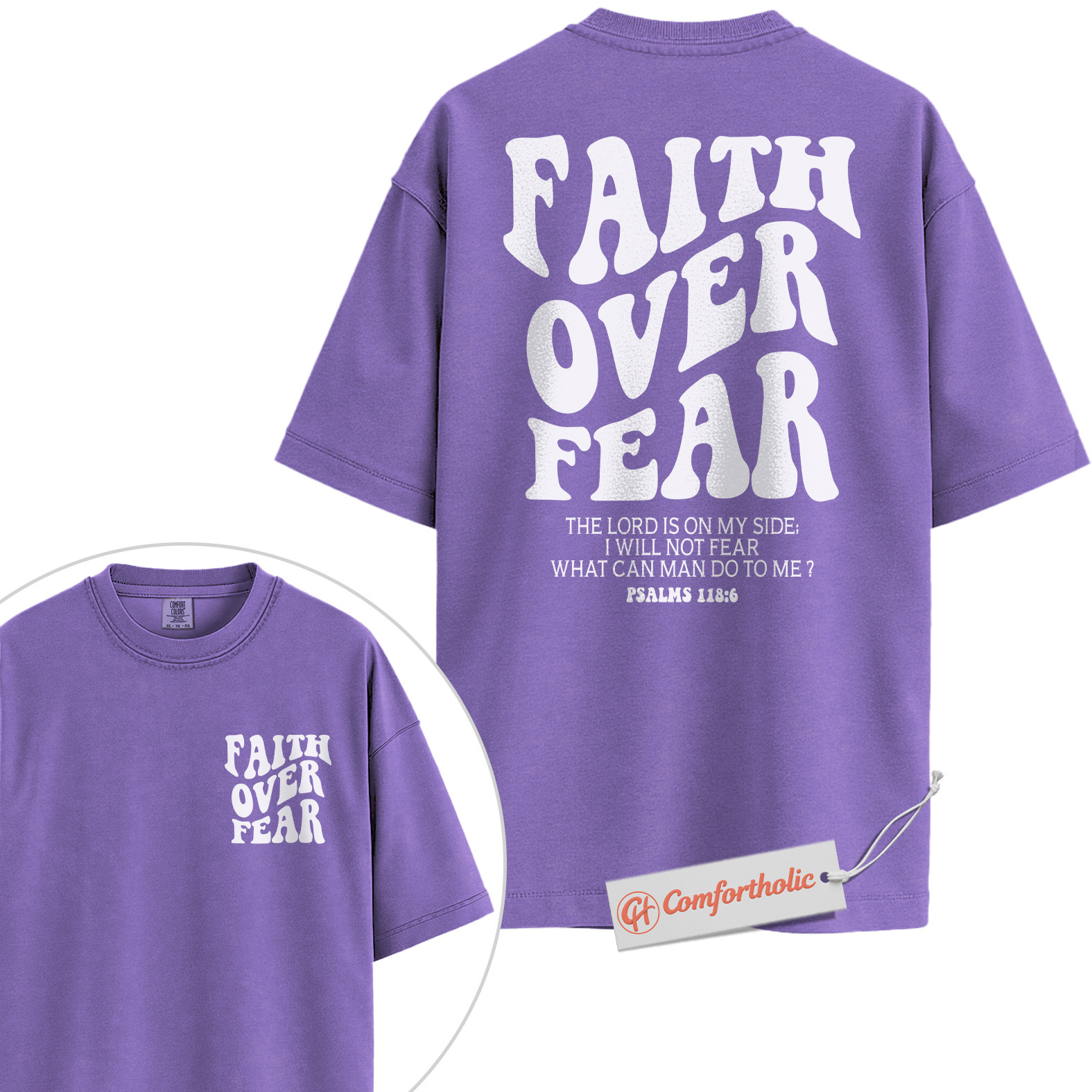 Faith Over Fear Shirt, Christian Bible Verse T-Shirt, Psalms 118:6 Scripture Tee, Religious Comfort Colors Shirt 2-Sided