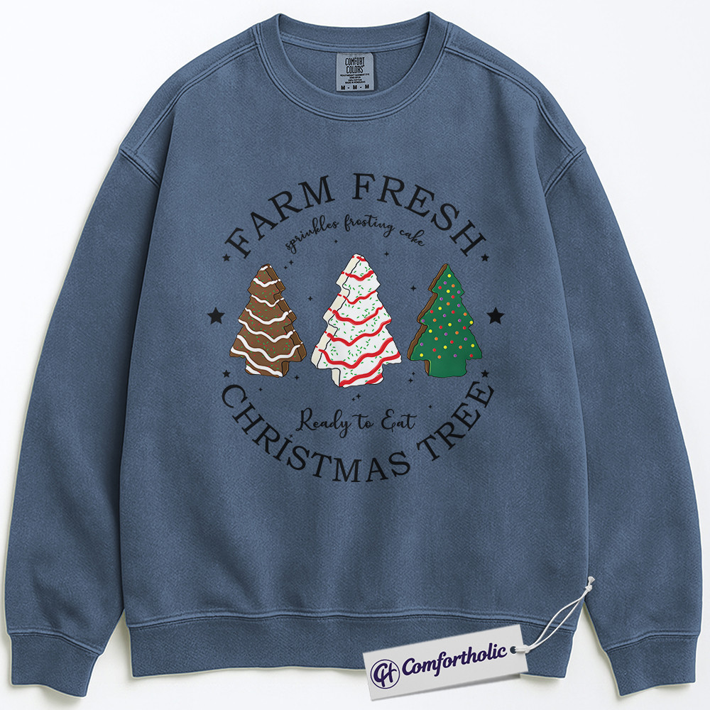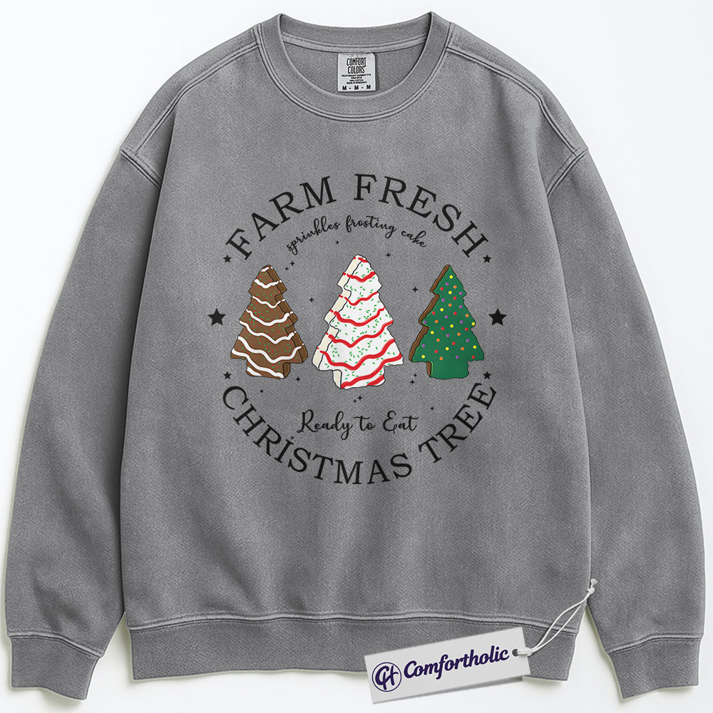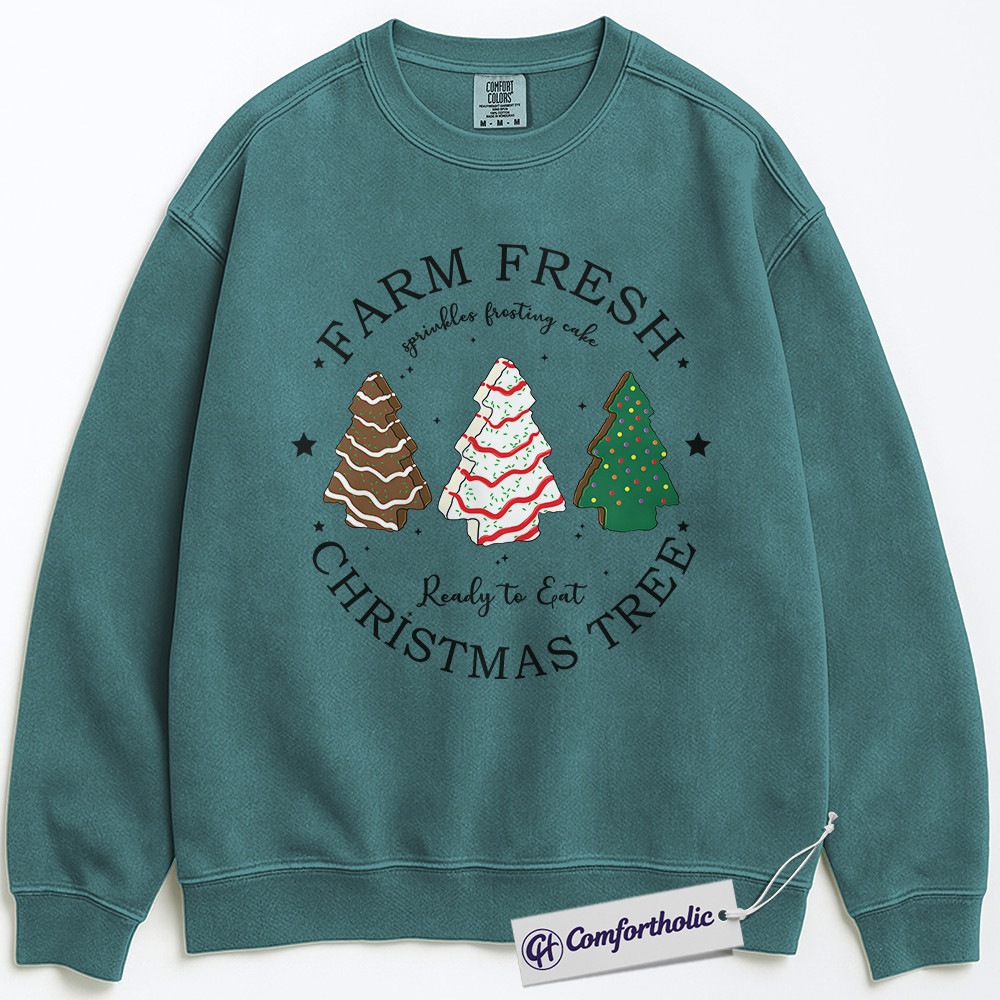 Farm Fresh Christmas Tree Sweatshirt, Cute Holiday Dessert Crewneck, Funny Frosted Cake Tree Graphic Pullover, Sweet Foodie Gift for Christmas, Christmas Comfort Colors Sweatshirt