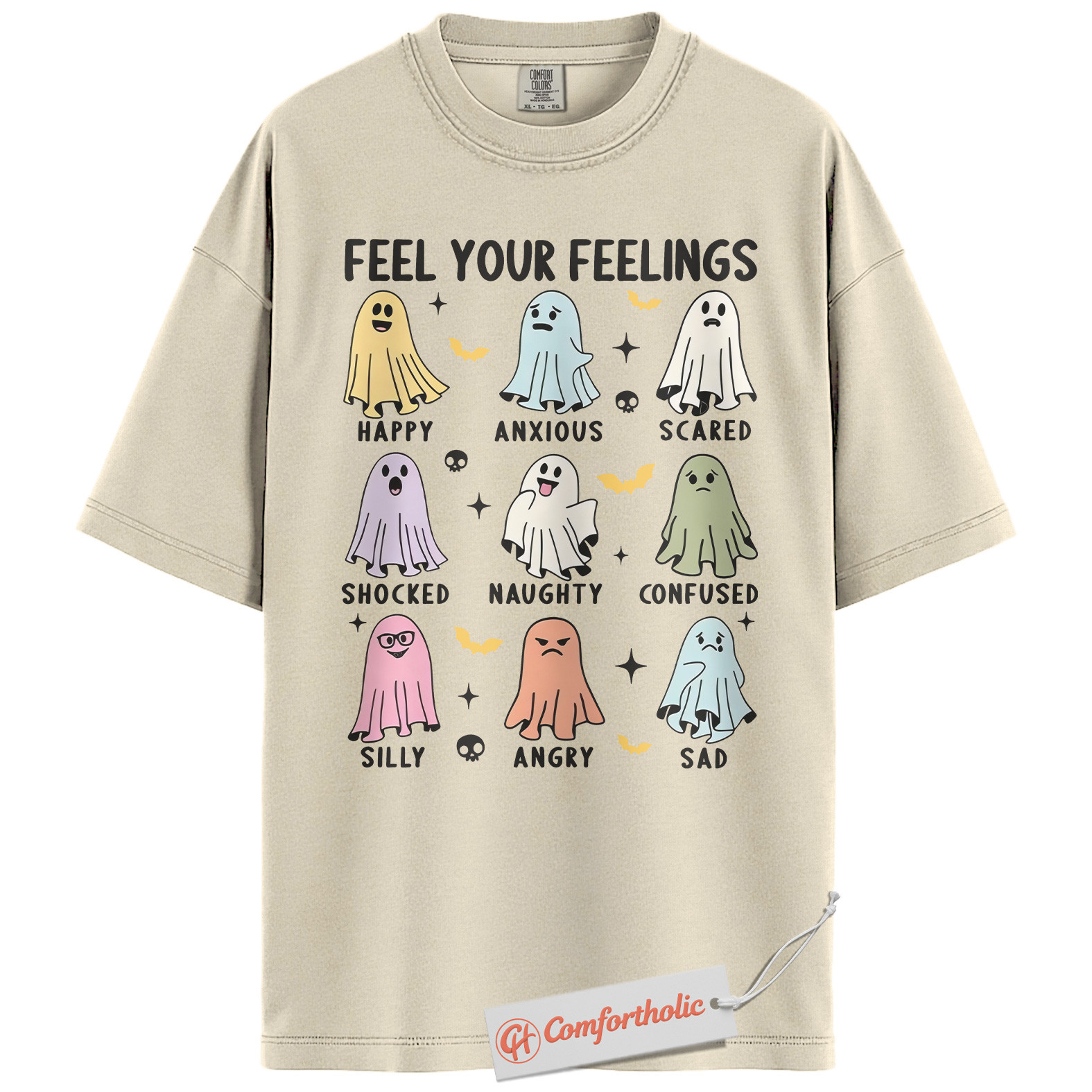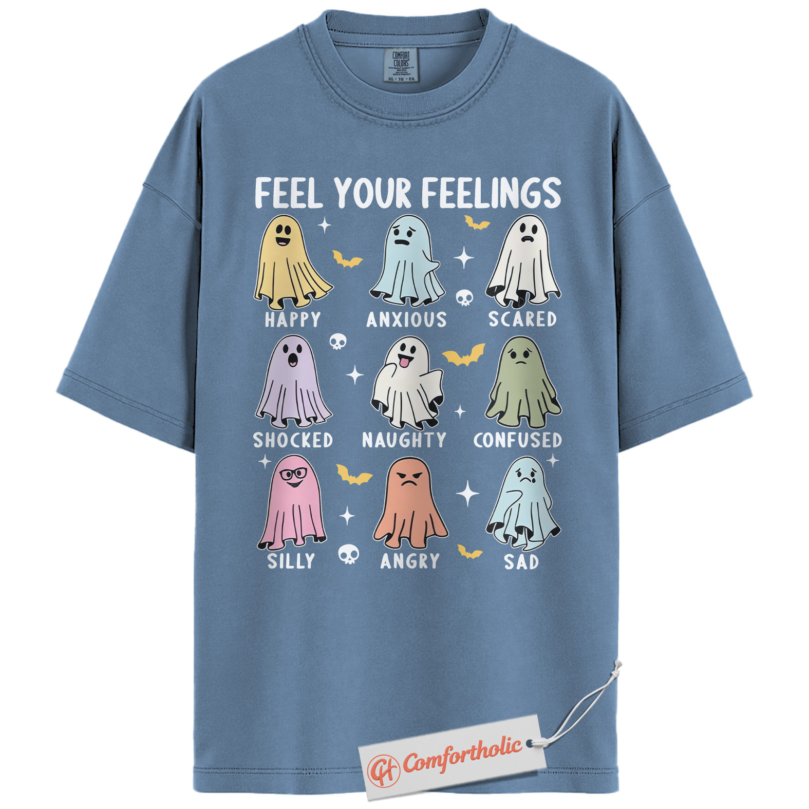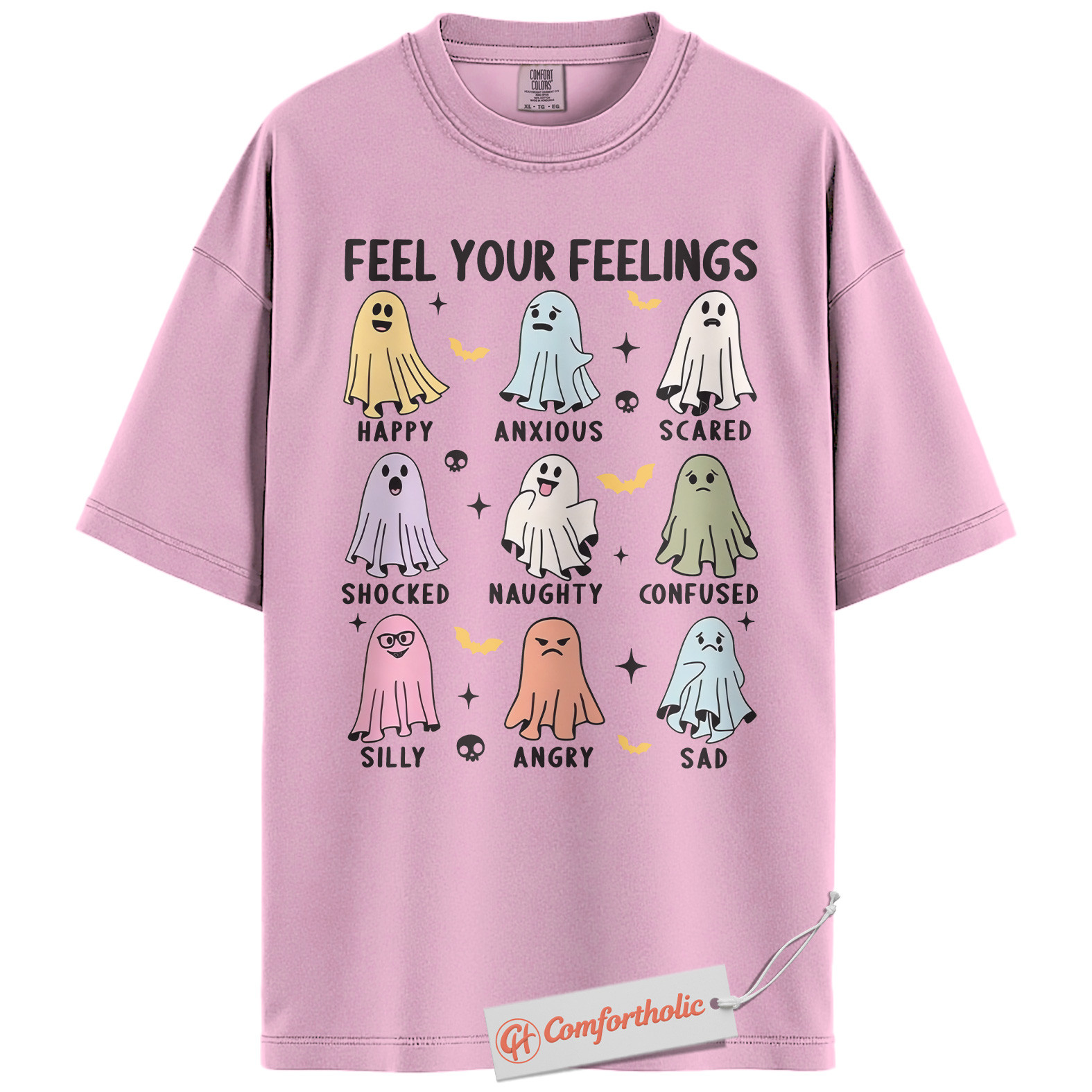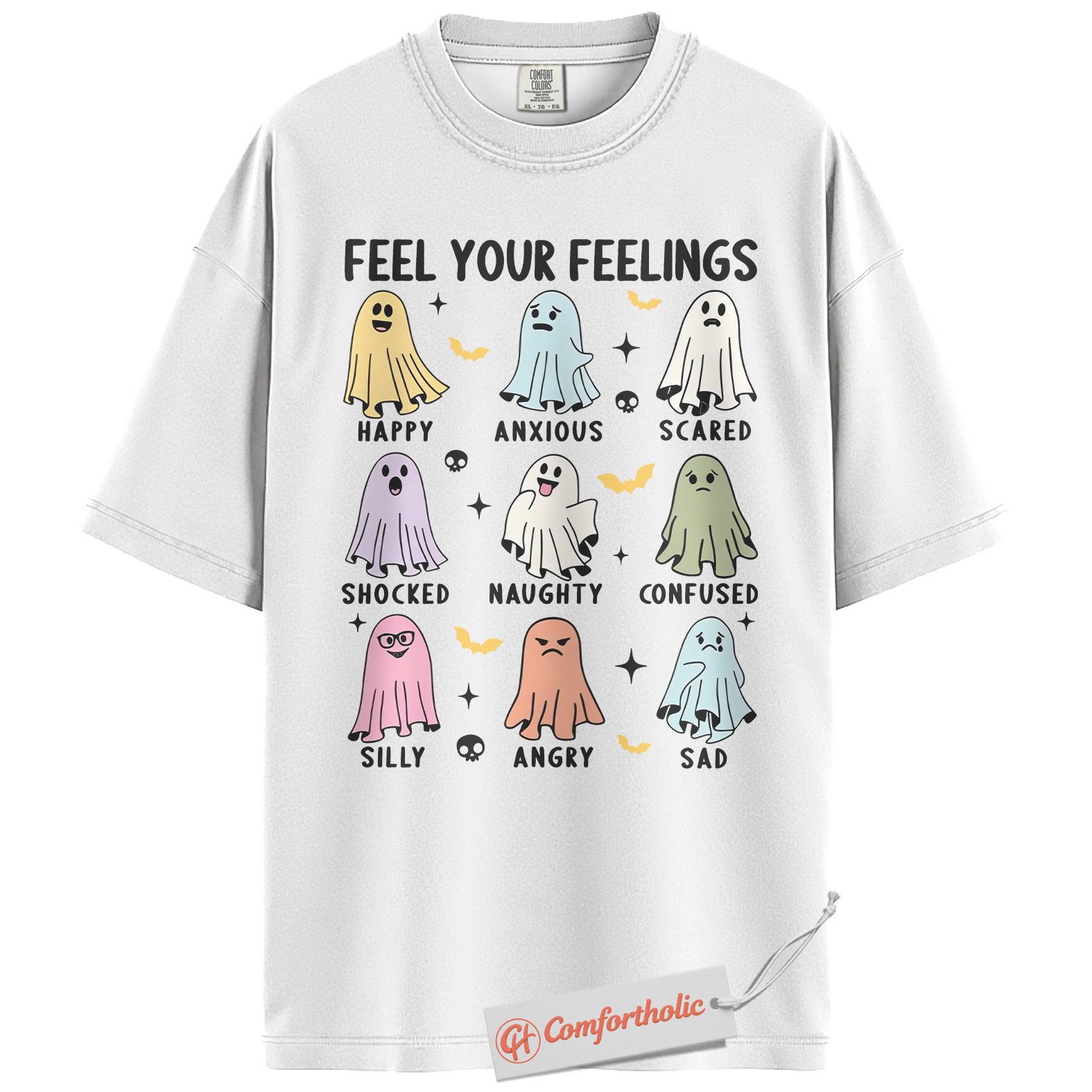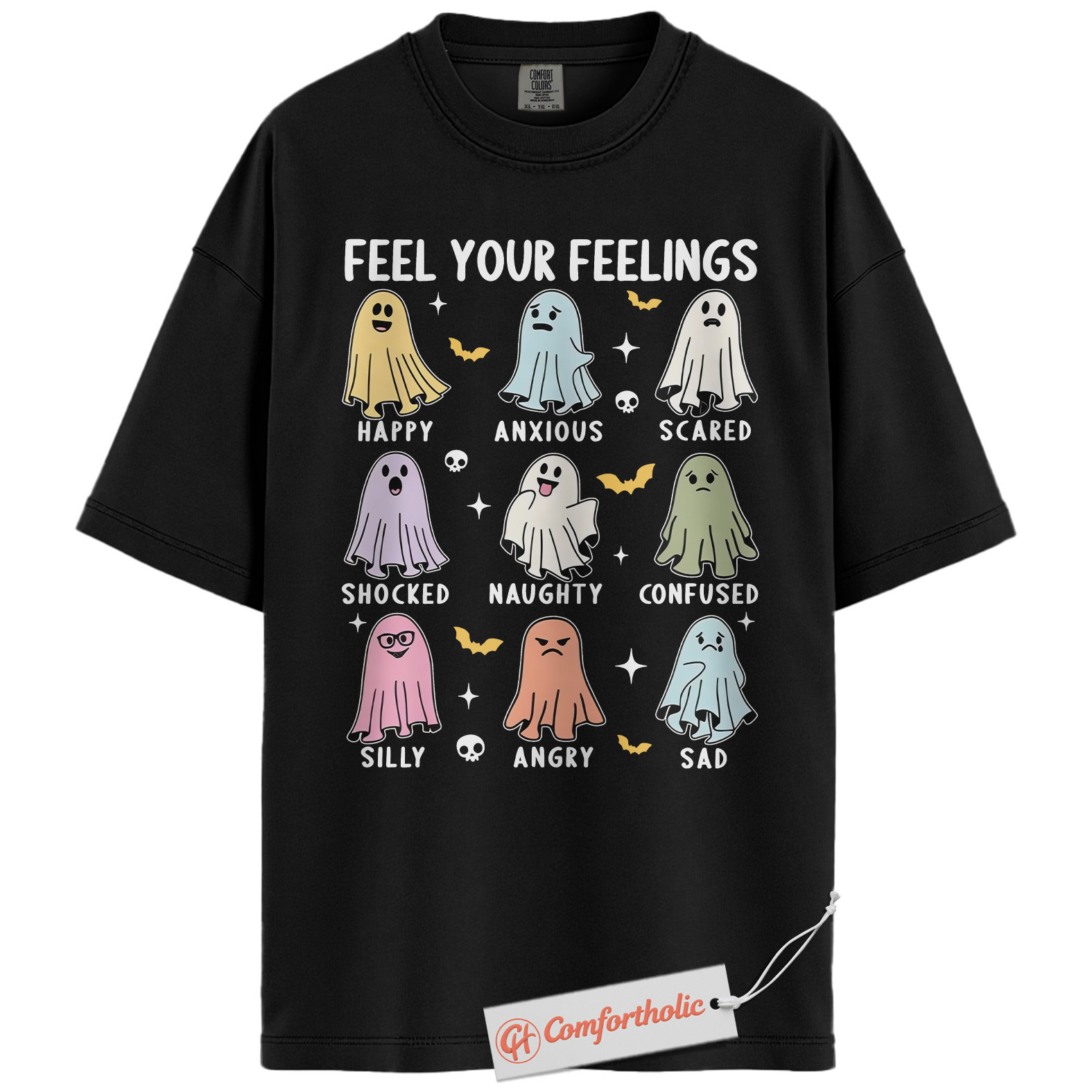 Feel Your Feelings Shirt, Halloween Ghost Emotions Tee, Self-Care Graphic T-Shirt, Mental Health Comfort Colors Shirt