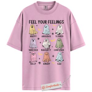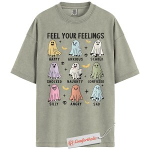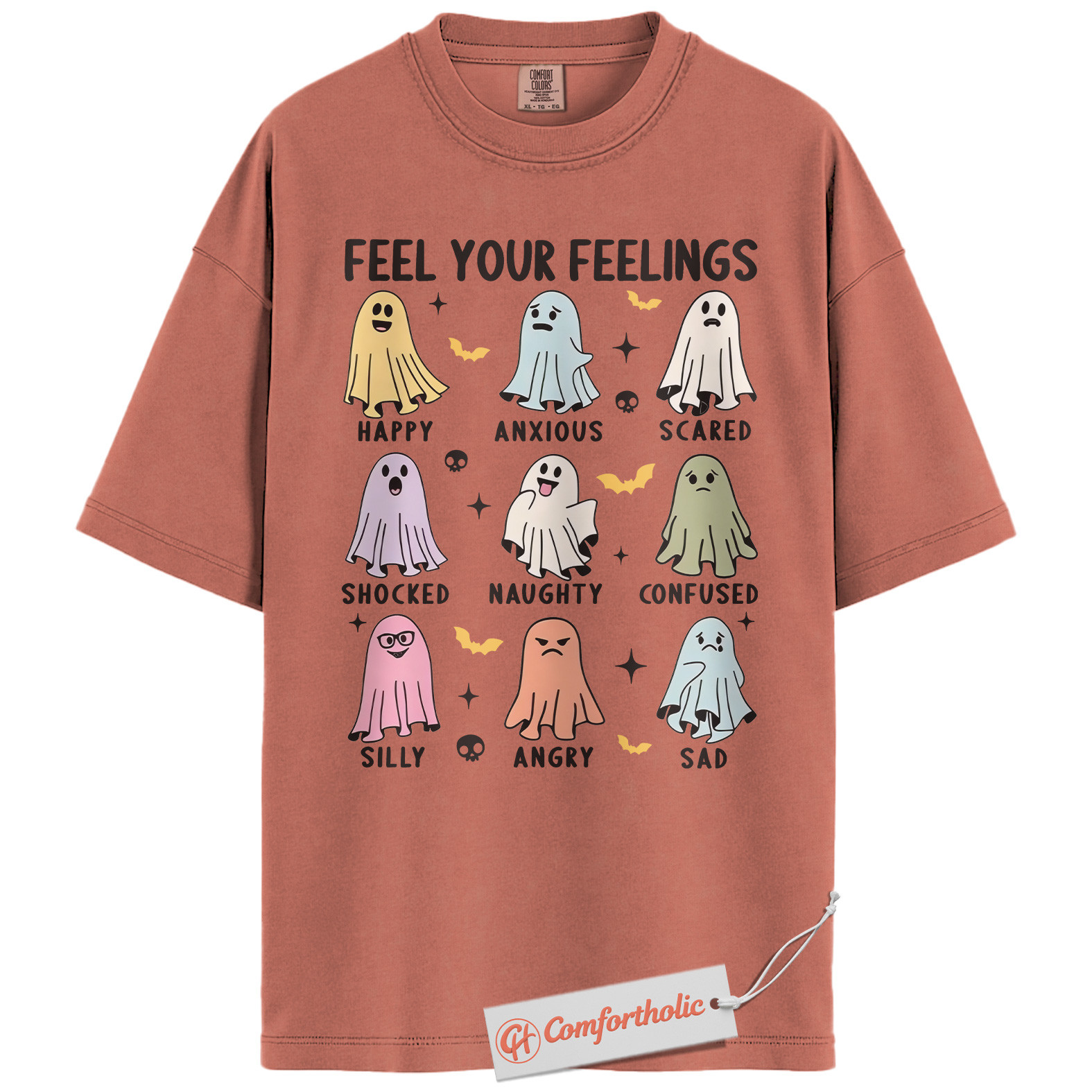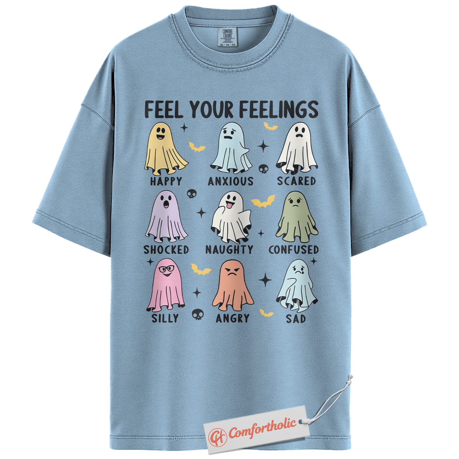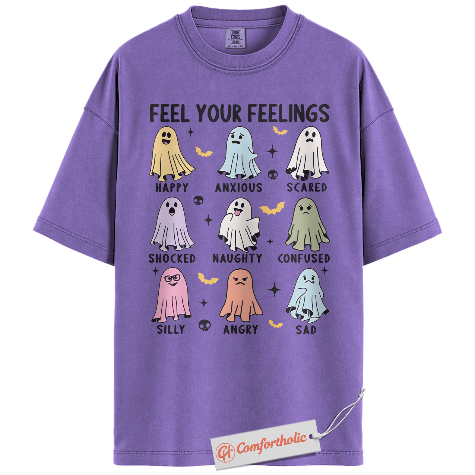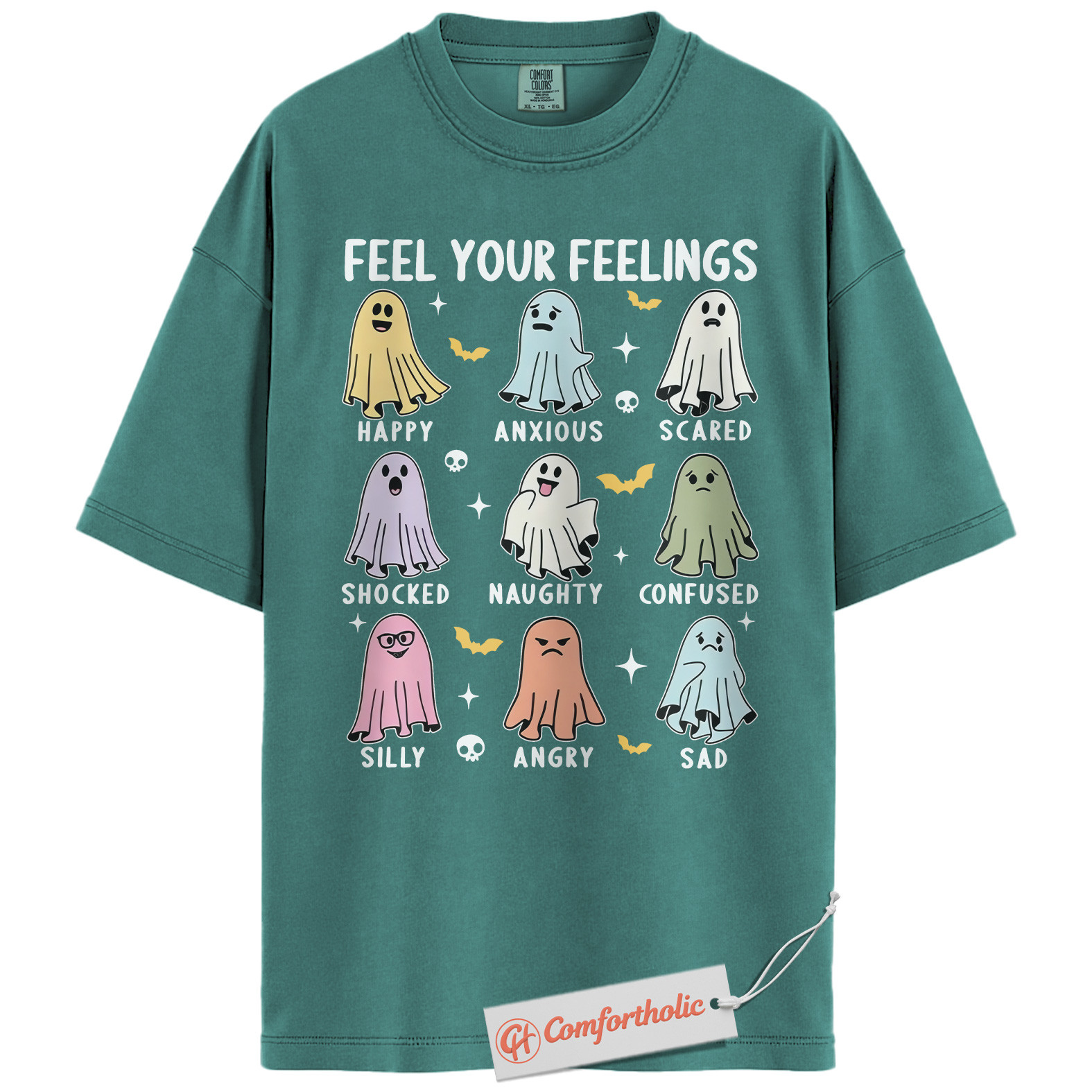 Feel Your Feelings Shirt, Halloween Ghost Emotions Tee, Self-Care Graphic T-Shirt, Mental Health Comfort Colors Shirt