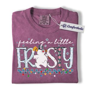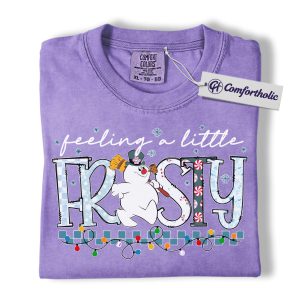 Feeling a Little Frosty Shirt, Cute Snowman Christmas T-Shirt, Funny Holiday Graphic Tee, Winter Festive Gift for Women, Christmas Comfort Colors Shirt