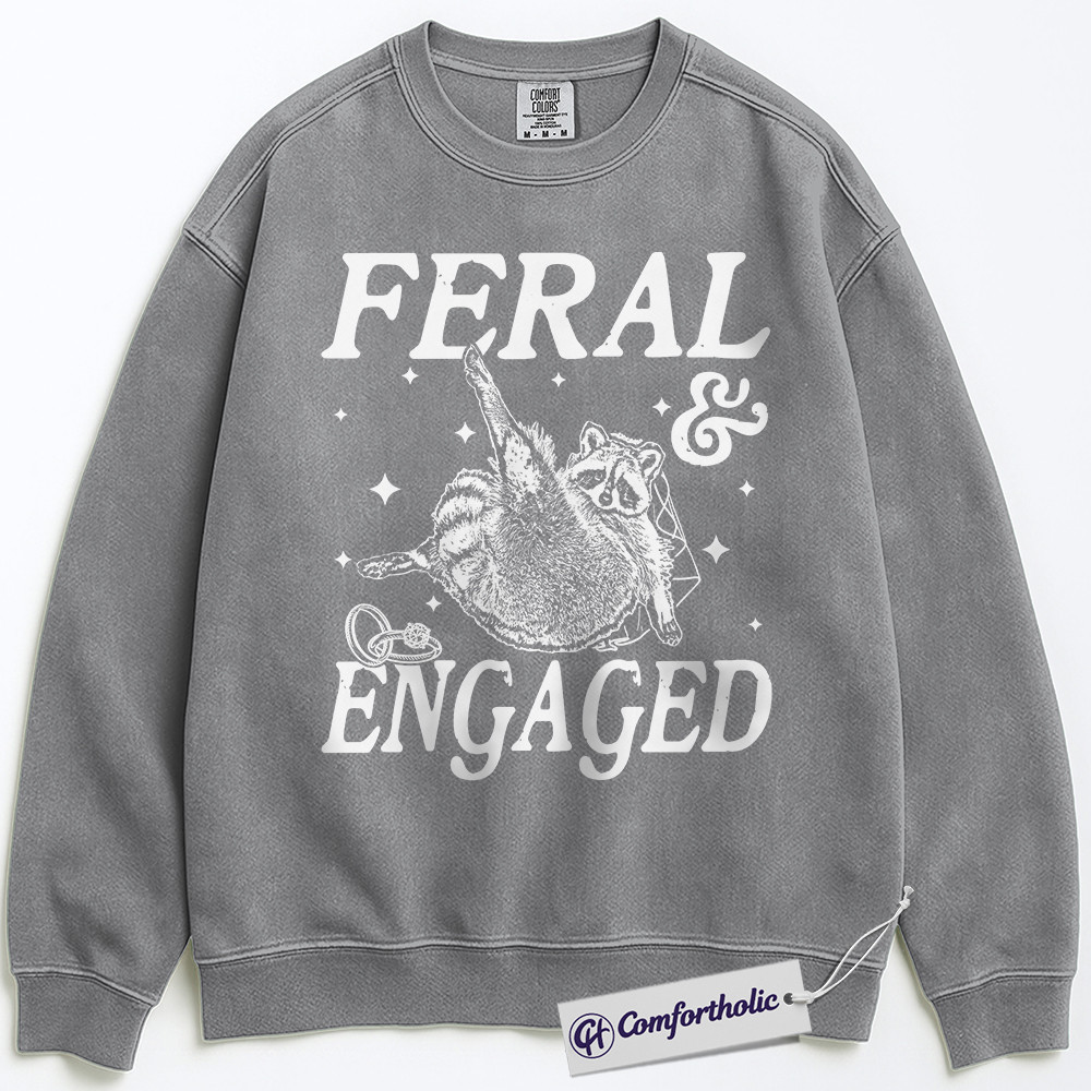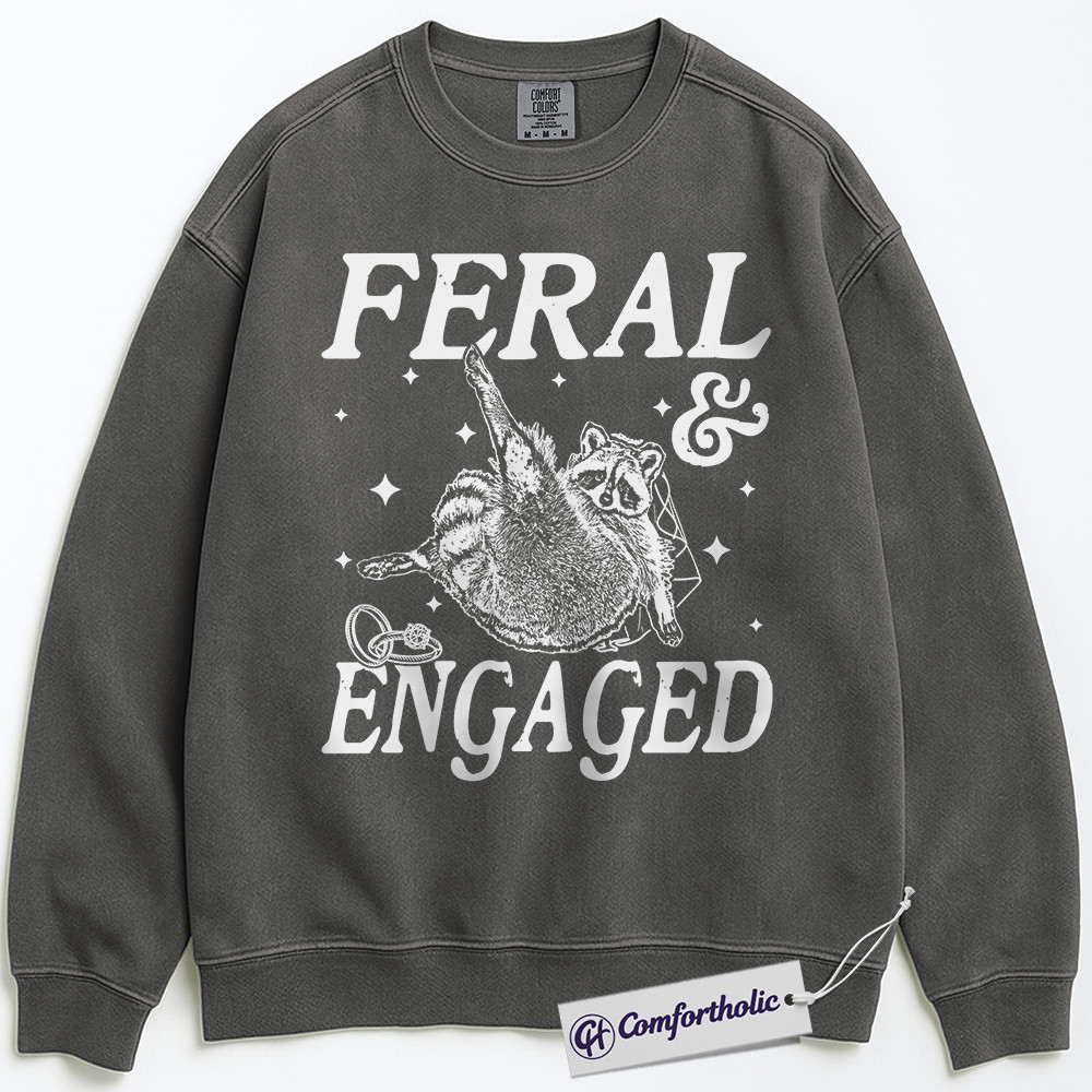 Feral and Engaged Sweatshirt, Cute Raccoon Engagement Crewneck, Funny Bride to Be Pullover, Bachelorette Party Gift for Animal Lovers, Comfort Colors Sweatshirt