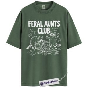 Feral Aunts Club Shirt, Funny Raccoon Chaos Graphic Tee, Chaotic Auntie T-Shirt, Gift for Aunt, Comfort Colors Shirt