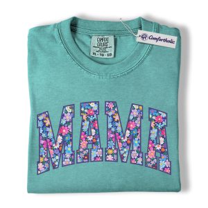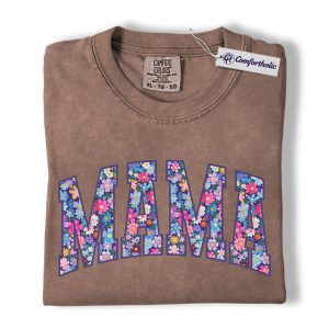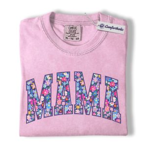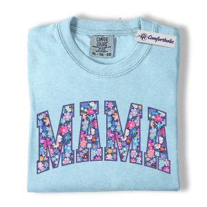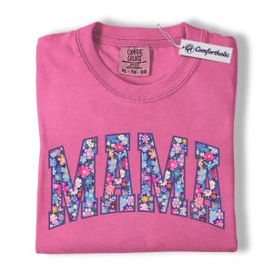 Floral Mama Shirt, MAMA Letter Graphic Tee, Cute Mom T-Shirt, Mother’s Day Gift for Mom, Comfort Colors Shirt