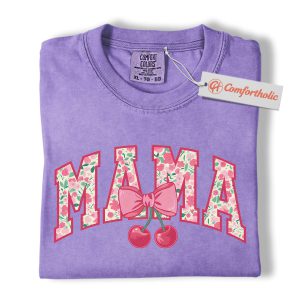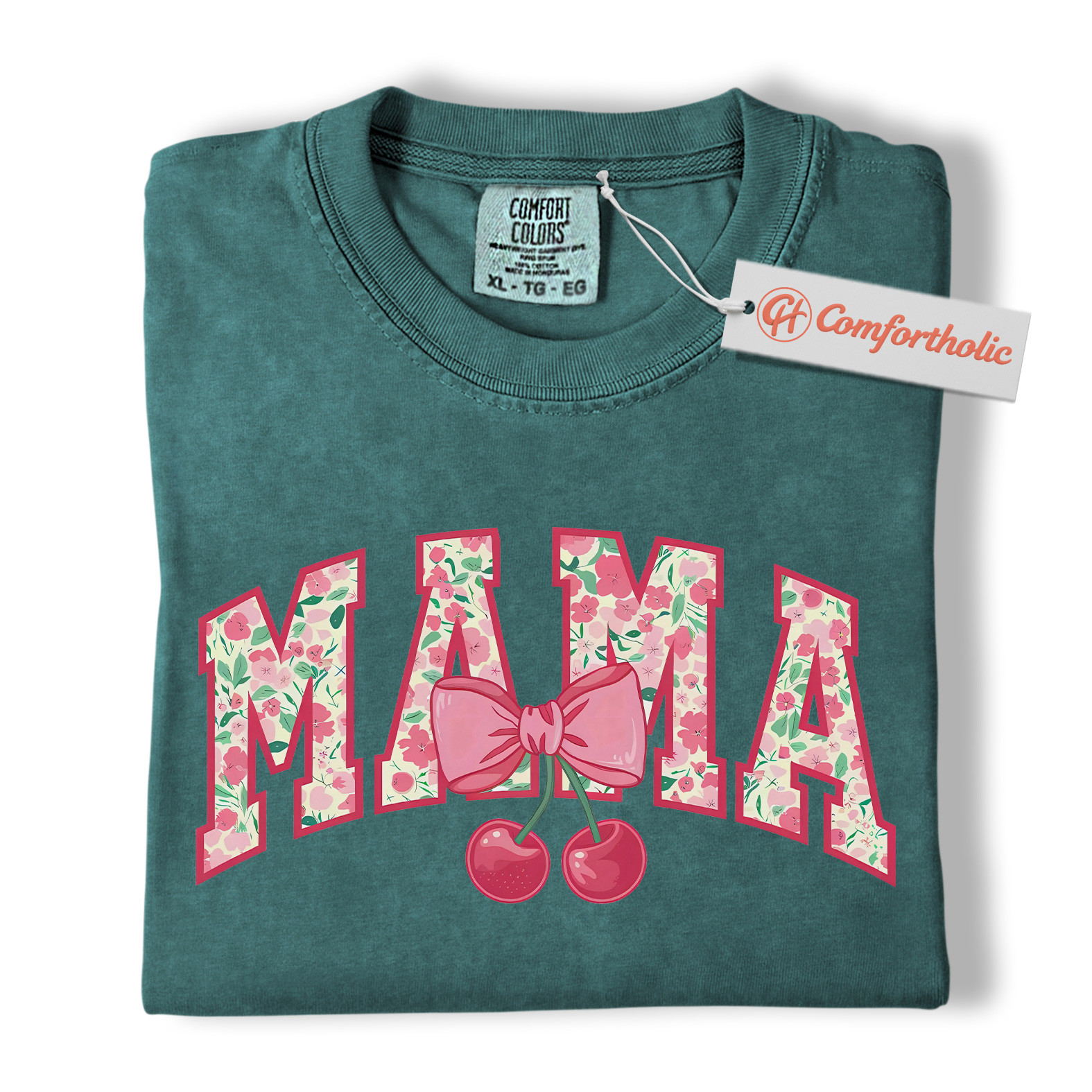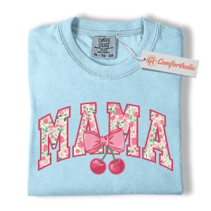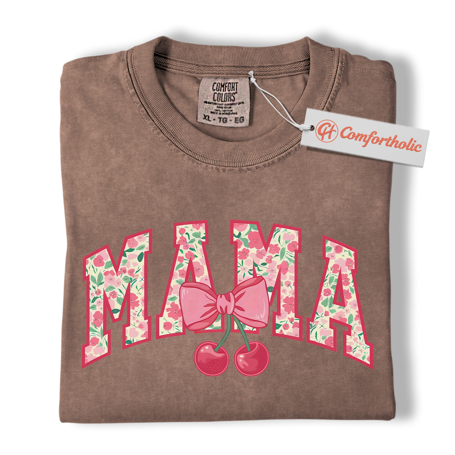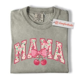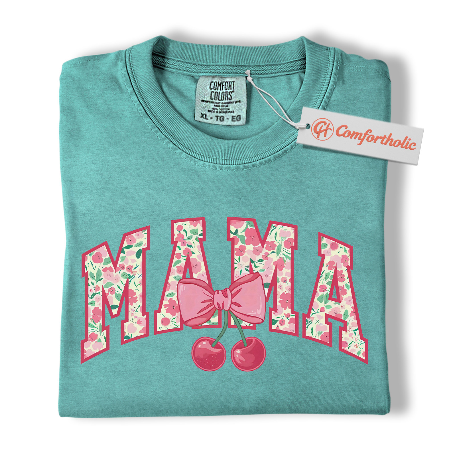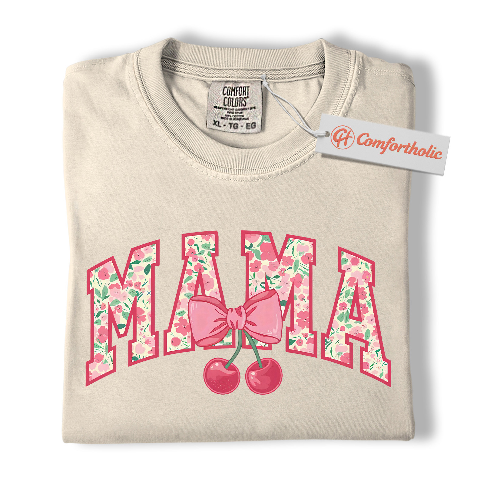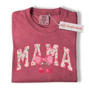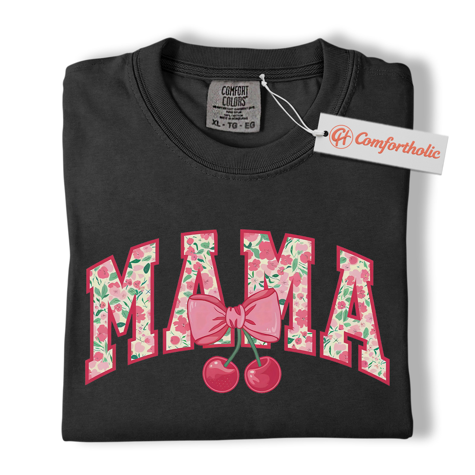 Floral Mama Shirt, Pink Cherry Bow Mom Shirt, Cute Mother’s Day Shirt, Gift for Trendy Moms, Comfort Colors Shirt