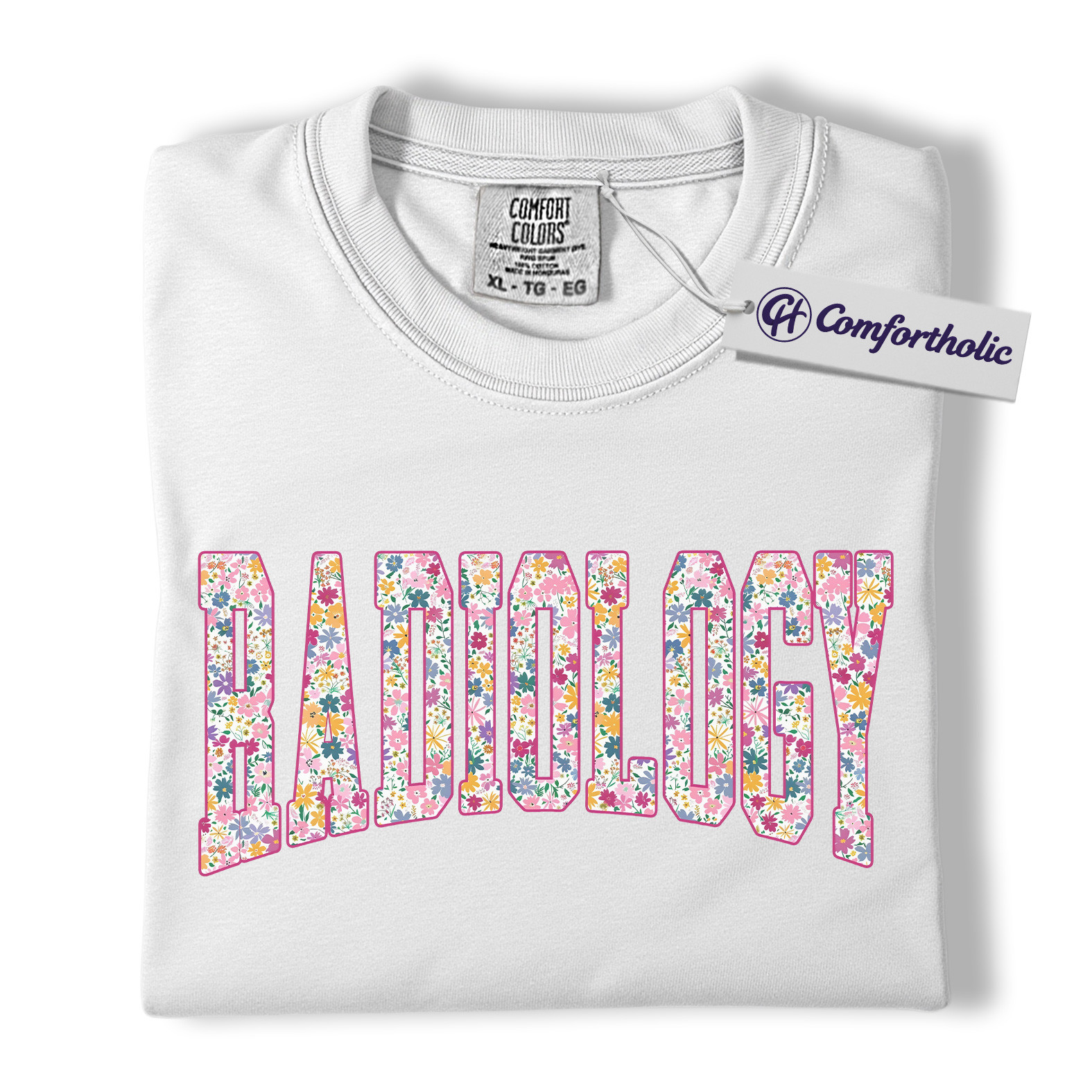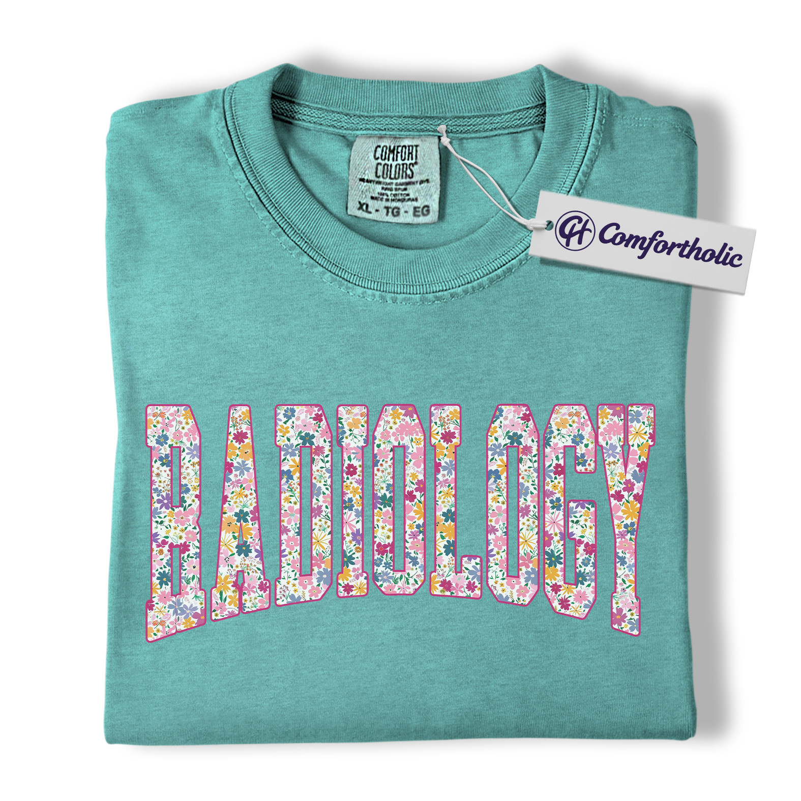 Floral Radiology Shirt, Cute X-Ray Tech T-Shirt, Colorful Radiologic Technologist Graphic Tee, Aesthetic Medical Worker Gift for Rad Techs, Comfort Colors Shirt