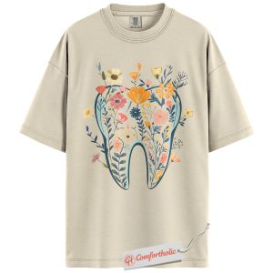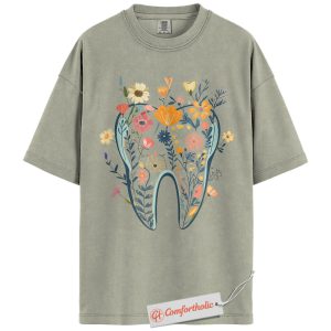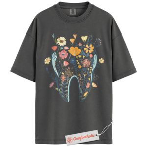 Flower Tooth Shirt, Dentist Shirt, Cute Dental Assistant Shirt, Gift for Hygienists or Orthodontists, Comfort Colors Shirt