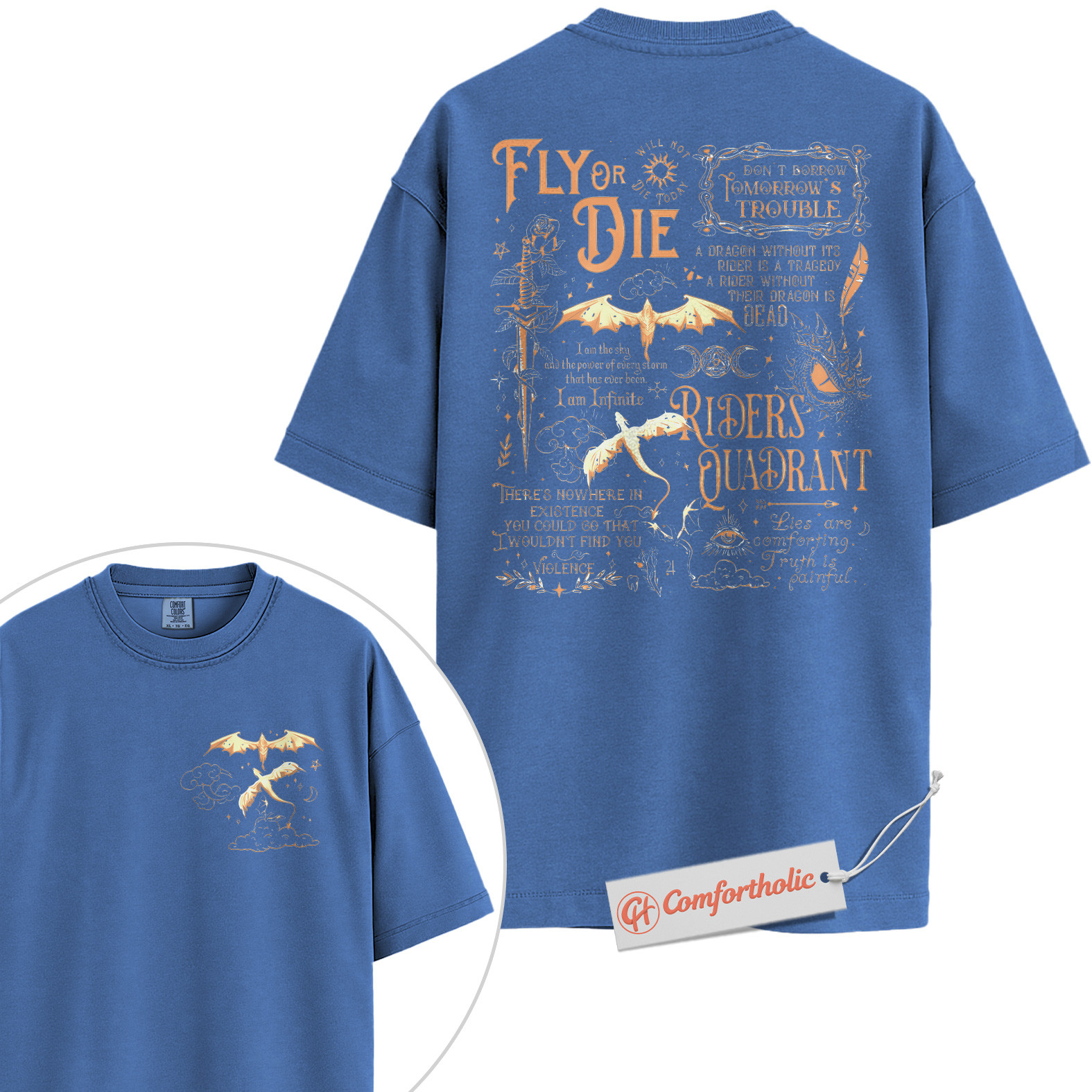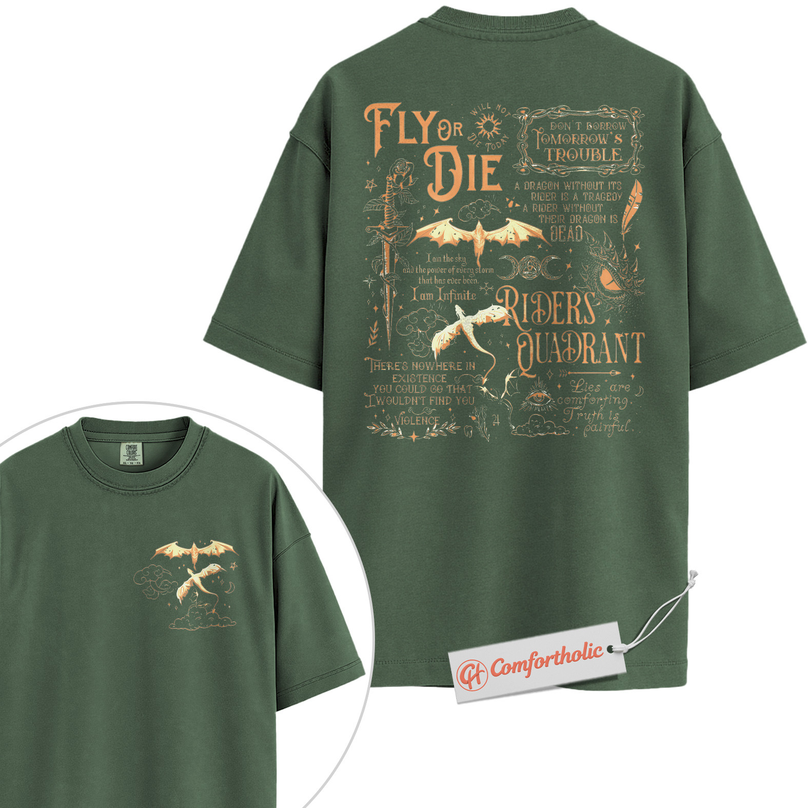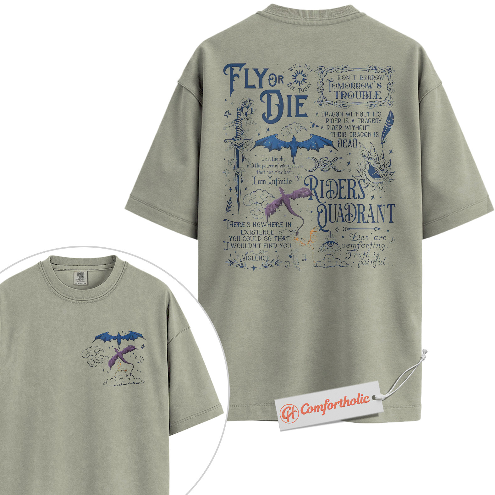 Fly or Die Shirt, Riders Quadrant Dragon Shirt, Fantasy Bookish Shirt, Fourth Wing Shirt, Comfort Colors Shirt 2-Sided
