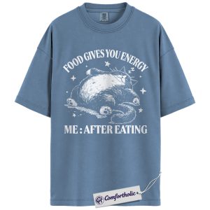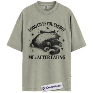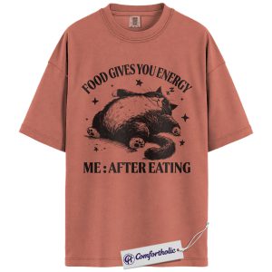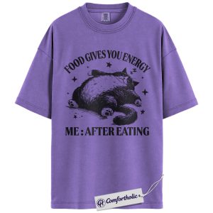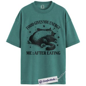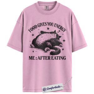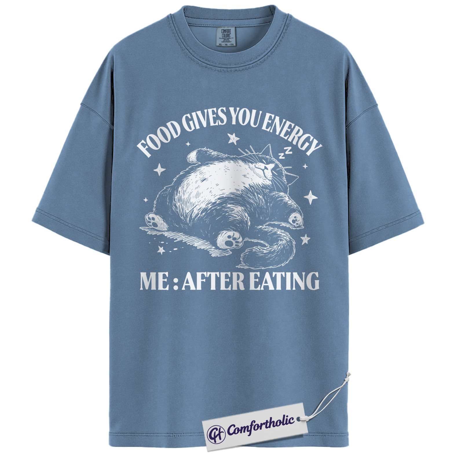 Food Gives You Energy Me After Eating Shirt, Funny Cat Lover T-Shirt, Lazy Fat Cat Graphic Tee, Cute Food Humor Gift for Pet Owners, Comfort Colors Shirt