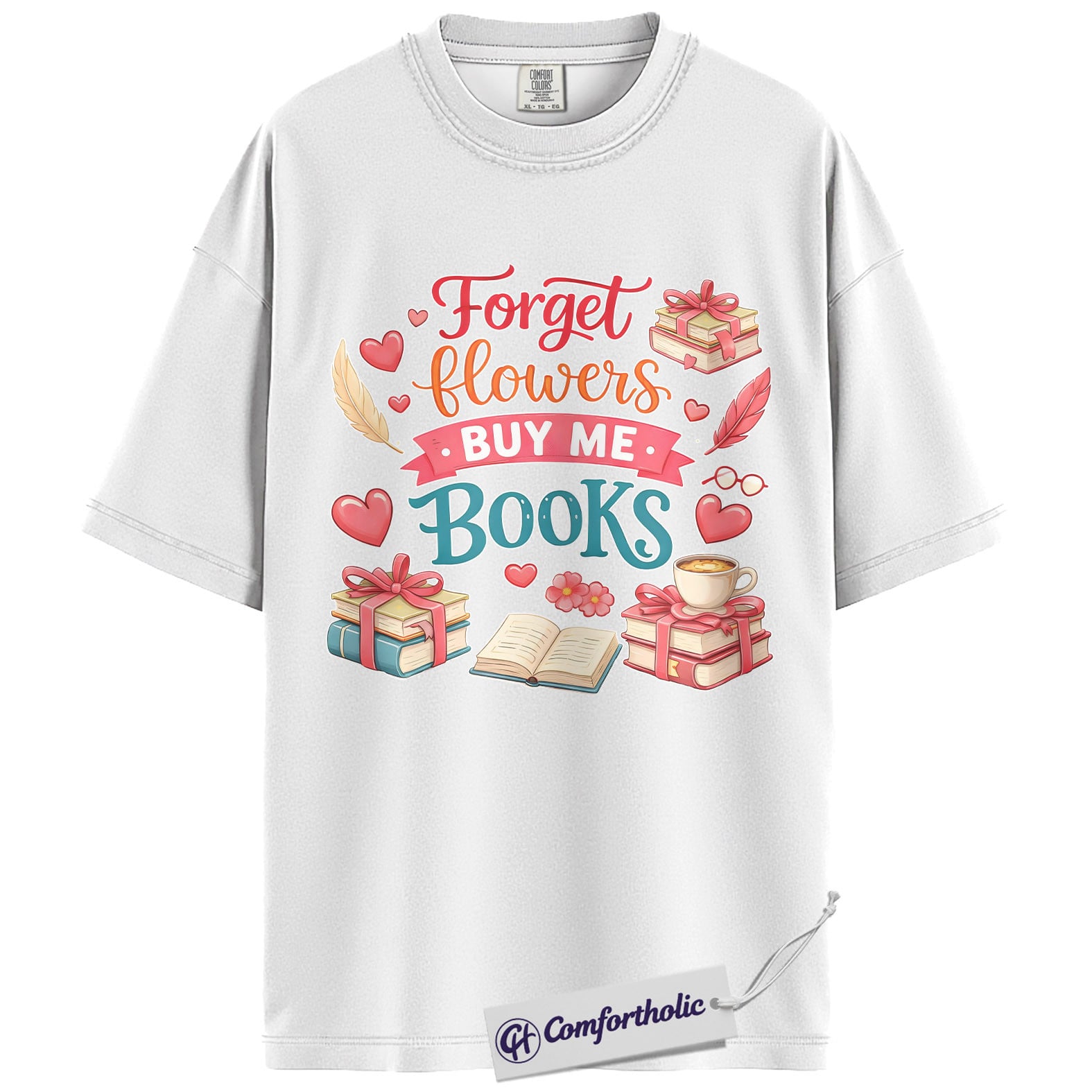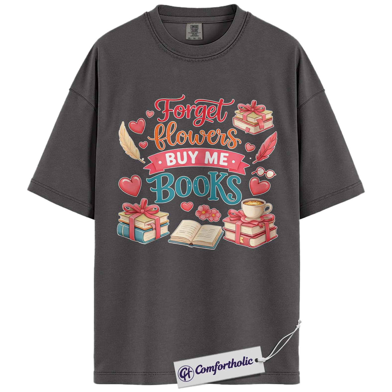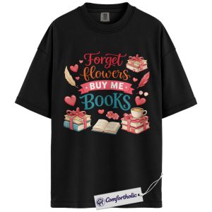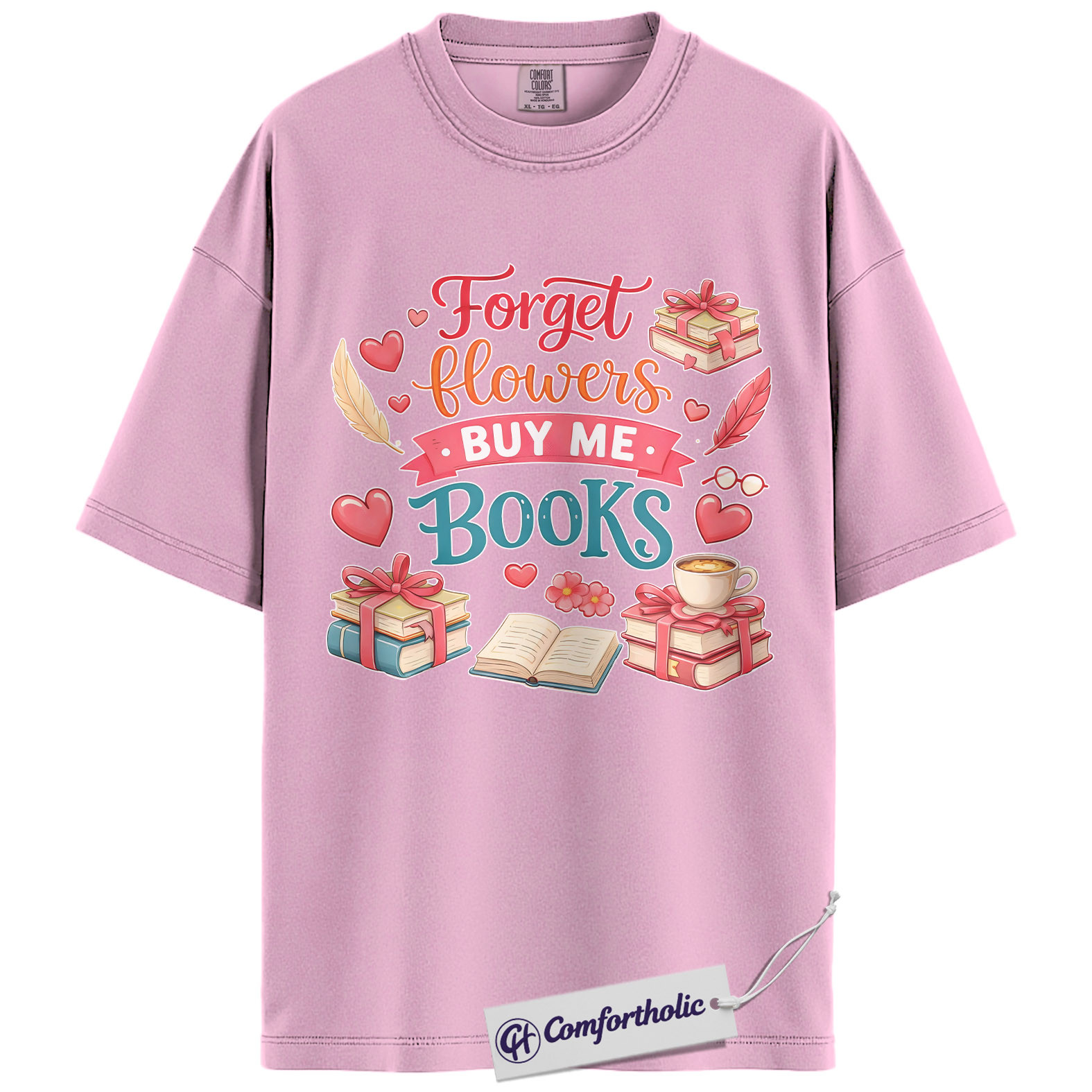 Forget Flowers Buy Me Books Shirt, Cute Book Lover Graphic Tee, Romance Reader Valentine T-Shirt, Valentine’s Day Gift for Book Lovers, Comfort Colors Shirt