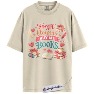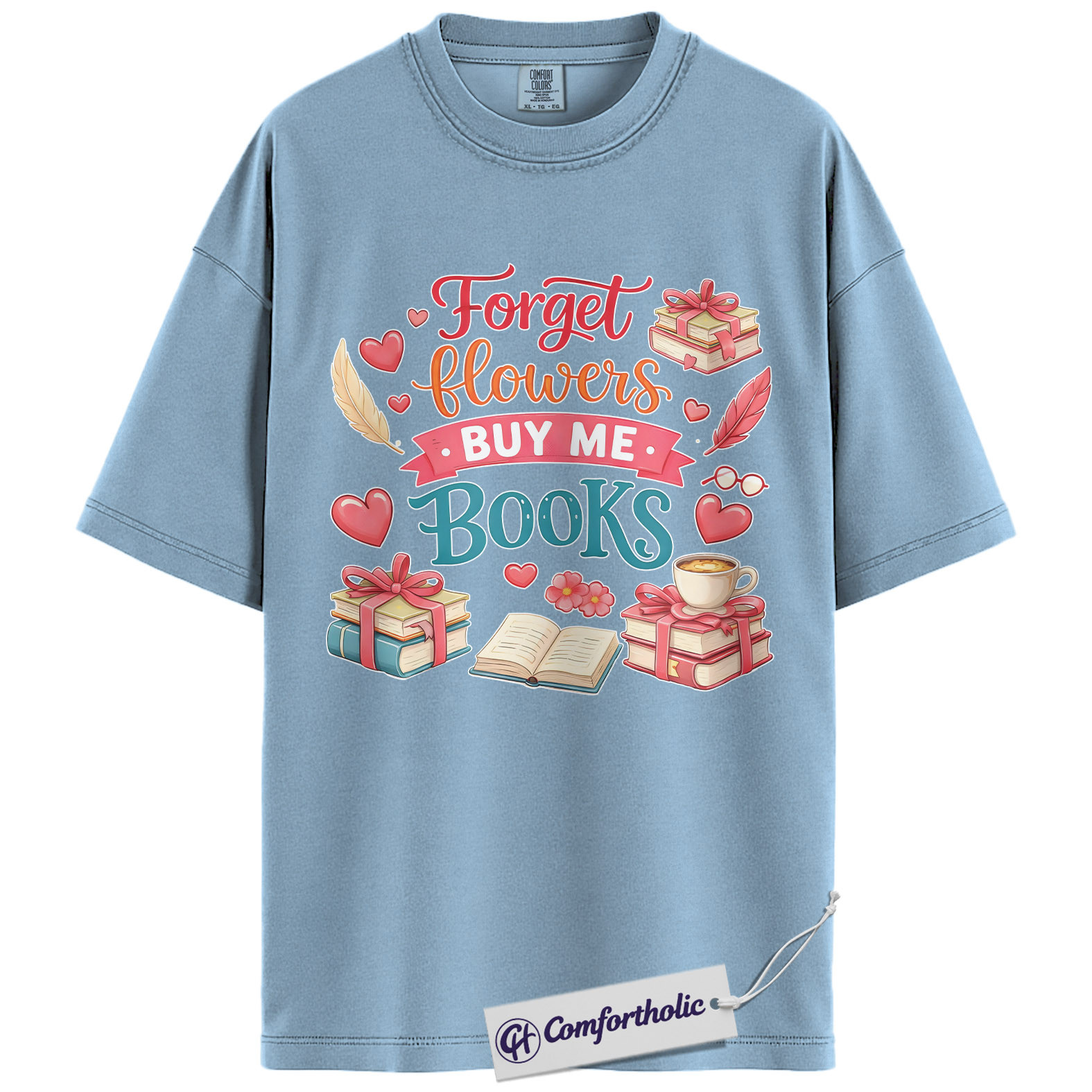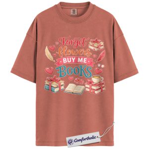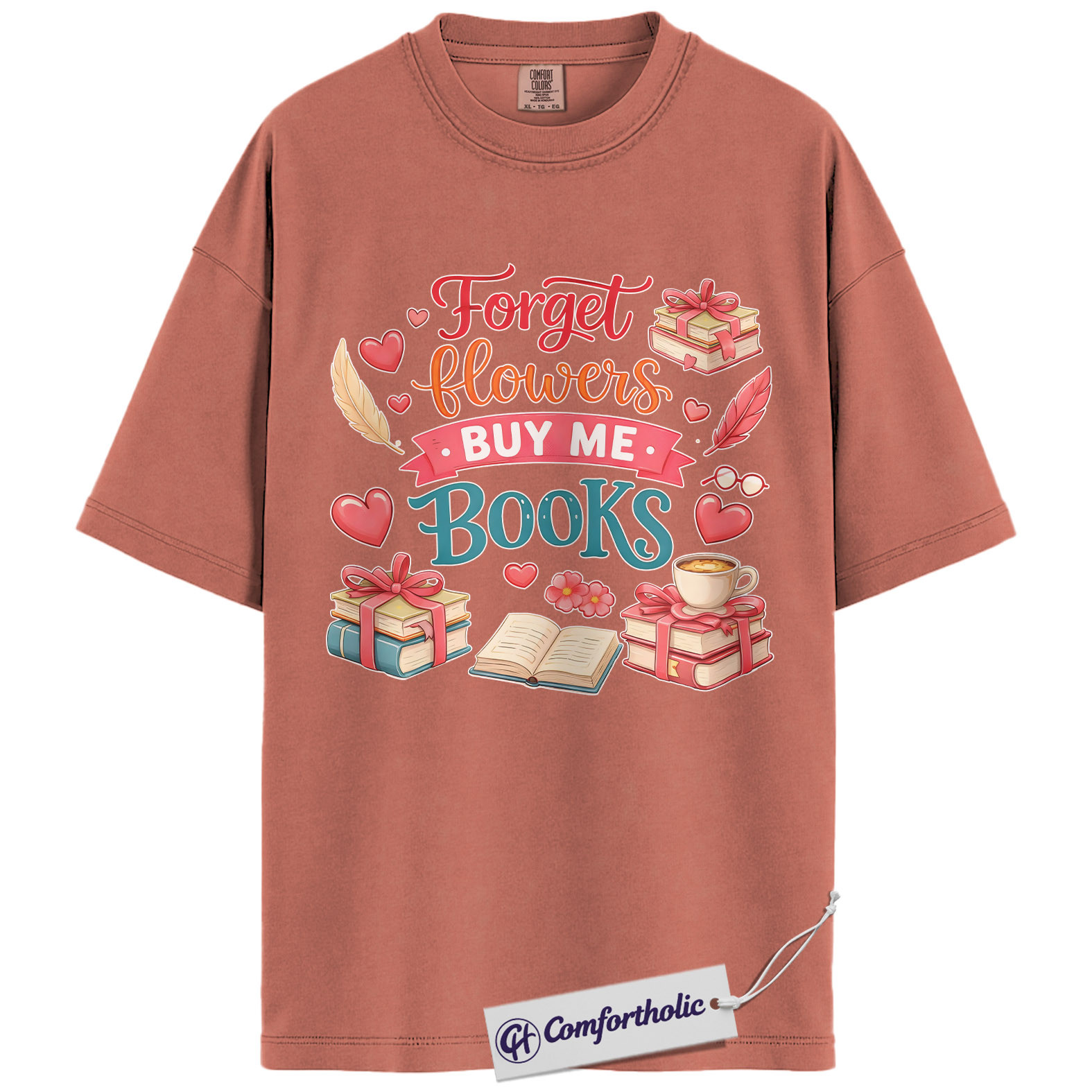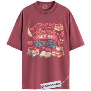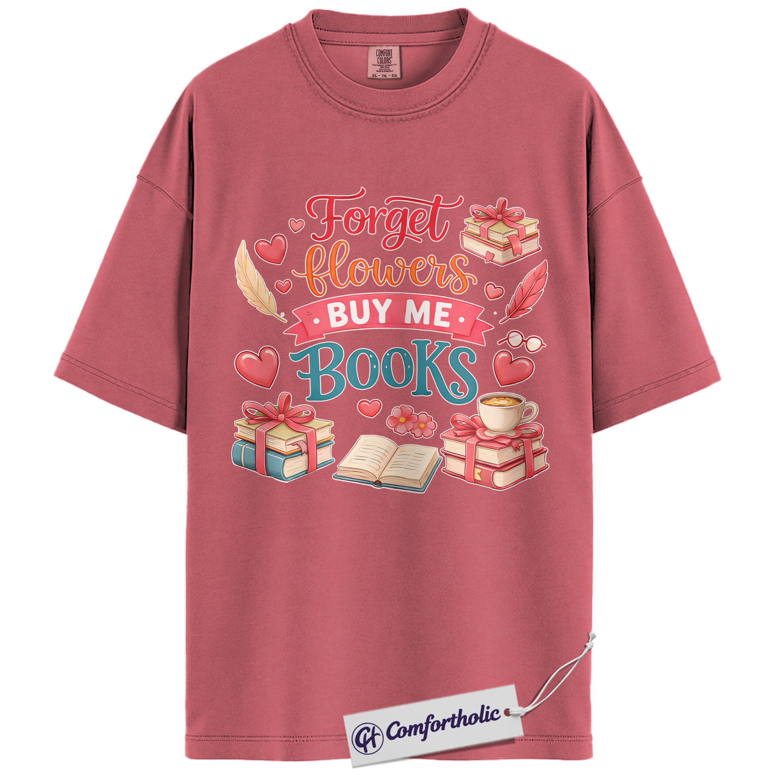 Forget Flowers Buy Me Books Shirt, Cute Book Lover Graphic Tee, Romance Reader Valentine T-Shirt, Valentine’s Day Gift for Book Lovers, Comfort Colors Shirt