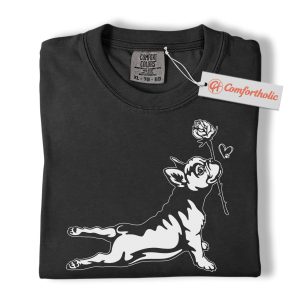 French Bulldog Shirt, Cute Dog Holding Rose Tee, Romantic Puppy T-Shirt, Frenchie Dog Comfort Colors Shirt